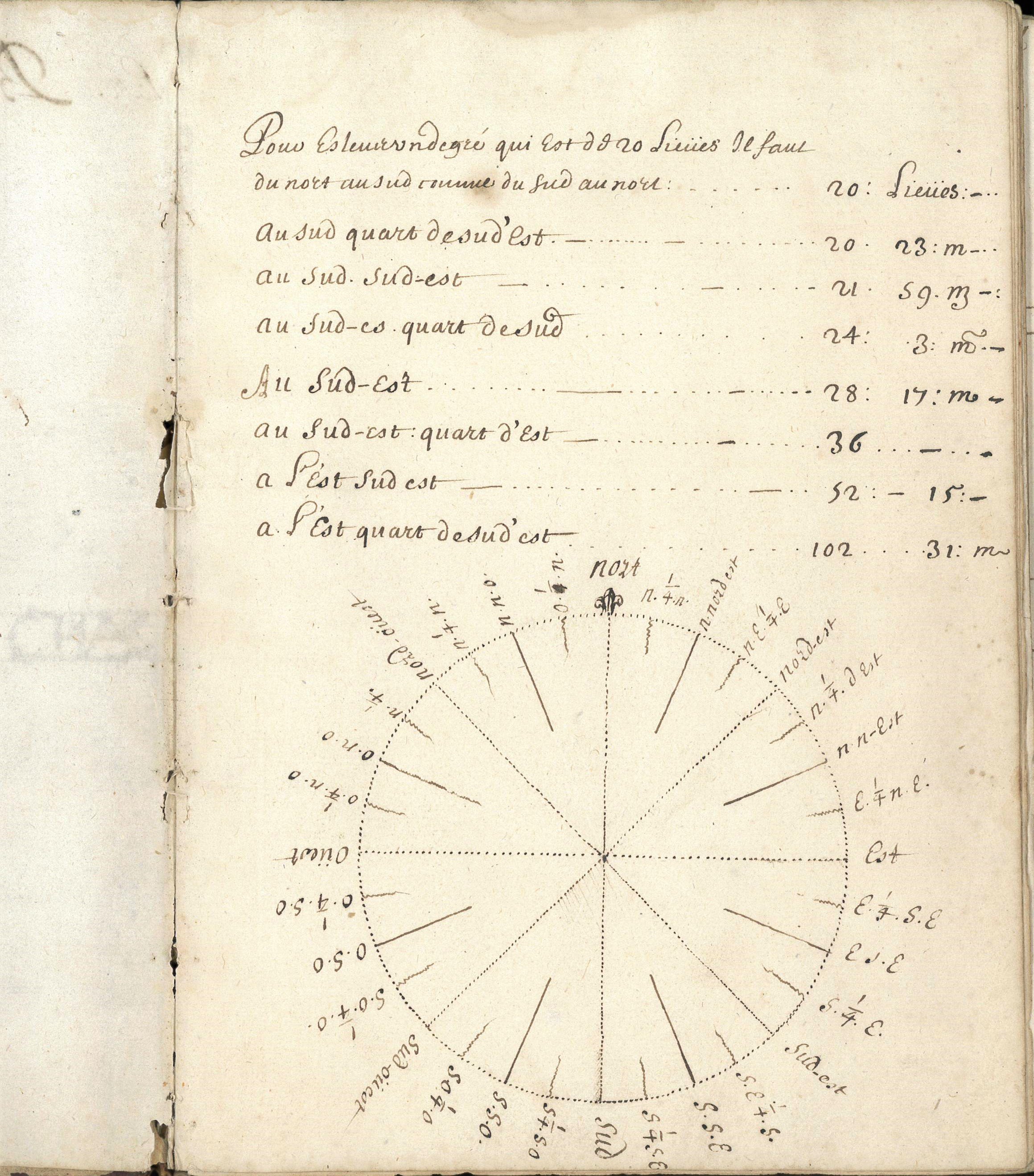 Sur le 1er feuillet ro (non paginé) est inscrit à l'encre brune « L.A. Bellanger de Lespinay Fr. ordre des logis ru Roy, 1670 » et sur le 2e feuillet (non paginé), dessin d'une rose des vents.