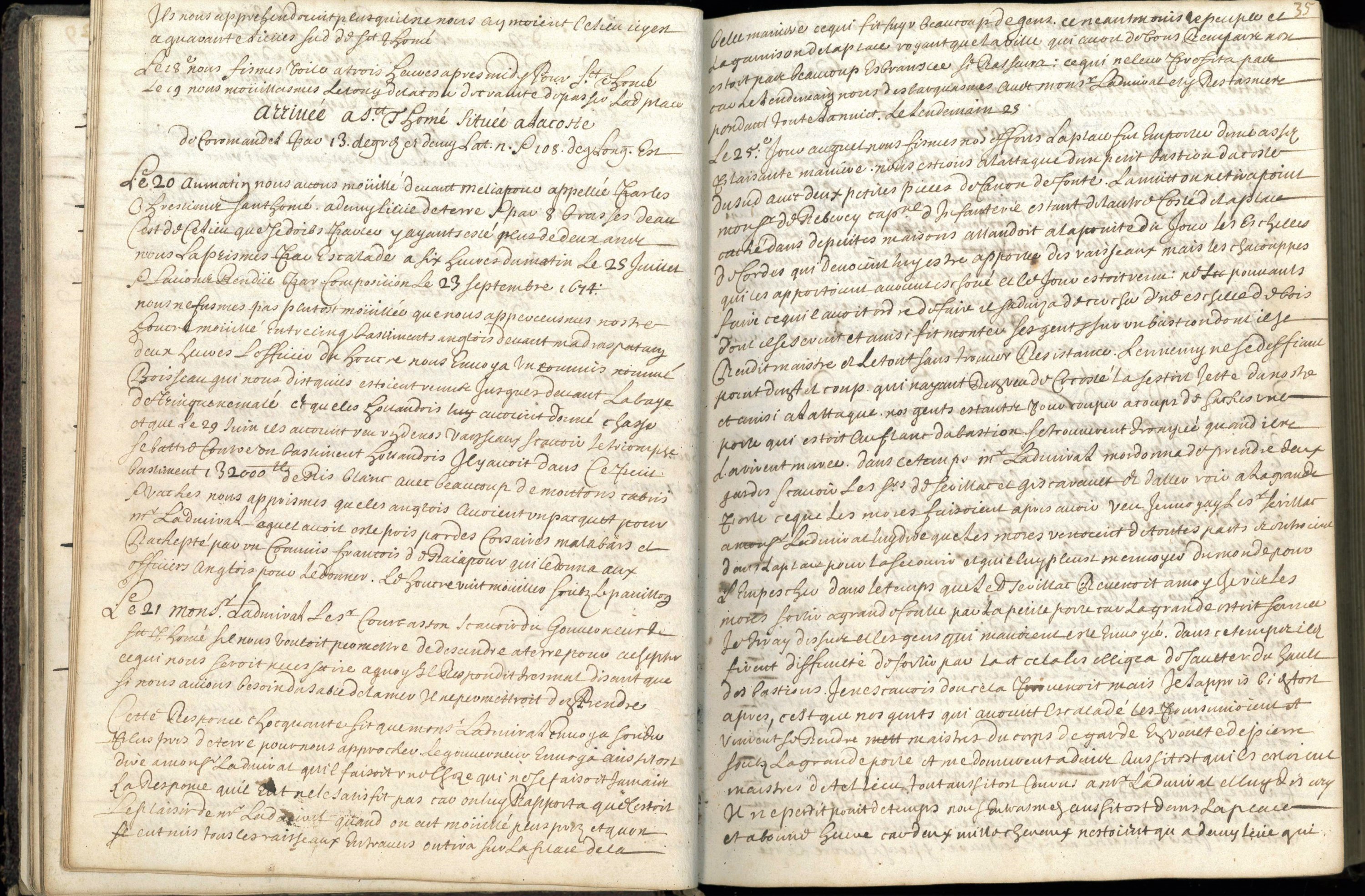 La seconde partie du récit de voyage débute au fol.95 ro par « Trois mois huit jours après la prise de la place St Thomé tout commençant à manquer