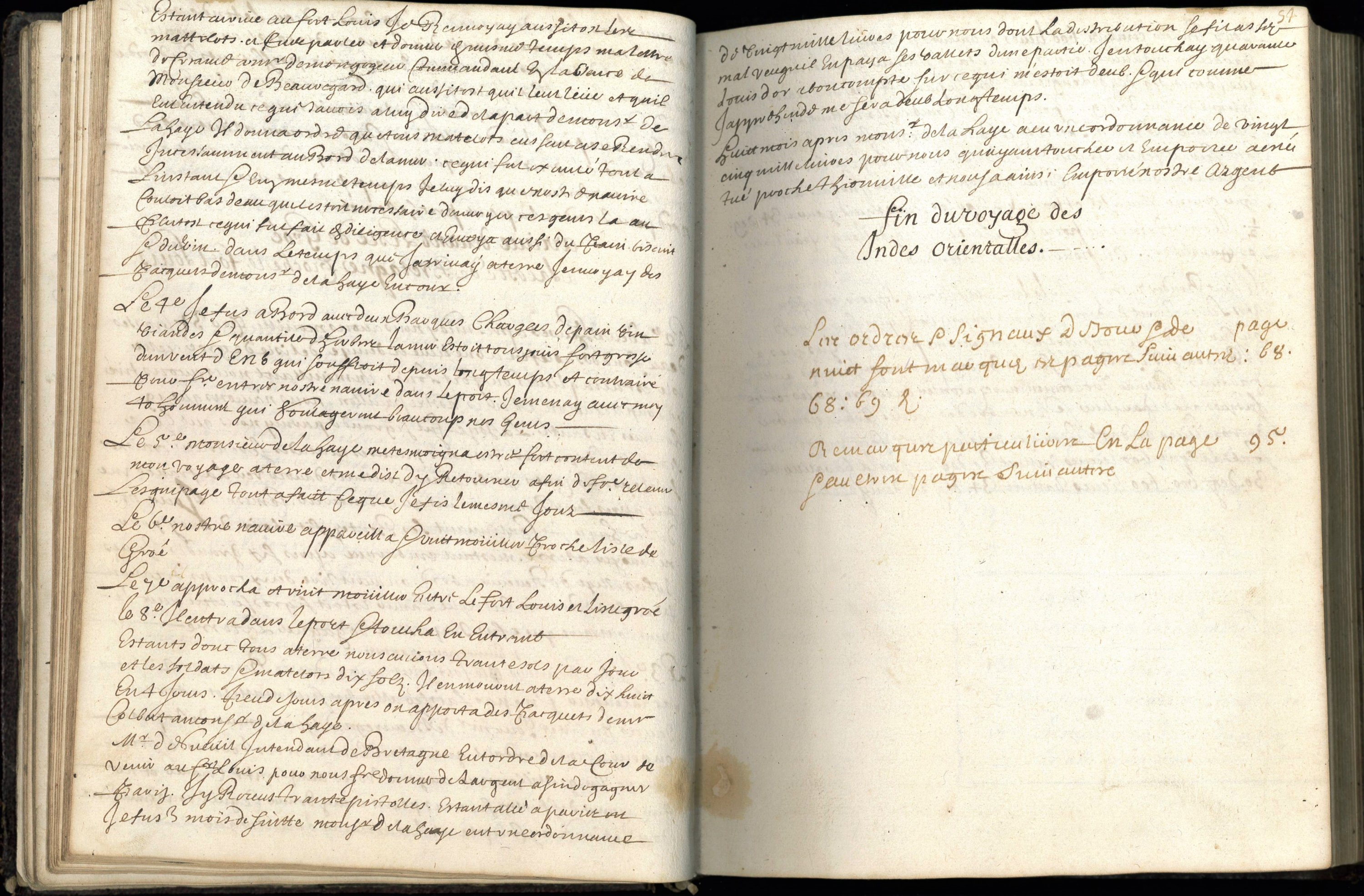 » et se termine au fol. 54 ro par « fin du voyage des Indes orientalles »