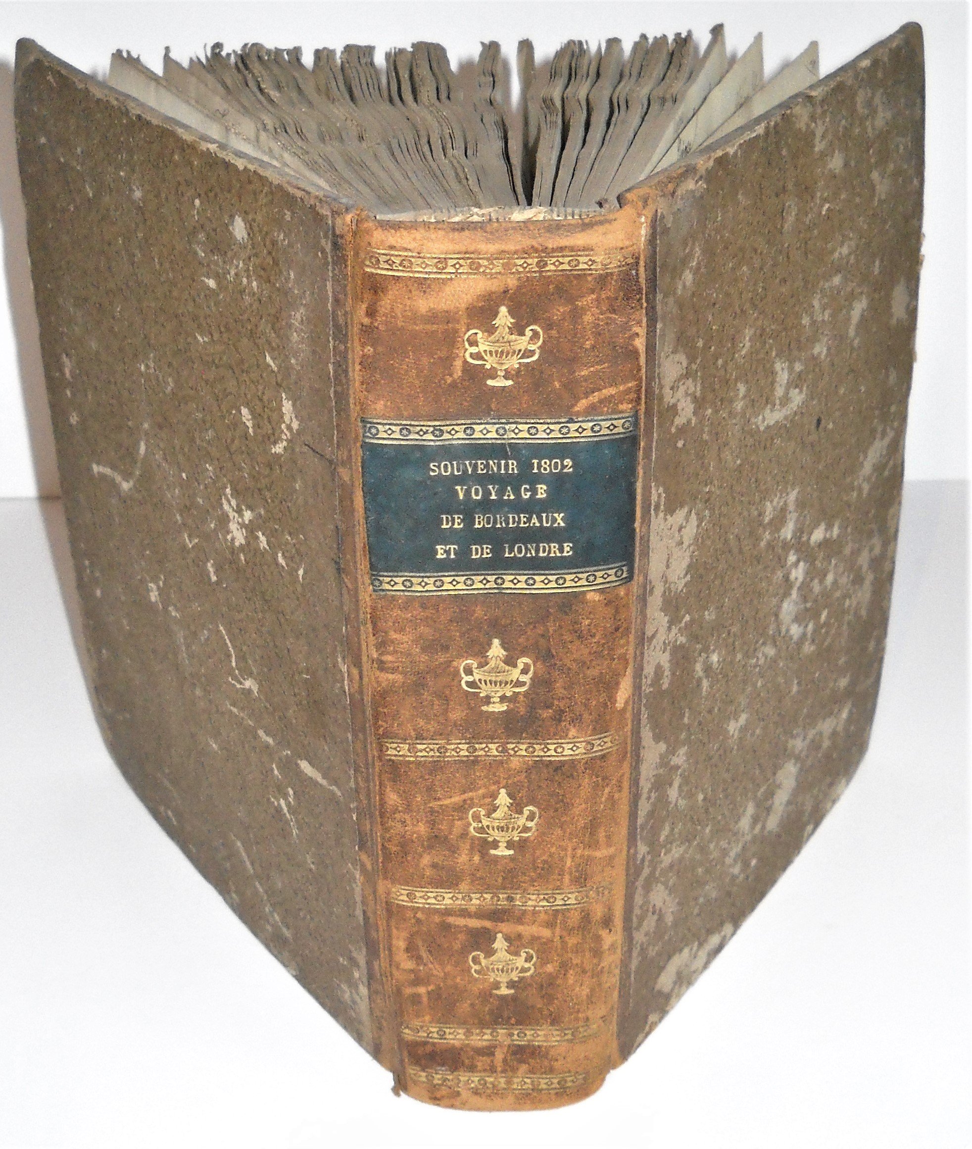 Souvenirs 1802, voyage de Bordeaux et de Londres, manuscrit anonyme rel. in-4, + de 400 pp. ; recueil de récits de voyages en France (Paris, Bordeaux, Orléans, Bagneux