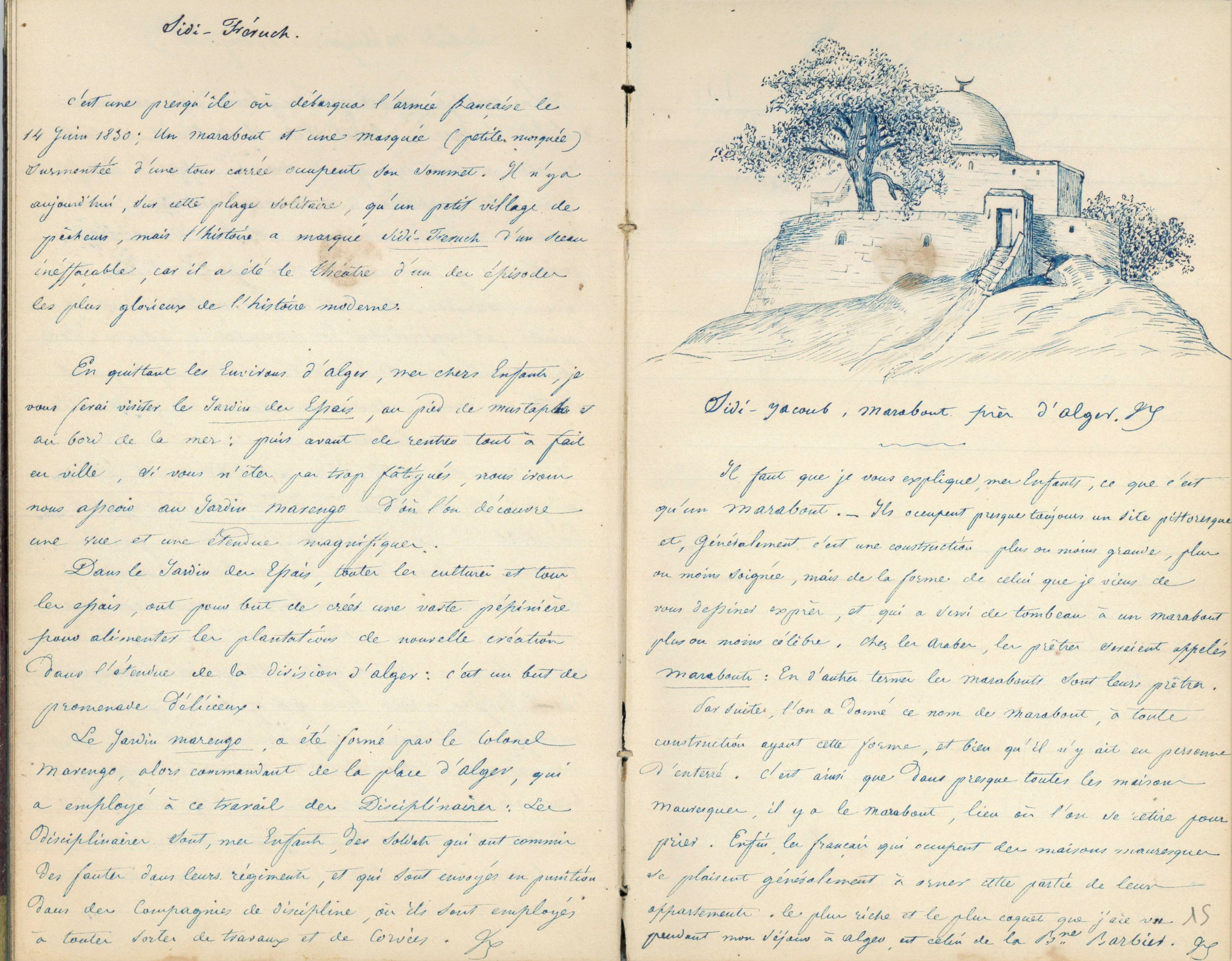 Récit ou relation écrit au cours de lannée 1853, en Algérie, à destination de sa femme et de ses fils.