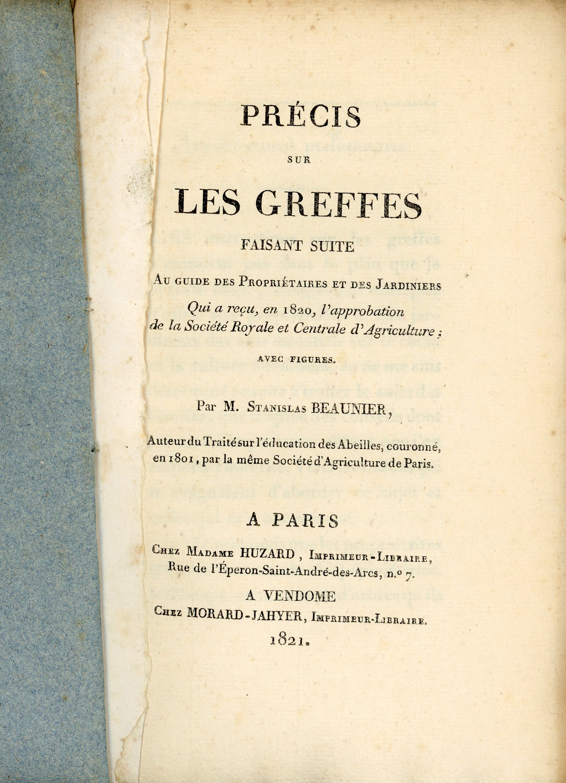 Paris, Huzard, et Vendôme, Morard-Jahyer, 1821, in-8, 47 pp., avec pl. ill. (manque pl. n°1 et 2 ?).