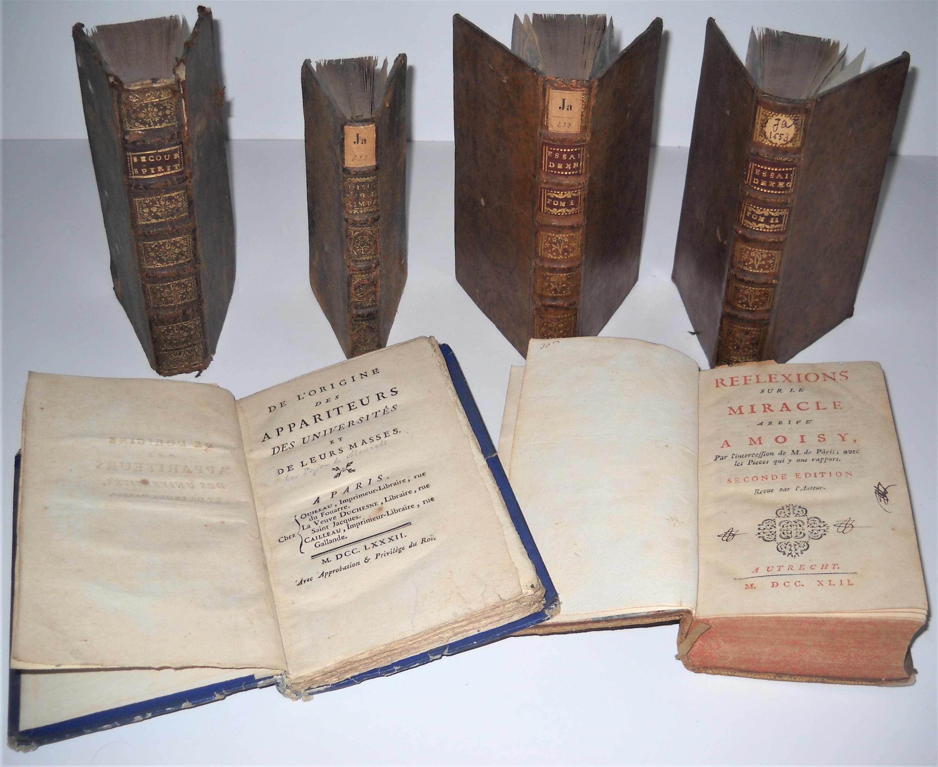 [Julien-René-Benjamin de Gennes], Réflexions sur le miracle arrivé à Moisy par lintercession de M. de Paris, Autrecht, 1742, rel. in-12 plein veau dépoque, xl-480-clxxxiv ; Relatif à la guérison inexpliquée de Louise Tremasse, veuve Mercier, du village de Moisy, au diocèse de Blois, intervenue en octobre 1737, considérée comme un miracle par les tenants de la sainteté de François de Pâris. L'auteur de cette compilation est un janséniste exclu de l'Oratoire quelques années plus tôt.