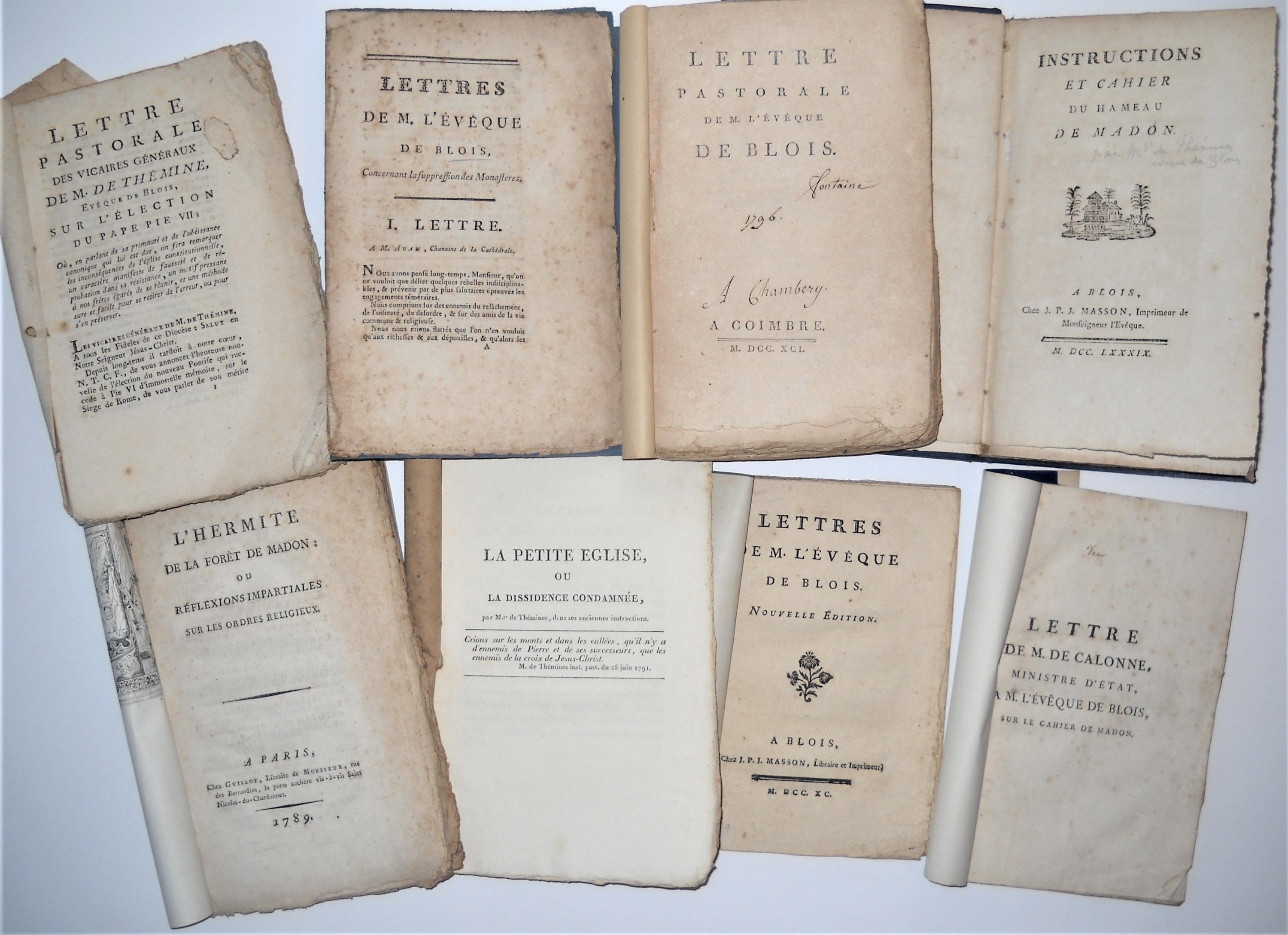 Lettre pastorale des vicaires généraux de M. de Thémine, évêque de Blois, sur lélection du Pape Pie VII, s.l., [1800], 67 pp. ;