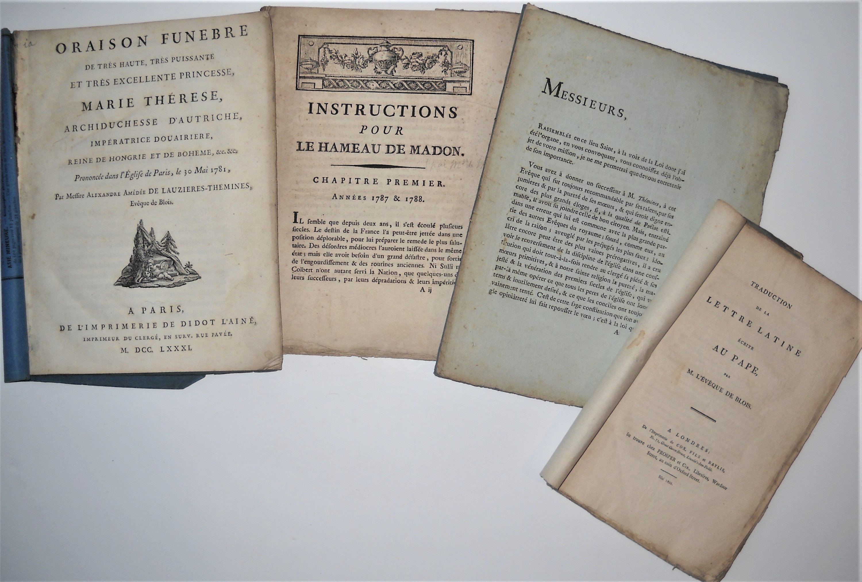 Instructions pour le hameau de Madon, [1789], 92 pp. ; pamphlet de lévêque de Thémines sur le rapport remis au roi par de Calonne, ministre des Finances, le 27 décembre 1788 ;
