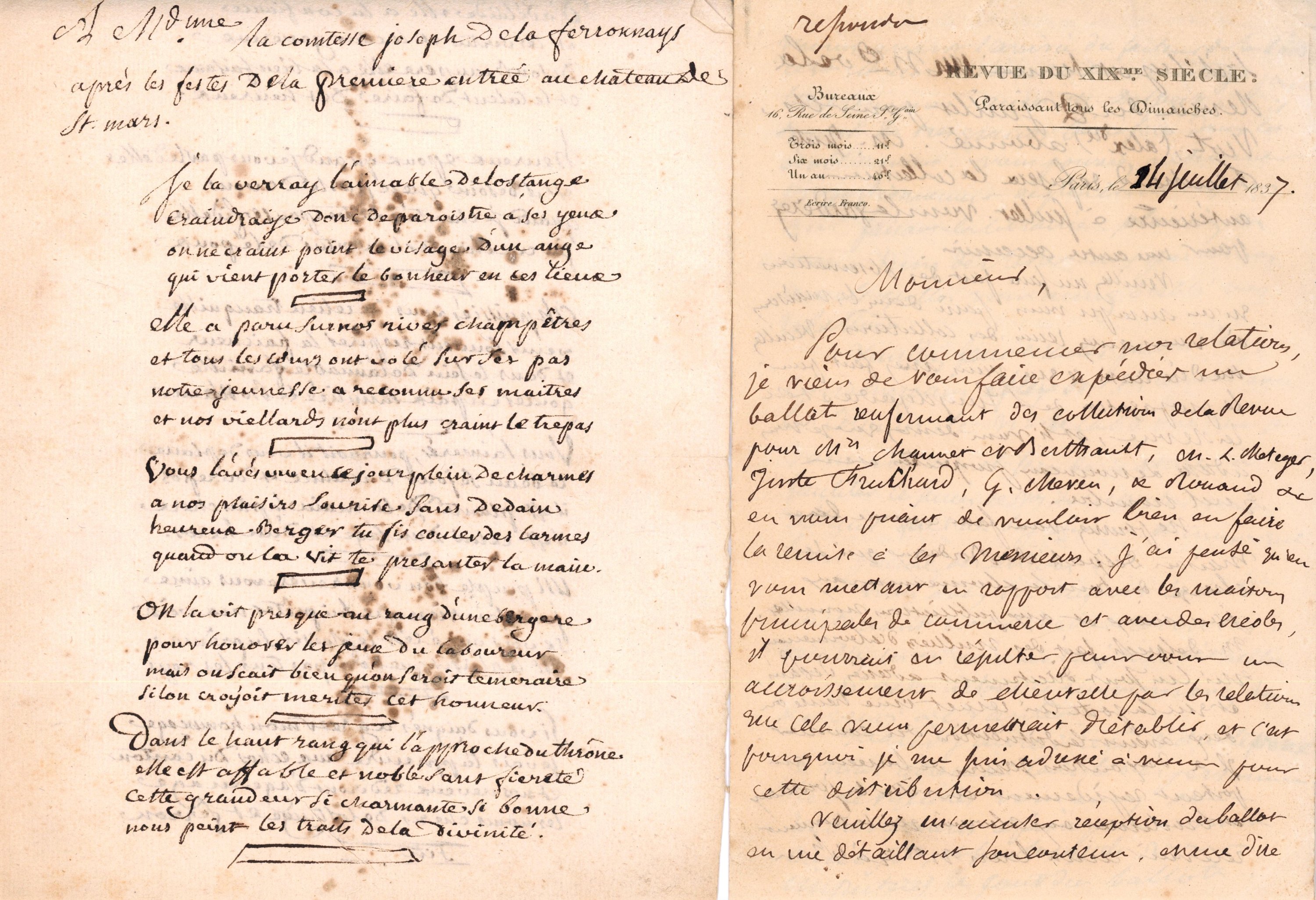 Important lot de + de 260 pièces manuscrites , principalement de la 1ère moitié du 19e siècle ; en provenance de la collection Armand Guéraud, libraire-éditeur nantais.
