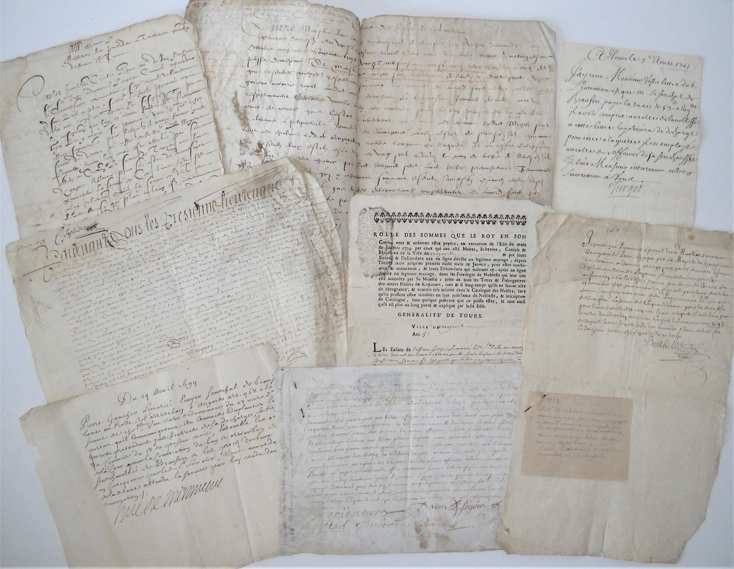 • P.S., Tours, 14 septembre 1613, Charles Legros, conseiller du roi, juge ordinaire et lieutenant criminel enquêteur et commissaire examinateur au siège royal de Beaufort, 3 pages in-folio ; reconnaissance délivrée audit Legros pour le paiement de ces gages dus ; etc...