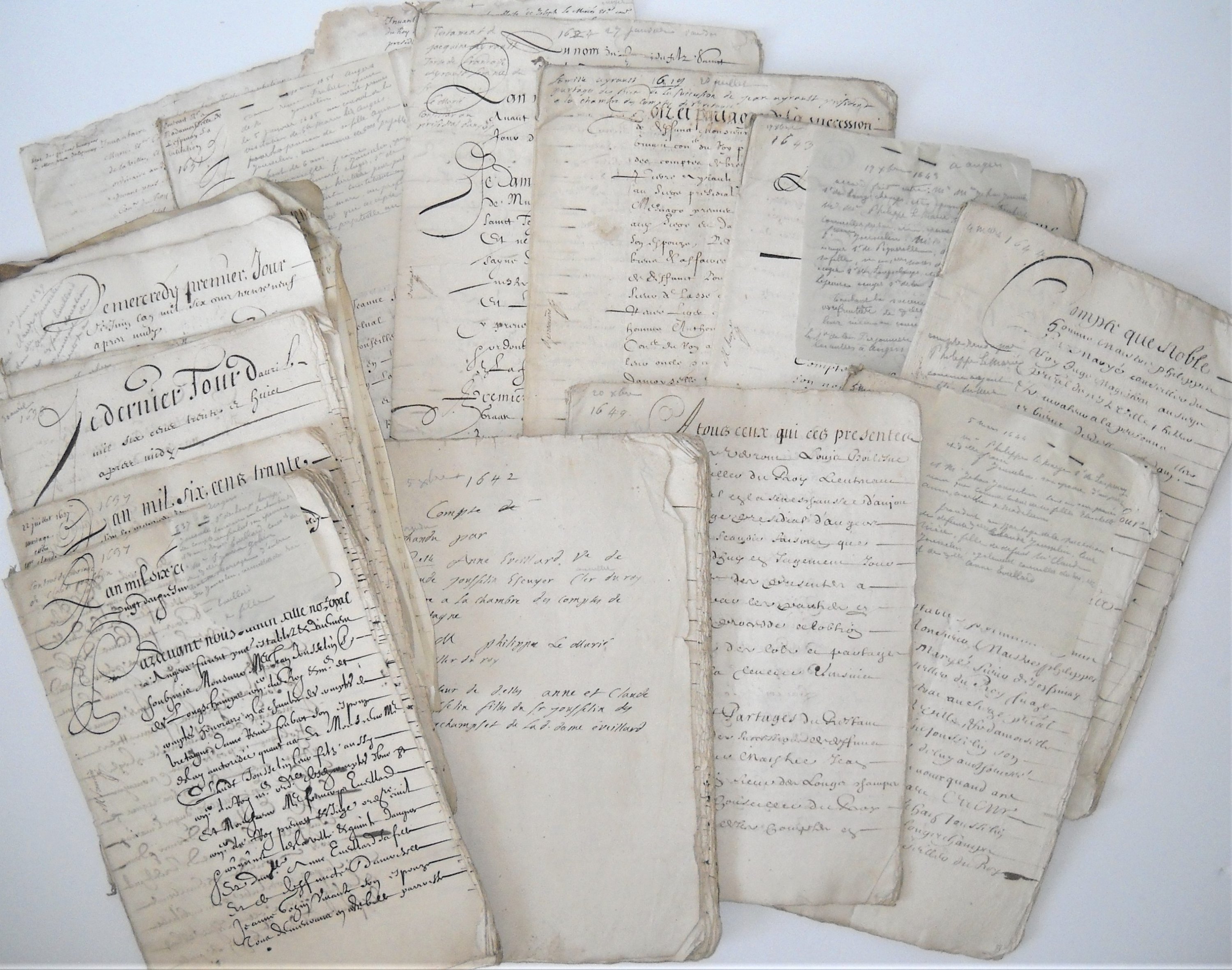 Lot d’env. 50 pièces en majorité manuscrites, dont: