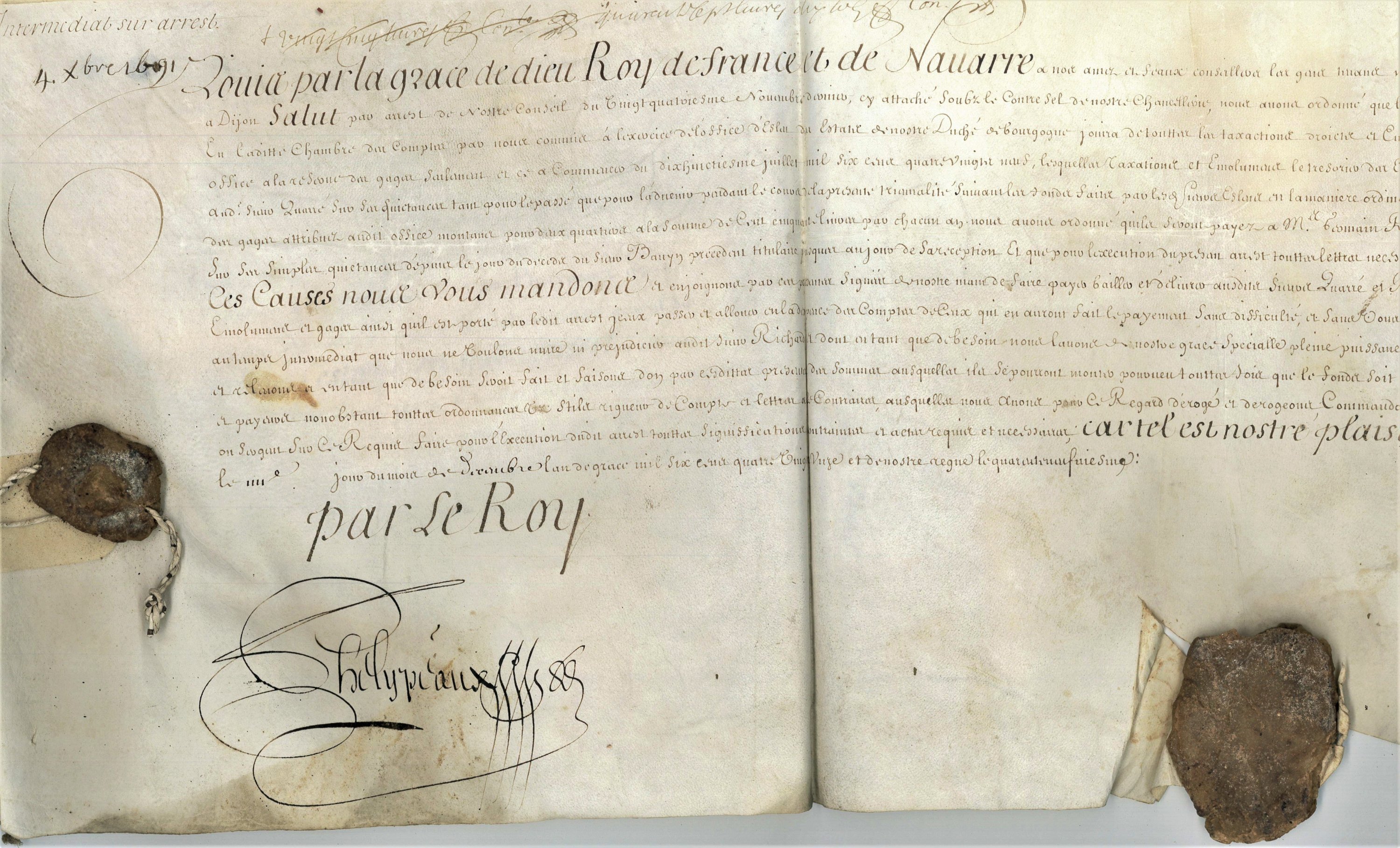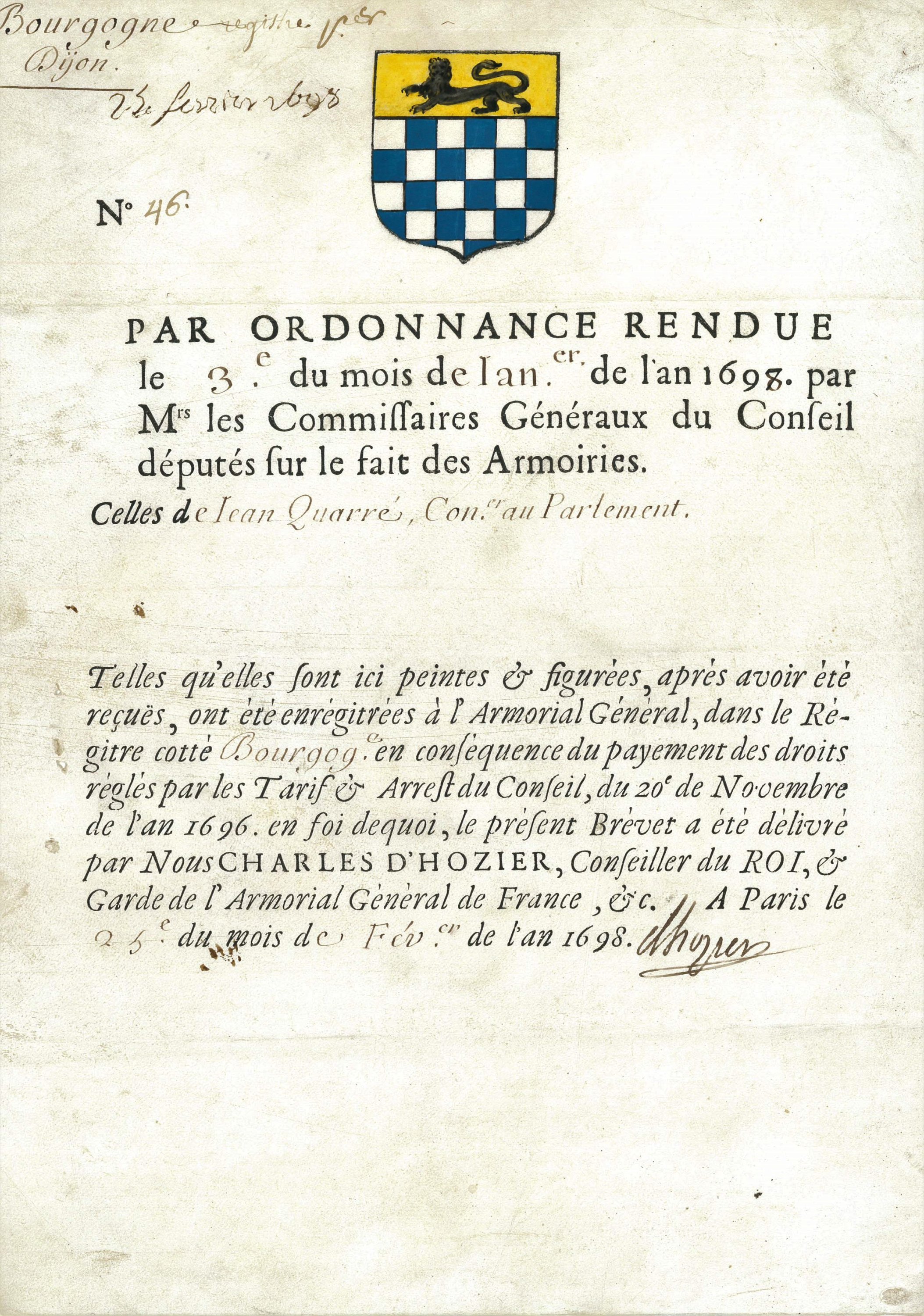 FAMILLE QUARRÉ DE LIVRON, OFFICIERS AU PARLEMENT DE BOURGOGNE,...](<150:ddoc-1144352-6951f55c88ee05262049927109bc9b04-518_7.jpg, <480:ddoc-1144353-65136ef10d08d757cd3f93289bcc759d-518_7.jpg, <640:ddoc-1144354-a2ad9062513e4df5e2dddbf9d6d25b3b-518_7.jpg, <900:ddoc-1144355-a548c4a629579838abd3e11a0b8b310d-518_7.jpg, <1200:ddoc-1144356-999fd3ee612804dc8ba8e16cc1338185-518_7.jpg, >1200:ddoc-1144351-f753c242d02240178fcdcc17dee78c7a-518_7.jpg)