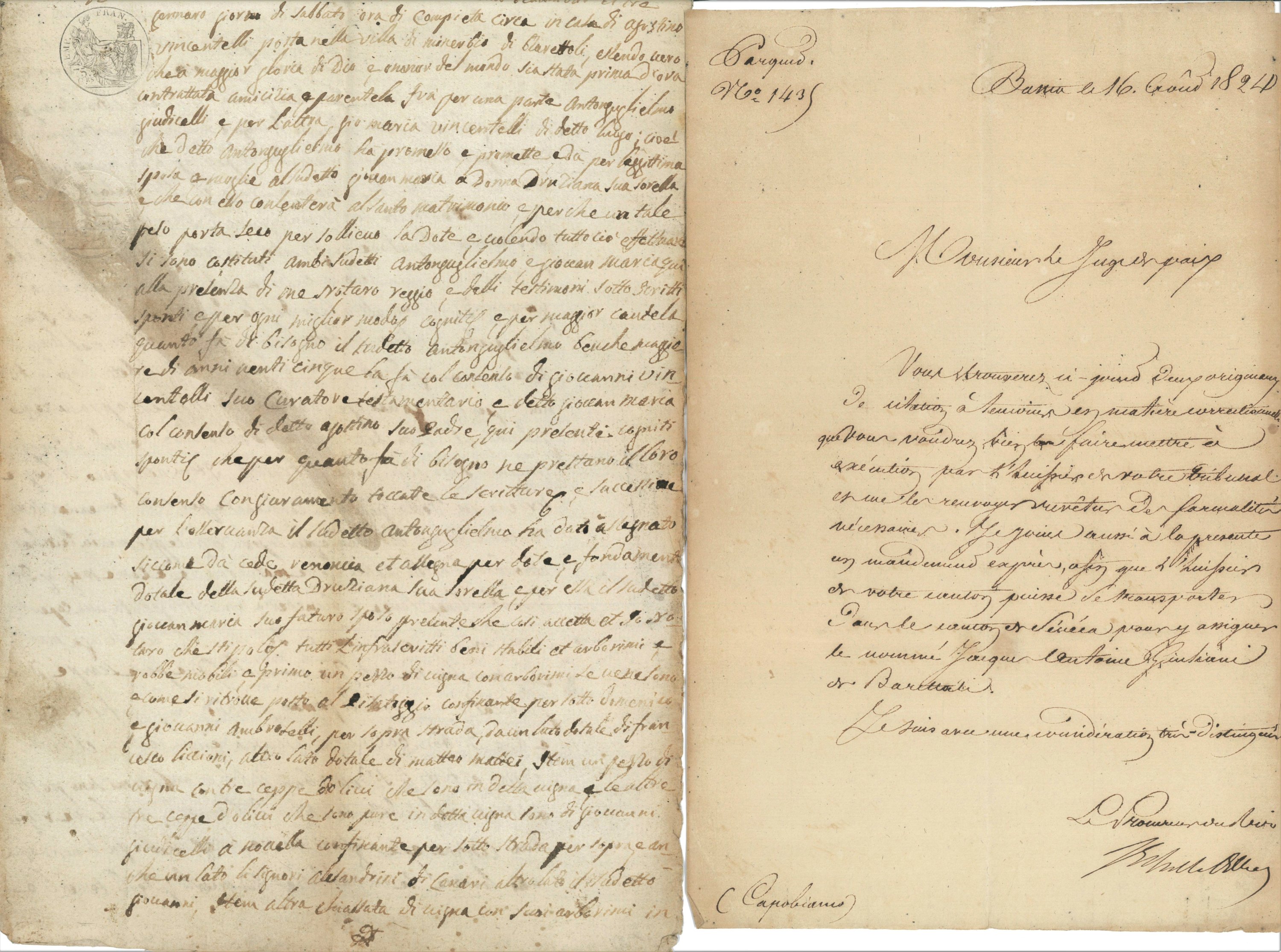 Assignation signée du procureur du roi de Bastia, 16 août 1824, 1 page in-4.