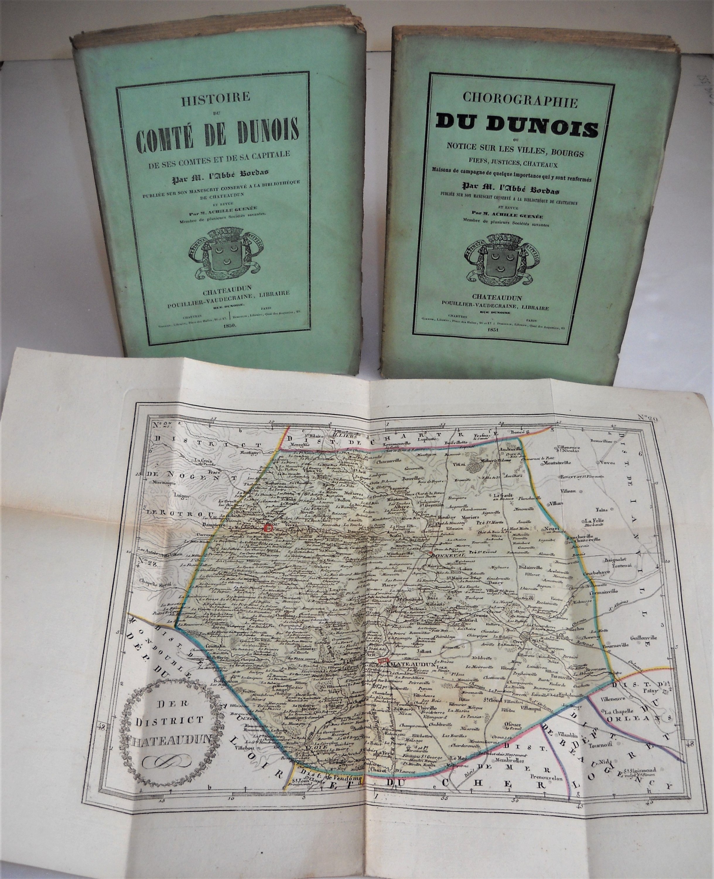 Achille Guenée, Histoire du comté de Dunois, de ses comtes et de sa capitale par M. labbé Bordas, revue et corrigée, Châteaudun, Pouiller-Vaudecraine, 1850, br. in-8, 412 pp. avec carte dépliante h.t. ;