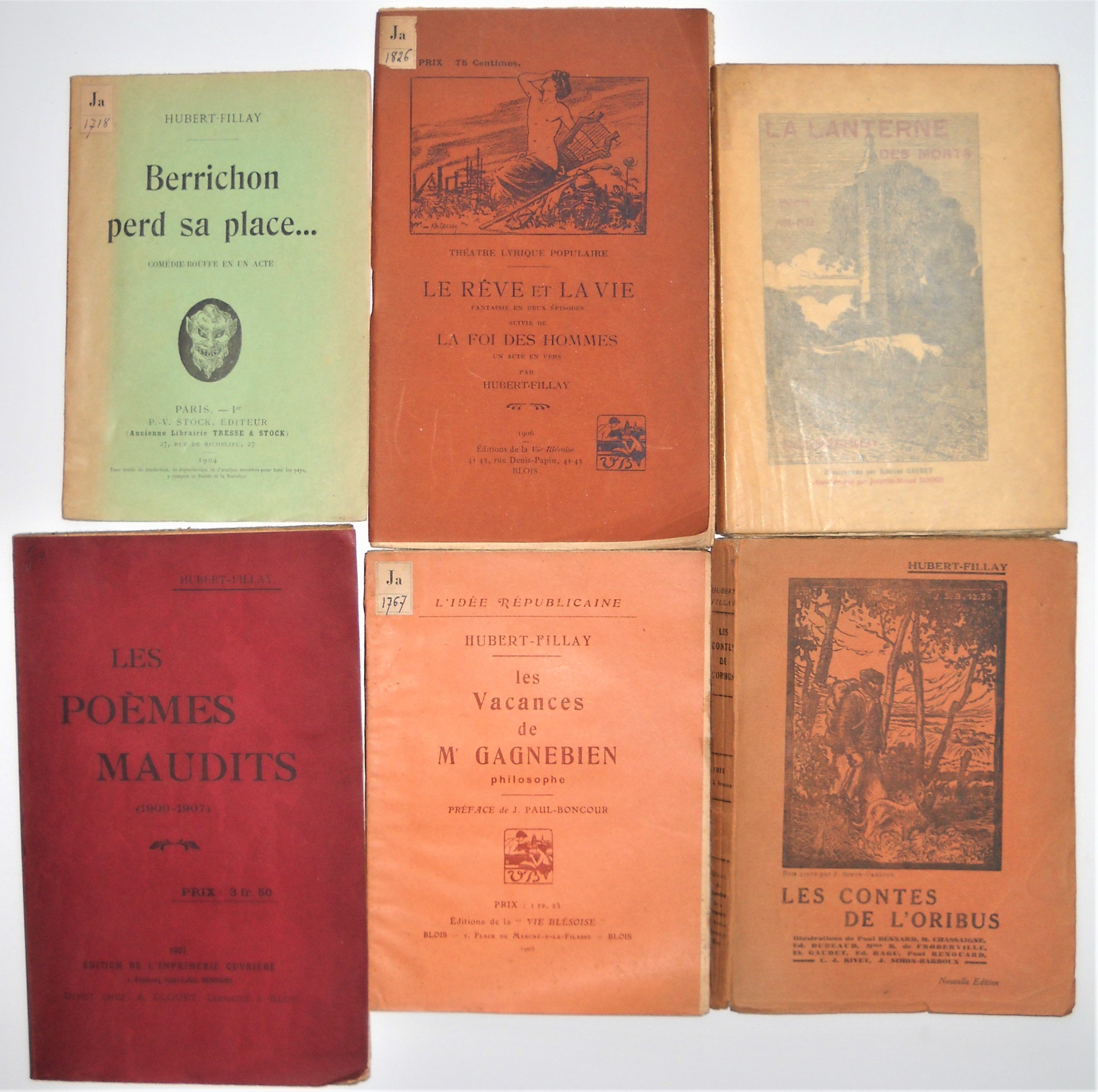 Le rêve et la vie, fantaisie en deux épisodes suivie de La foi des hommes en un acte en vers, Editions de la Vie Blésoise, Blois, 1906, 32 pp. ; Les poèmes maudits (1900-1907), Vendôme, Edition de limprimerie ouvrière, 1907, br. in-4, 228 pp. ; Pantagruel, farce en trois actes en prose, Tours, Edition de la Renaissance artistique tourangelle, 1908, br. in-4, 126 pp. ; Pour la renaissance de Blois, Blois, Imp. Nouvelle, 1919, in-8, 27 pp. ; La Lanterne des morts, poèmes (1913-1922), illustrés par des bois gravés dEtienne Gaudet, Blois, Editions du Jardin de la France, 1922, br. in-8, 133 pp. ;