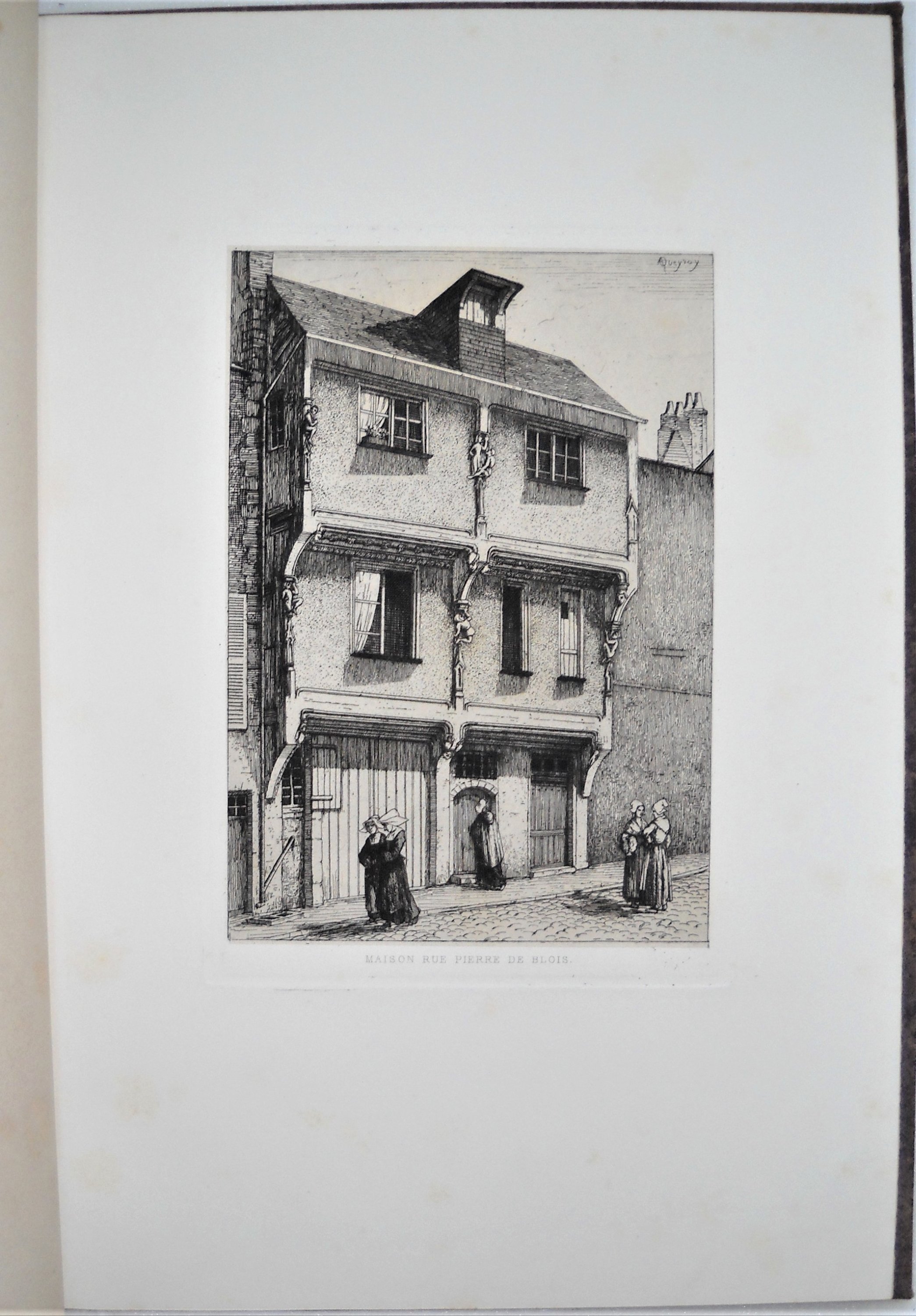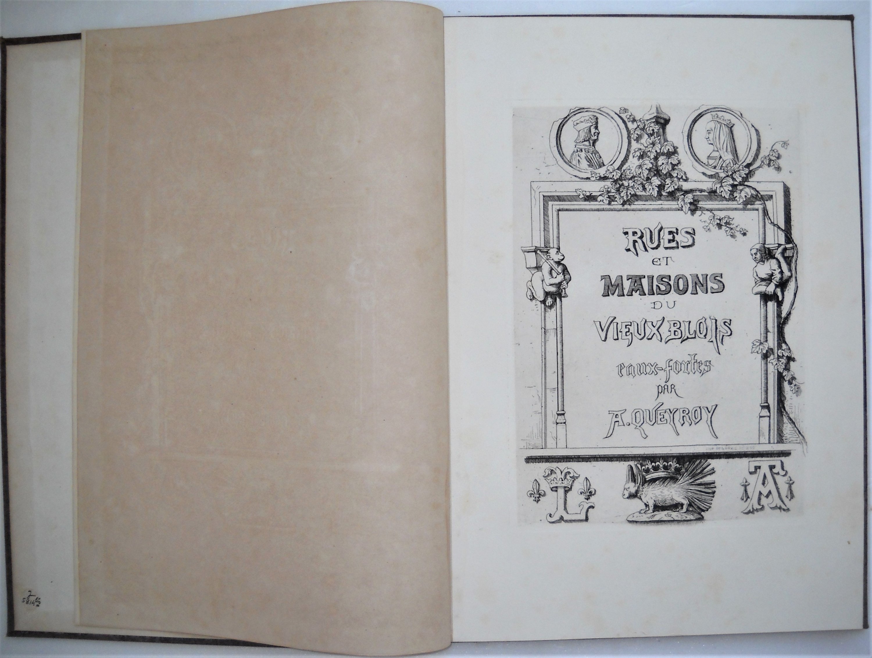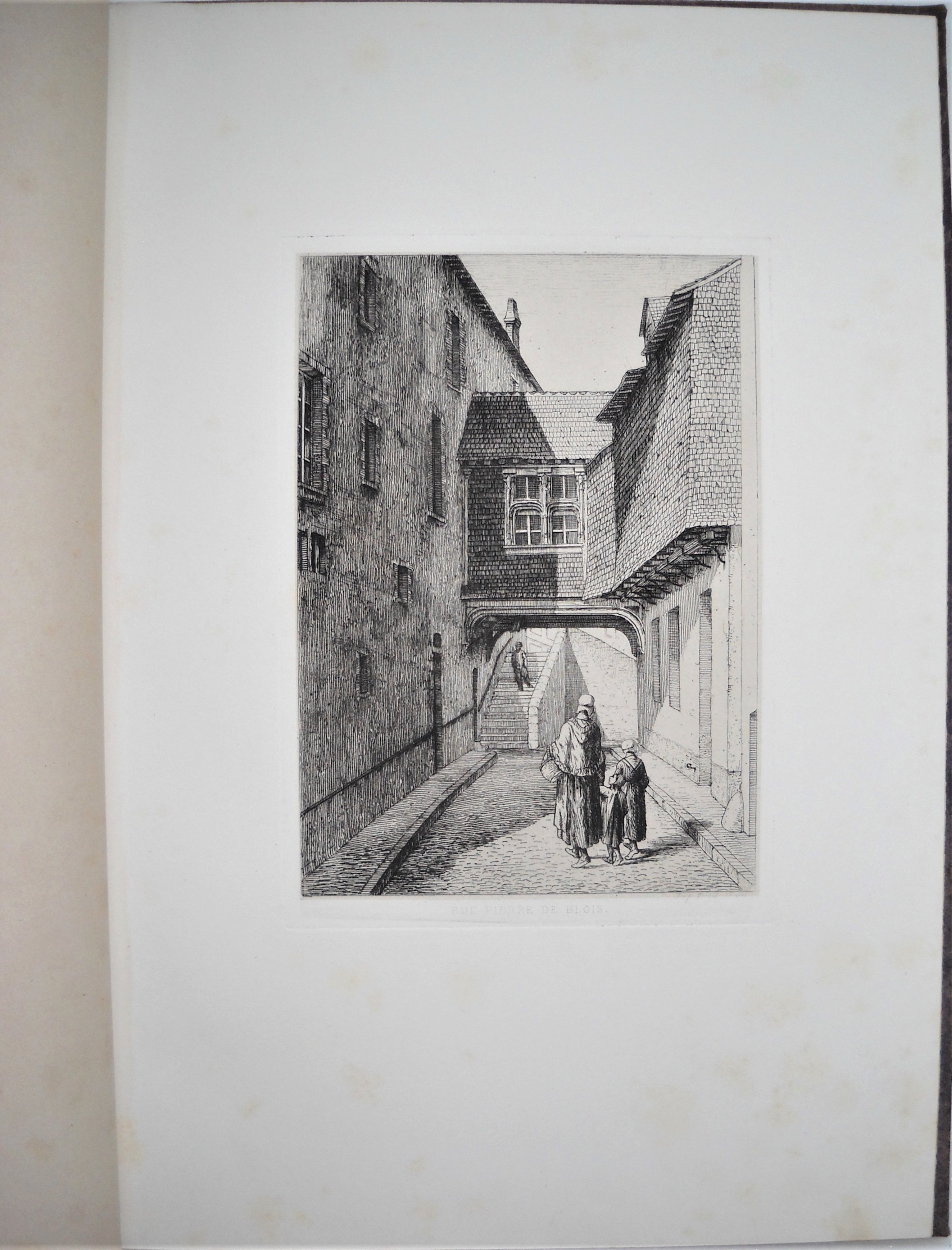 Rues et maisons du Vieux Blois, 4 pp. et complet des 20 pl. eaux-fortes, rel. in-fol. percaline et titres en lettres dorées, 42 x 30 cm (légères rousseurs).