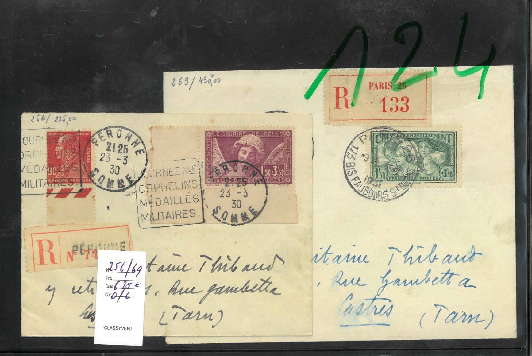 FRANCE. 256 + 269 sur lettres seul. O / L . Cote 625 €