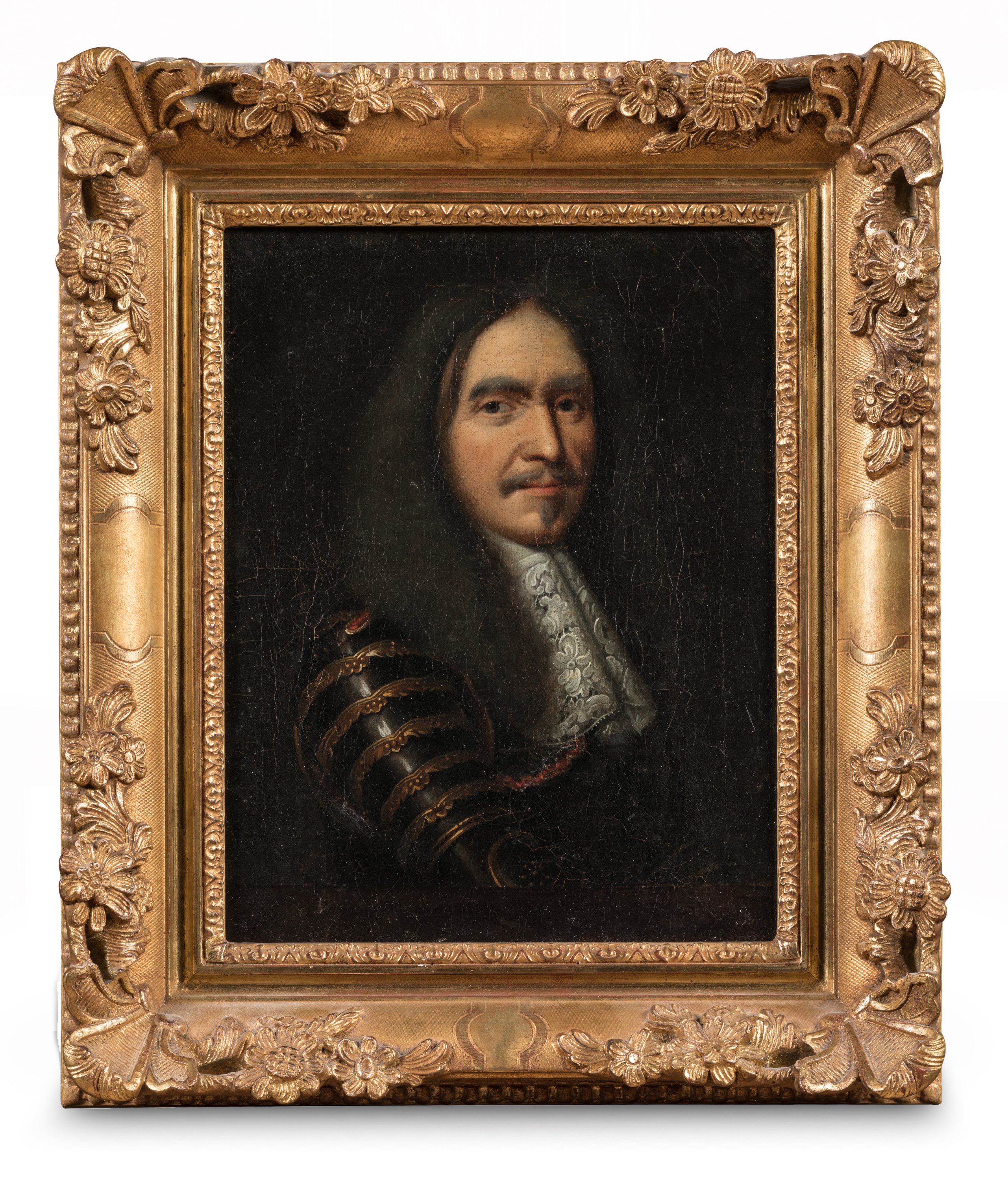 A 18th century French school portrait of Henri de La Tour d'Auvergne, Viscount of Turenne. Oil on canvas in a rich 18th century-style gilded frame. After an original by Mignard.