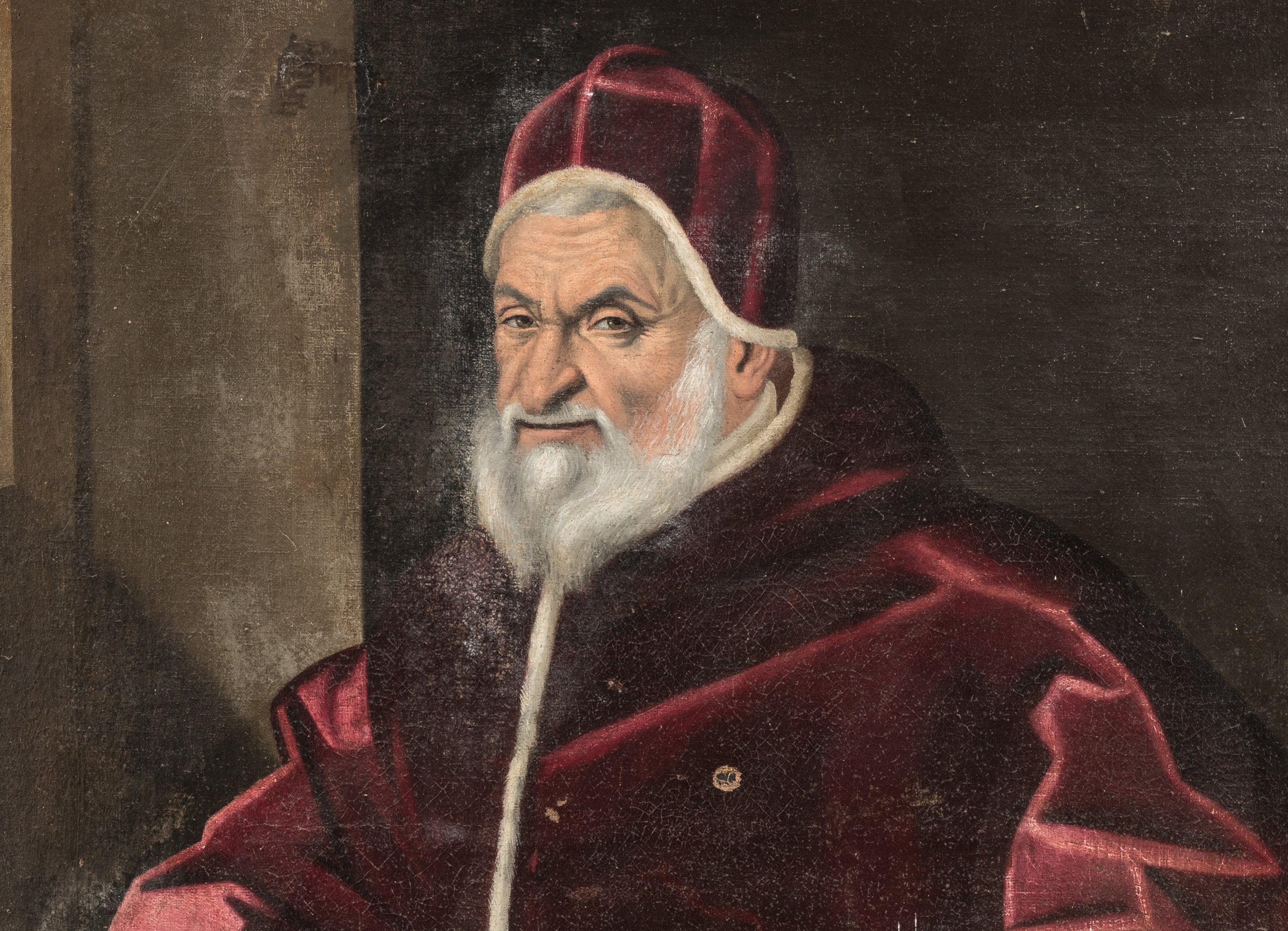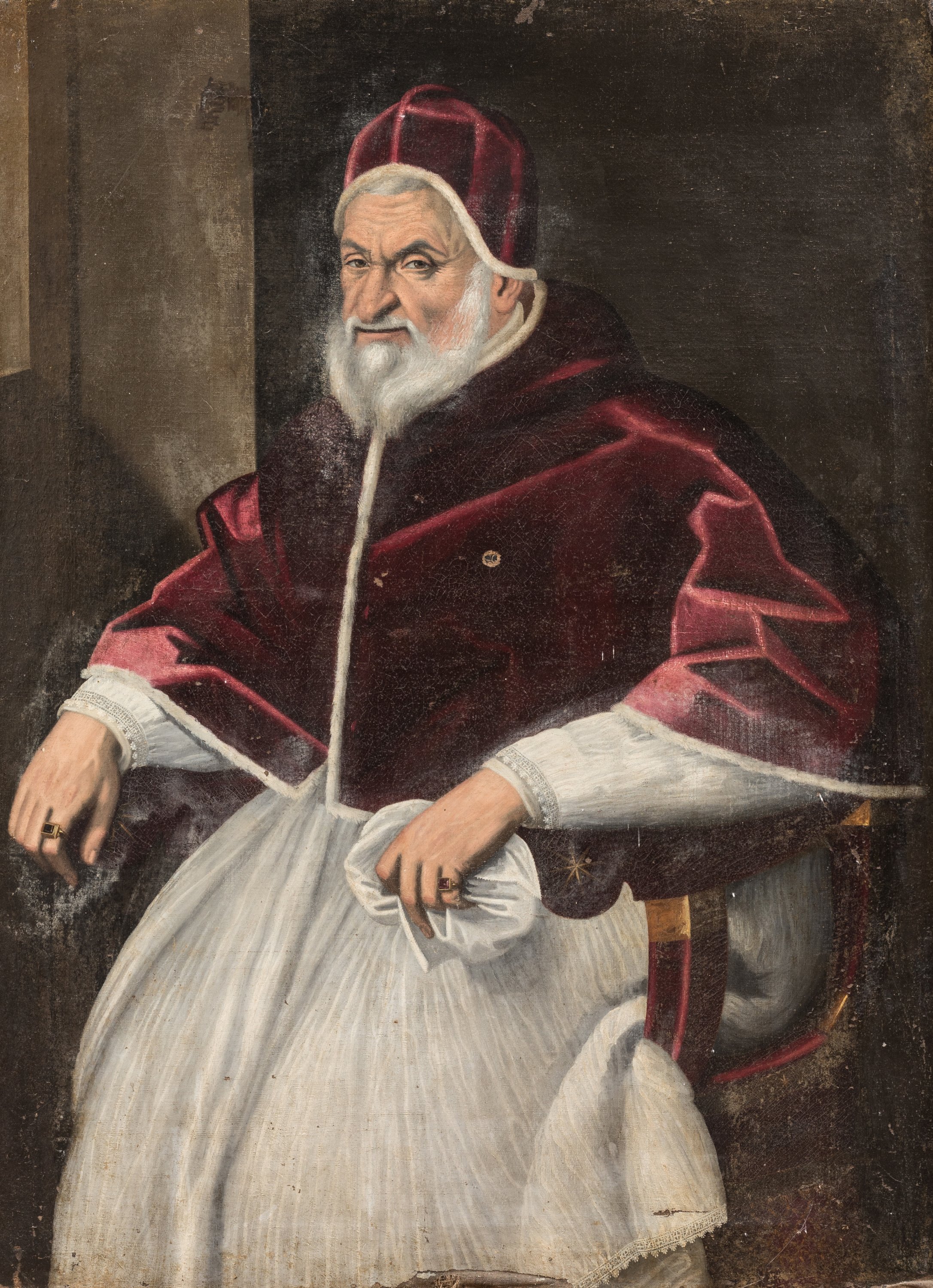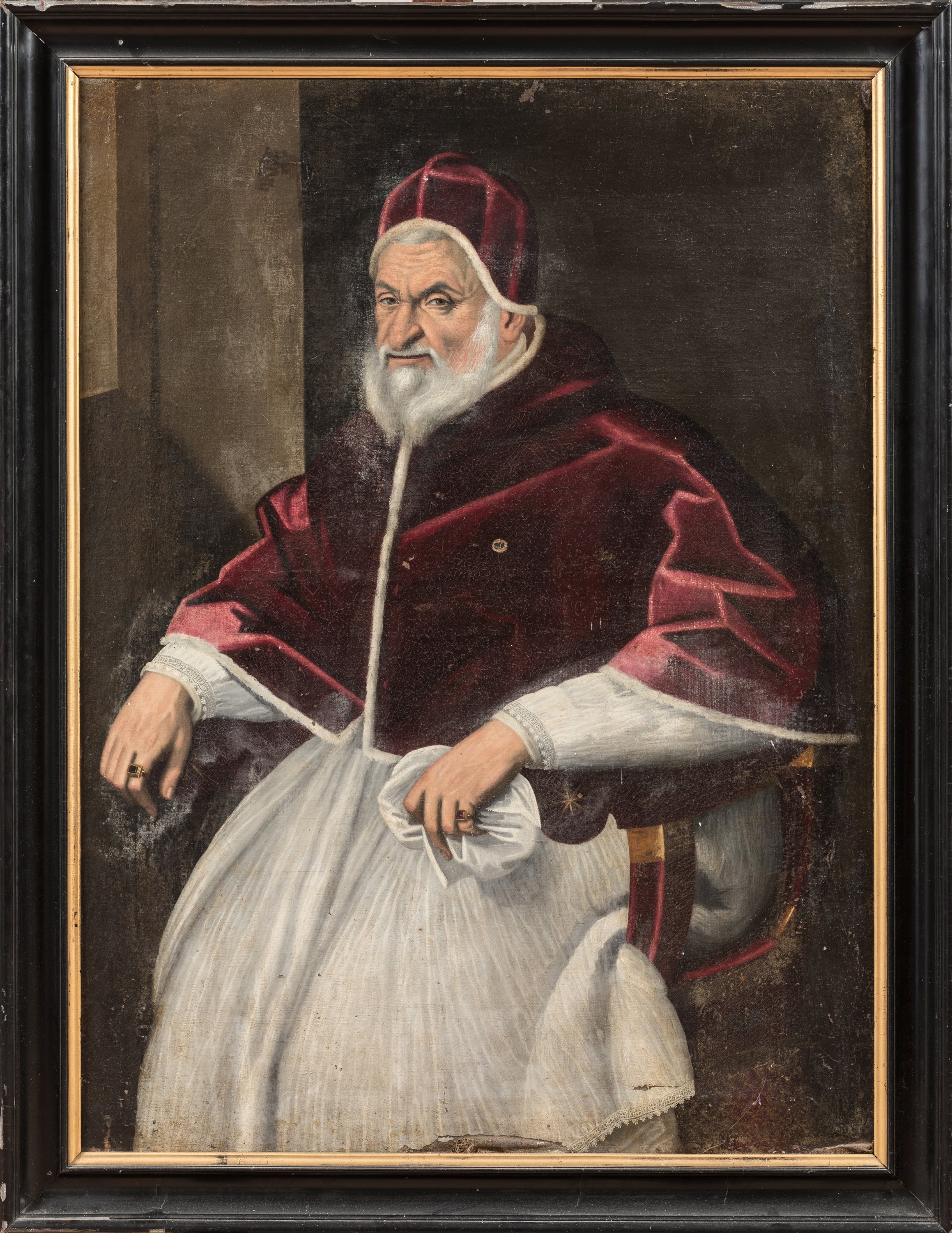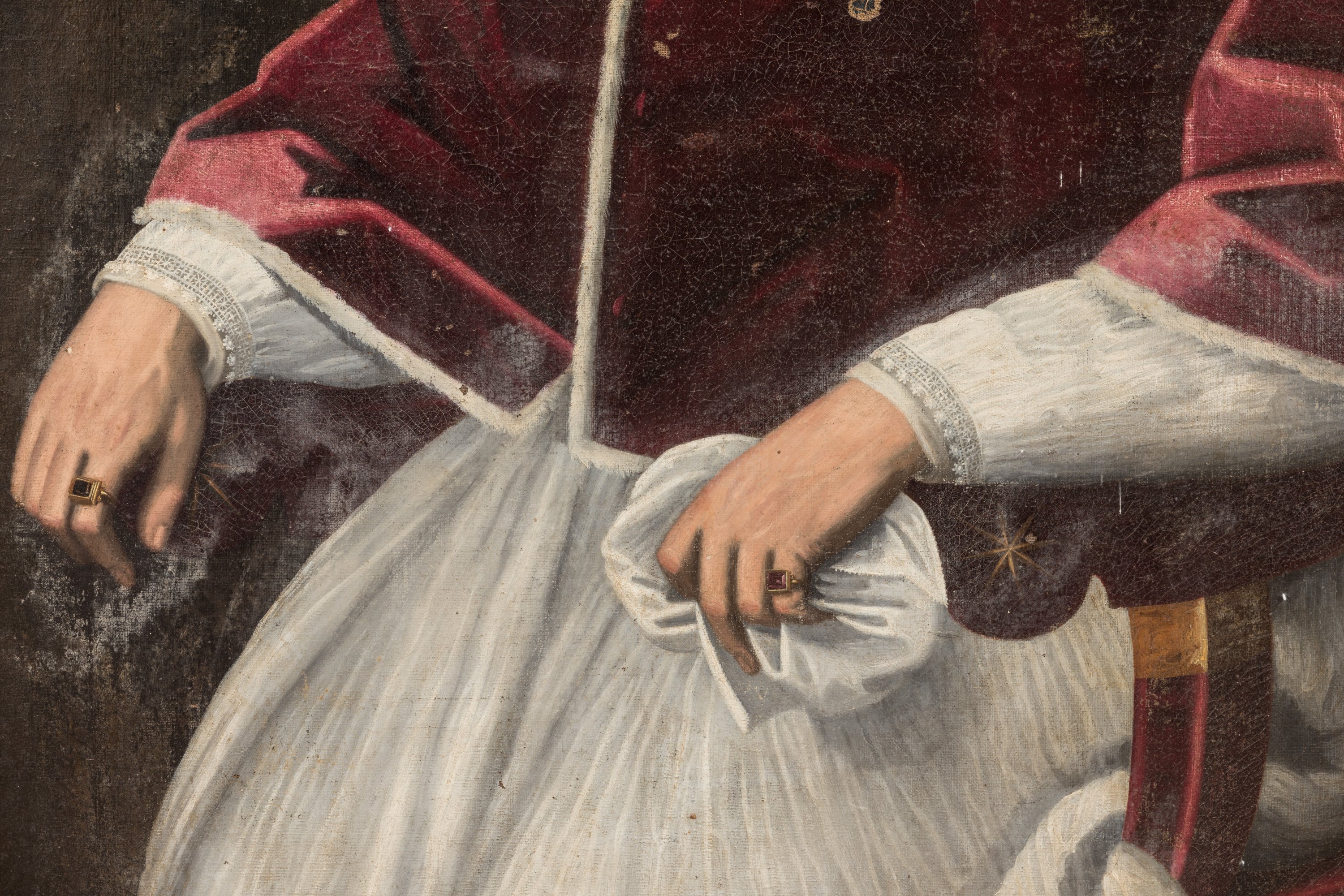 A 17th century Italian shool portrait of a church dignitary, presumably Pope Pius IV, by a follower of Titian. Oil on canvas.