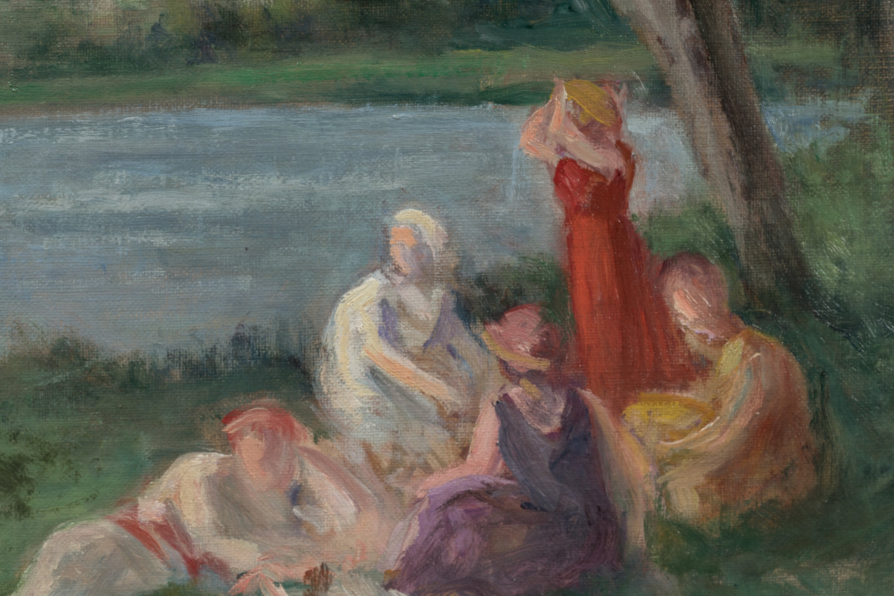 A painting by Maximilien Luce entitled "Luncheon on the Rolleboise rivershore". Oil on canvas.