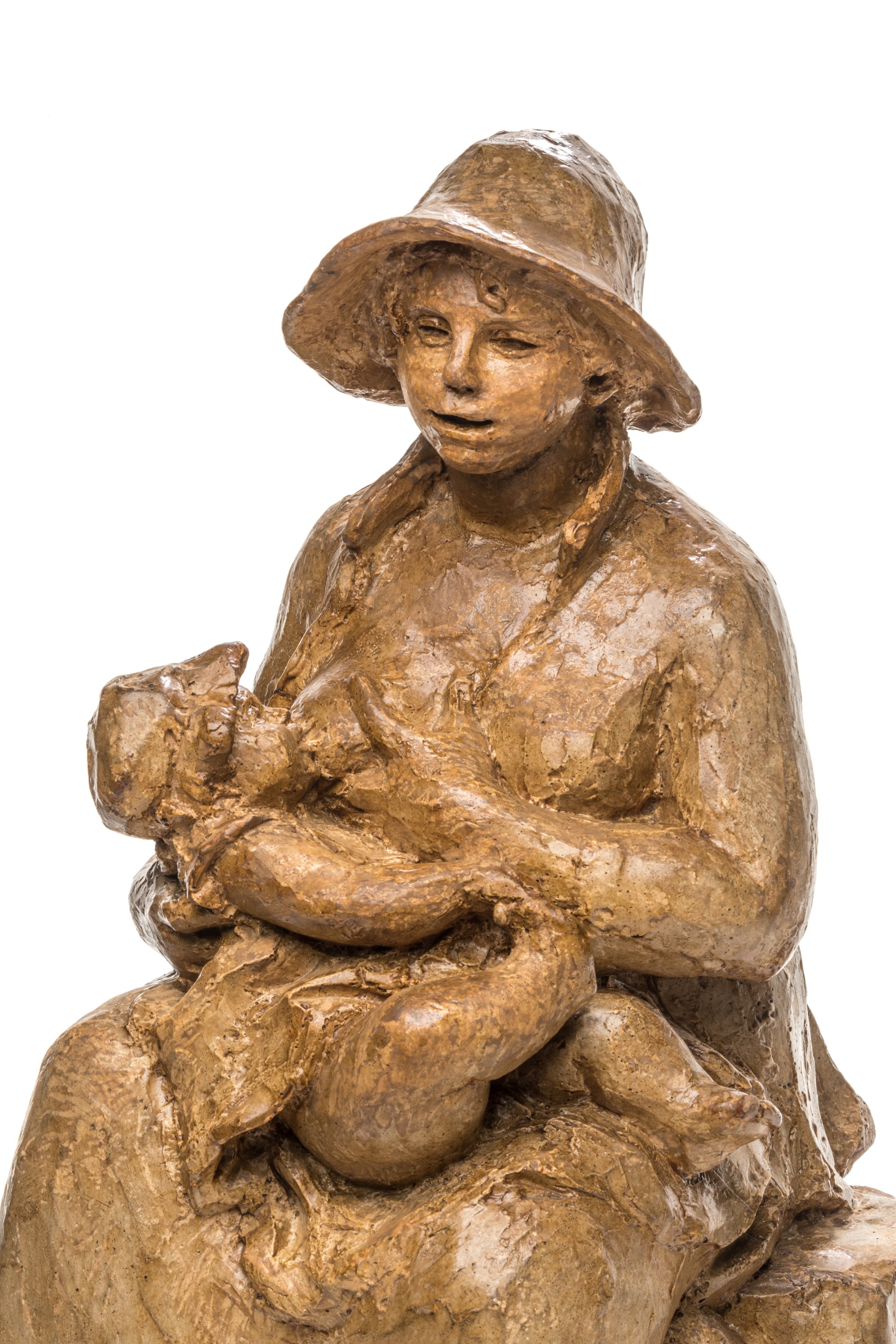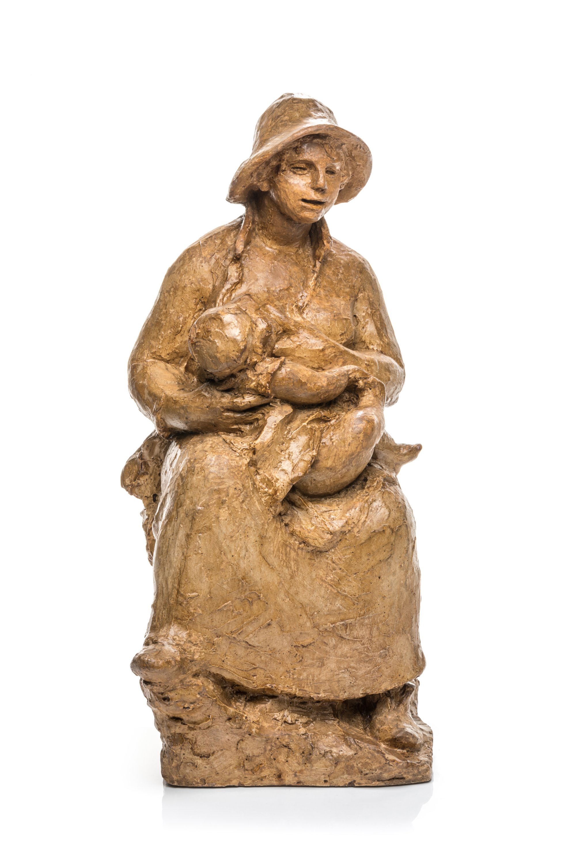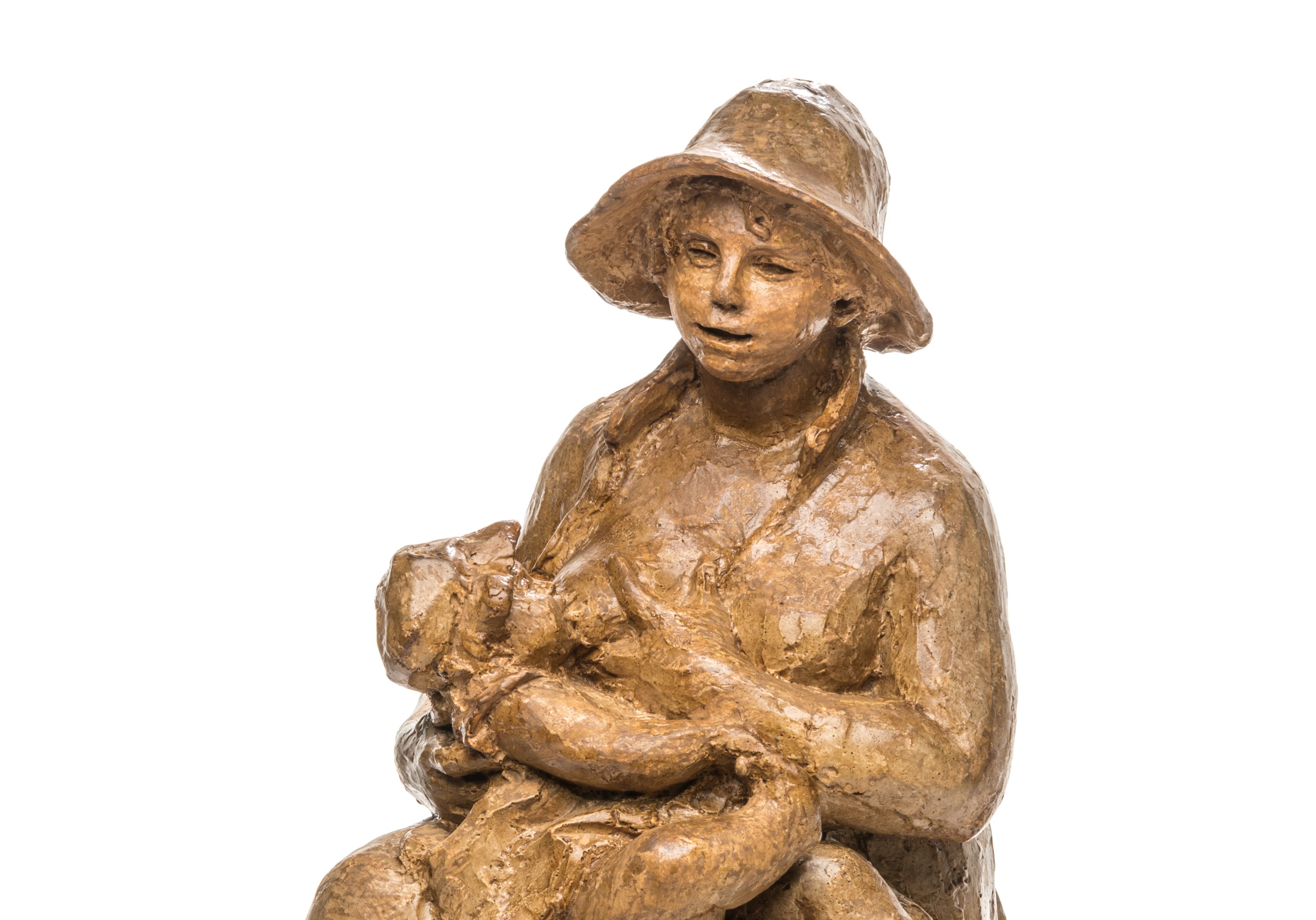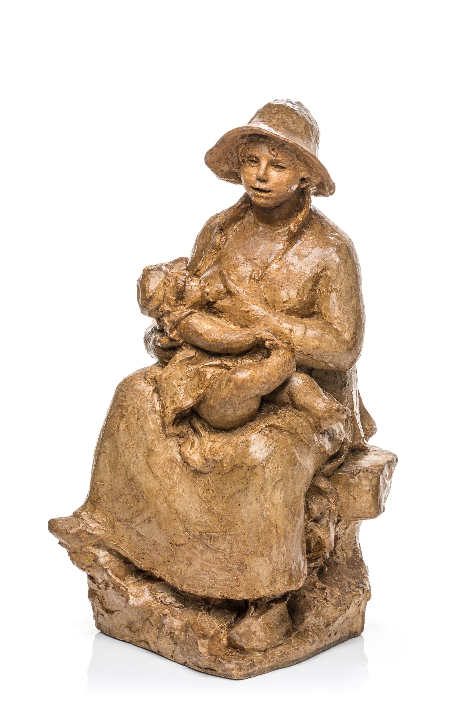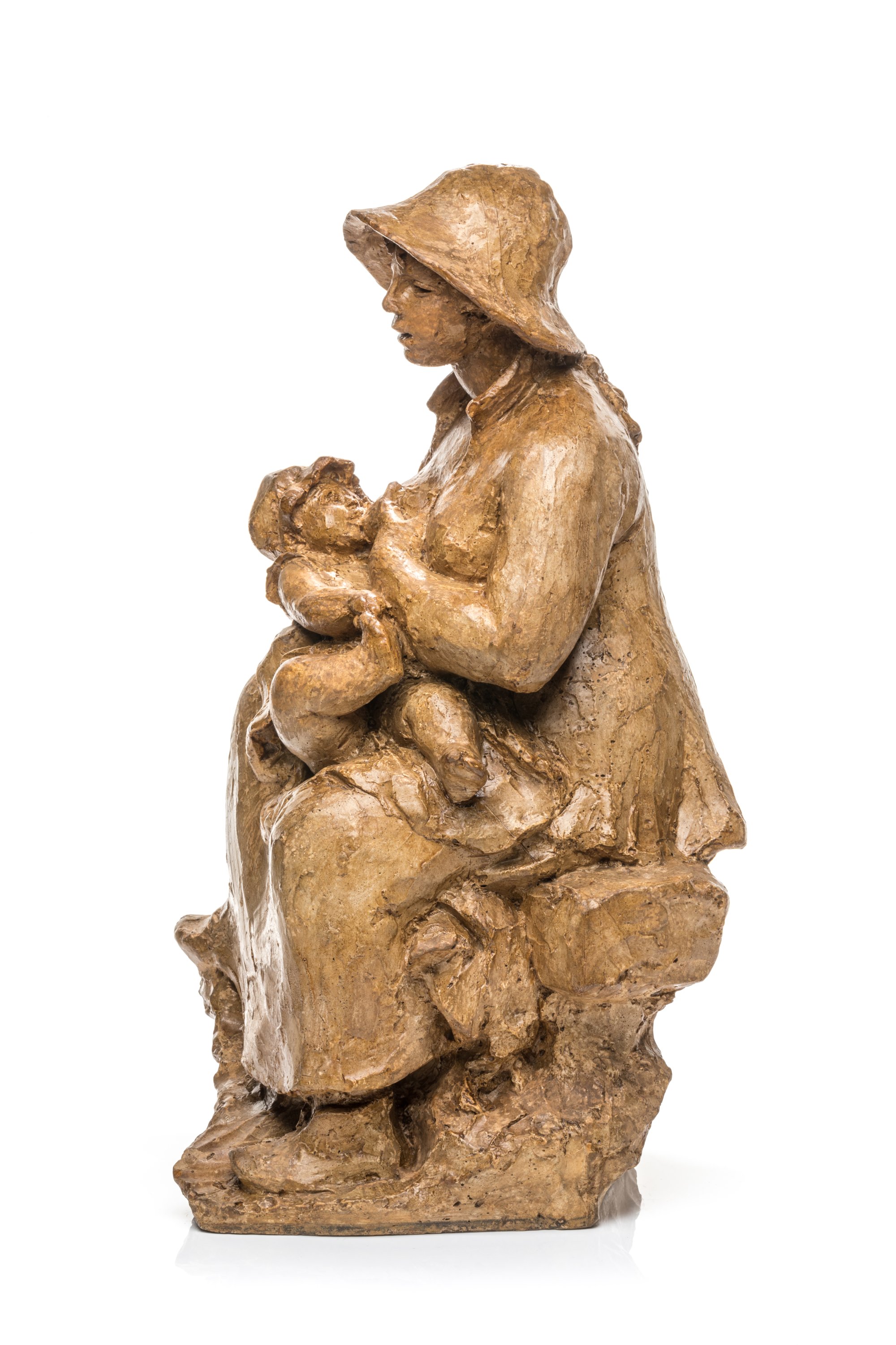 A foundry plaster by Renoir and Guino entitled "Maternity", depicting Renoir's wife nursing their son. A Renoir family heirloom.