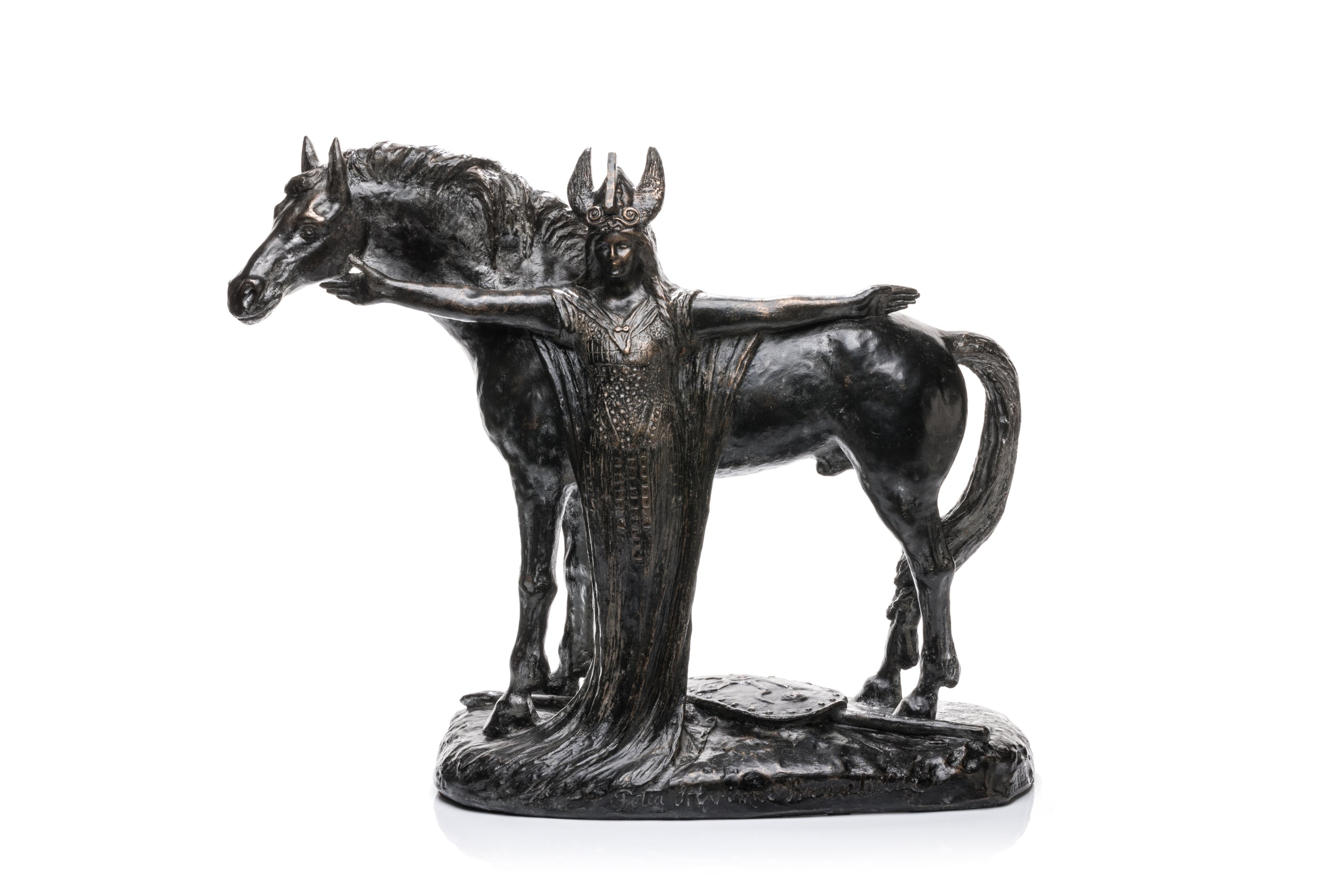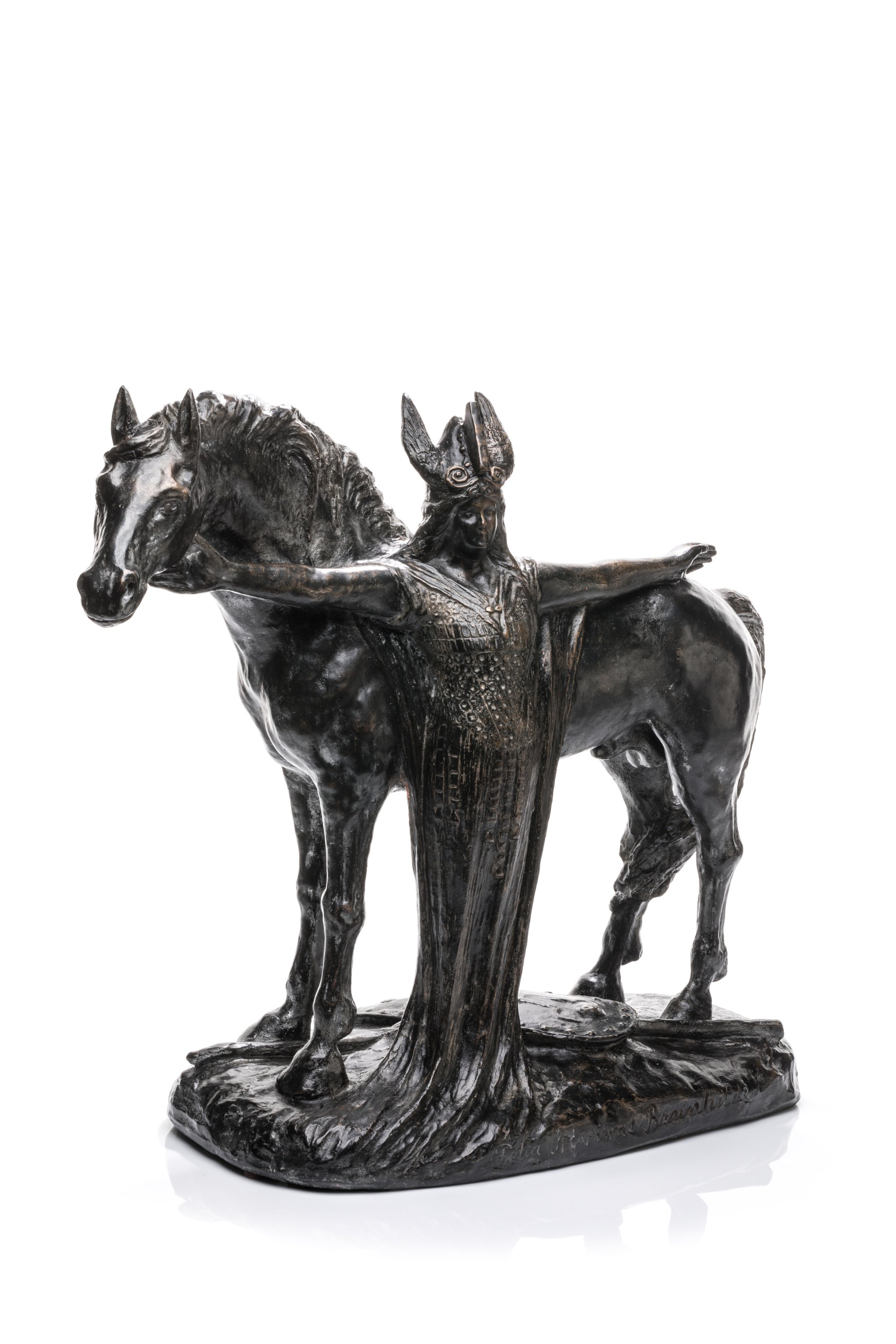 A bronze sculpture by Boleslas Biegas representing opera singer Félia Litvinne as Brünnhilde. Designed in 1911. Signed and numbered 2/8.
