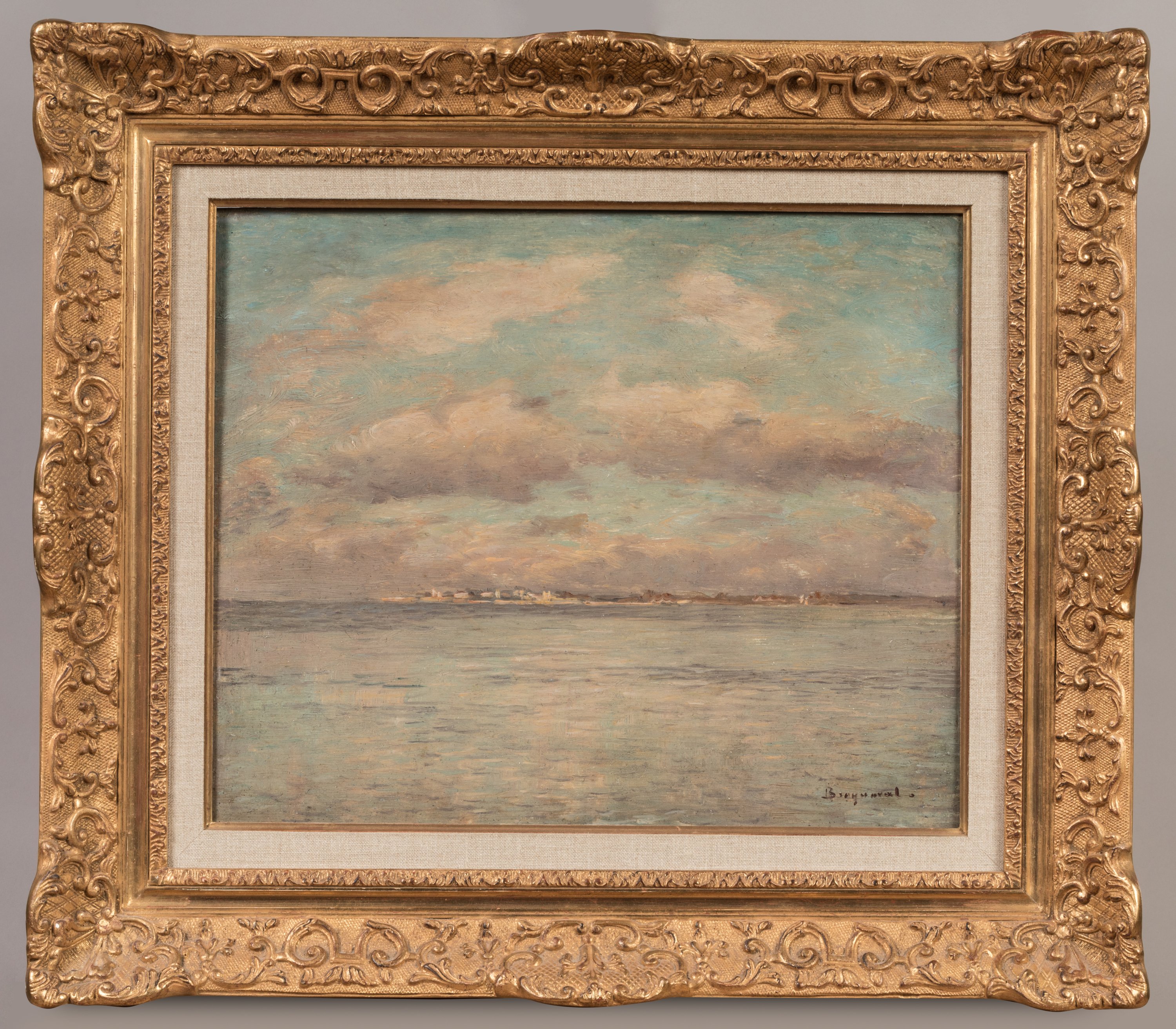 A painting by Louis Braquaval depicting a sea shore. Signed pannel.