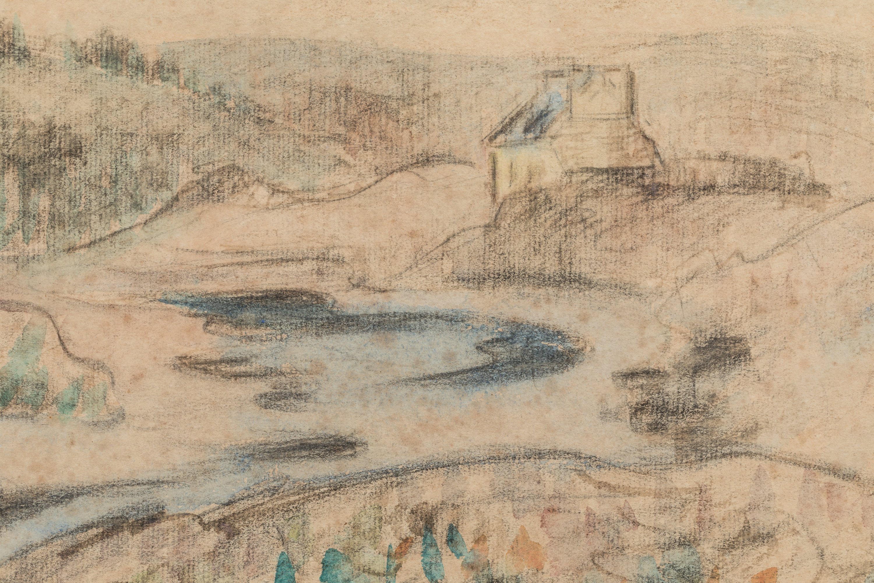 A watercolor and charcoal painting by Gustave Loiseau entitled "Pont-Aven". Signed.