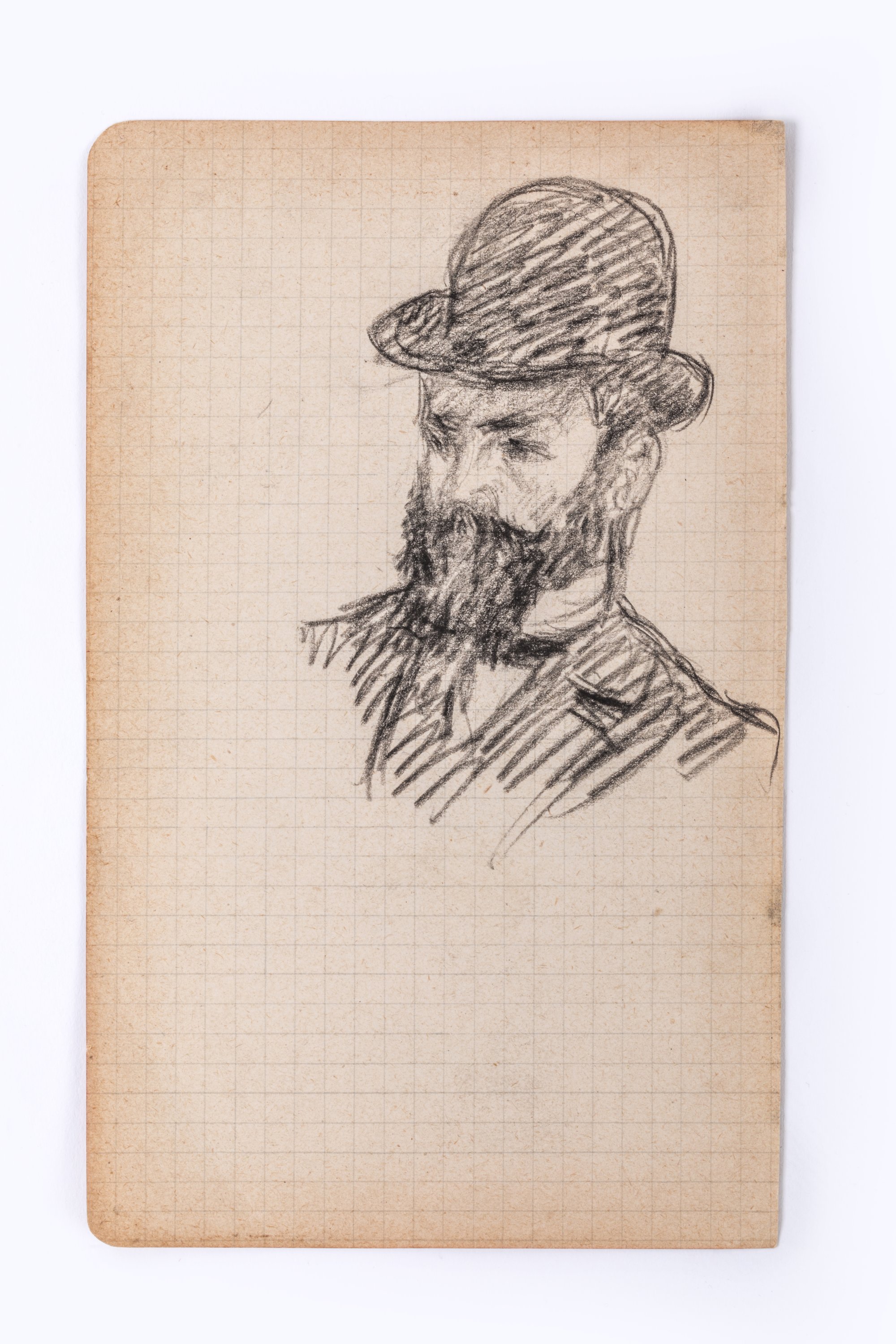 Ces études inédites tirées de deux carnets nous plongent au cur de la Nouvelle Athènes et du Groupe des Batignolles. L'étude présumée de Manet est à rapprocher du portrait de l'artiste réalisé par Carolus-Duran en 1880 (musée d'Orsay n°25657): on retrouve en effet son chapeau melon, sa barbe fournie et son air grave.