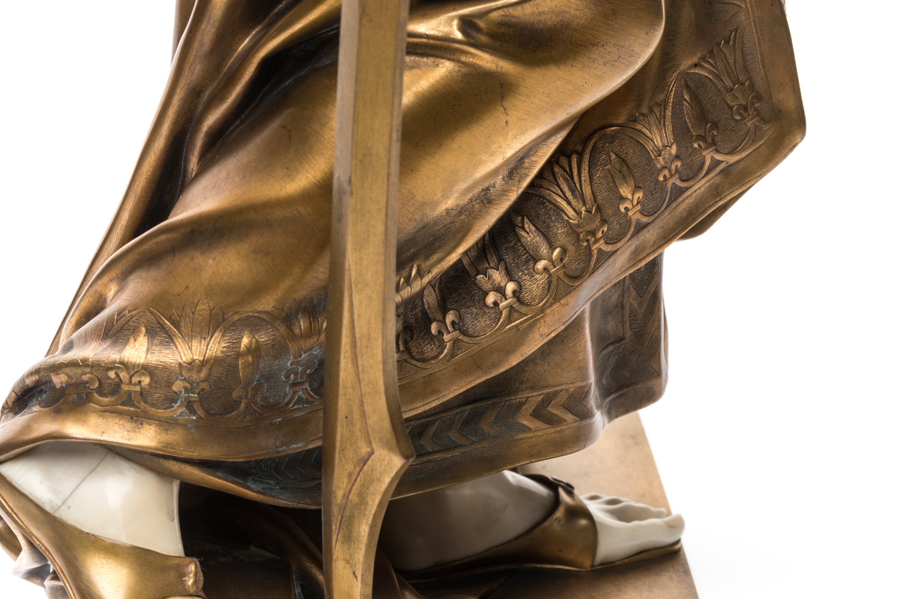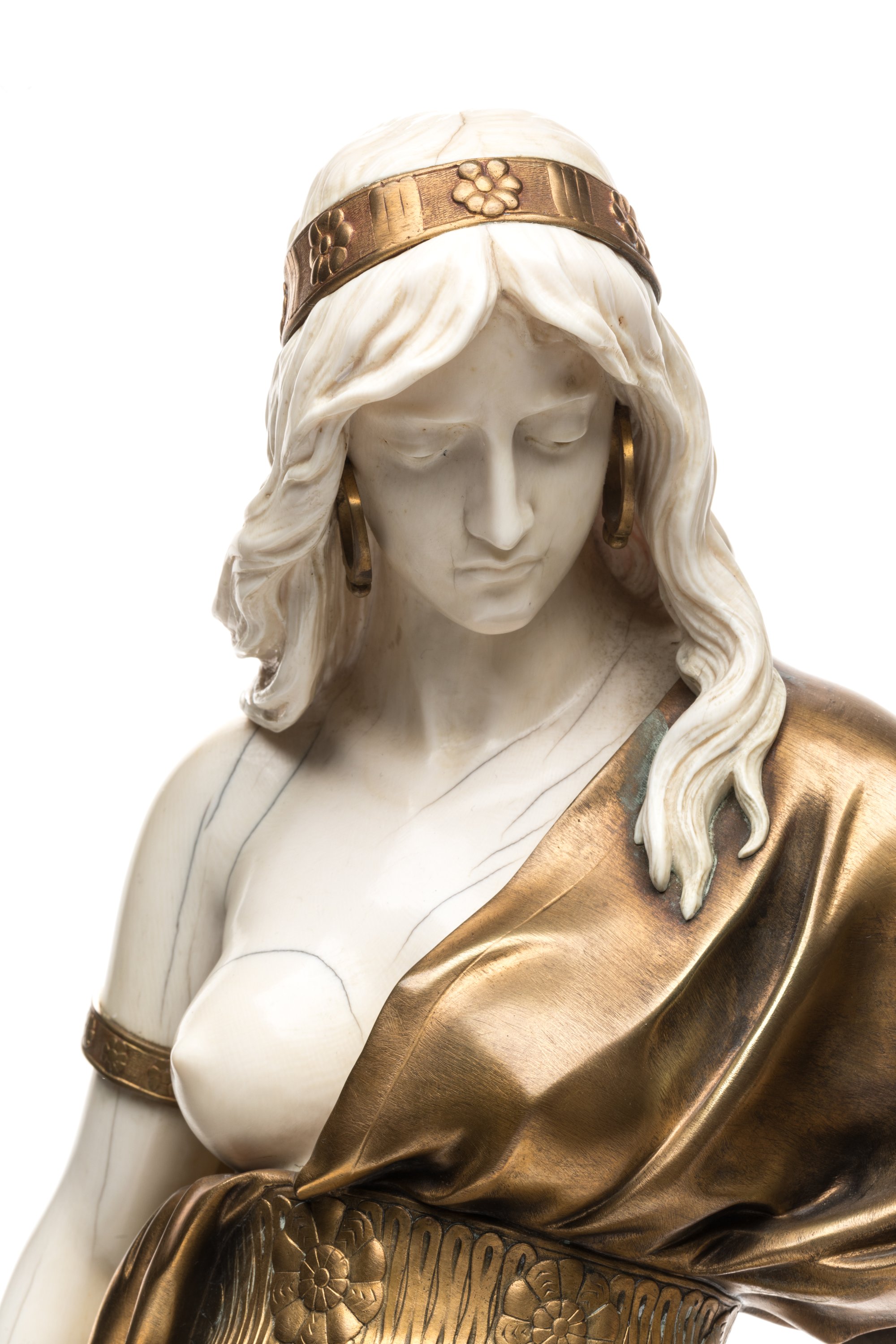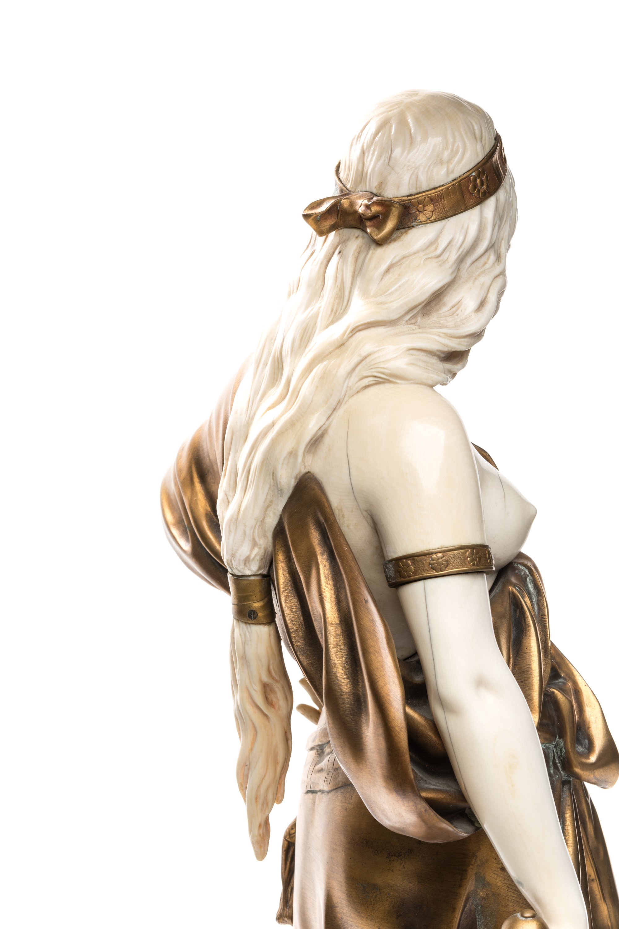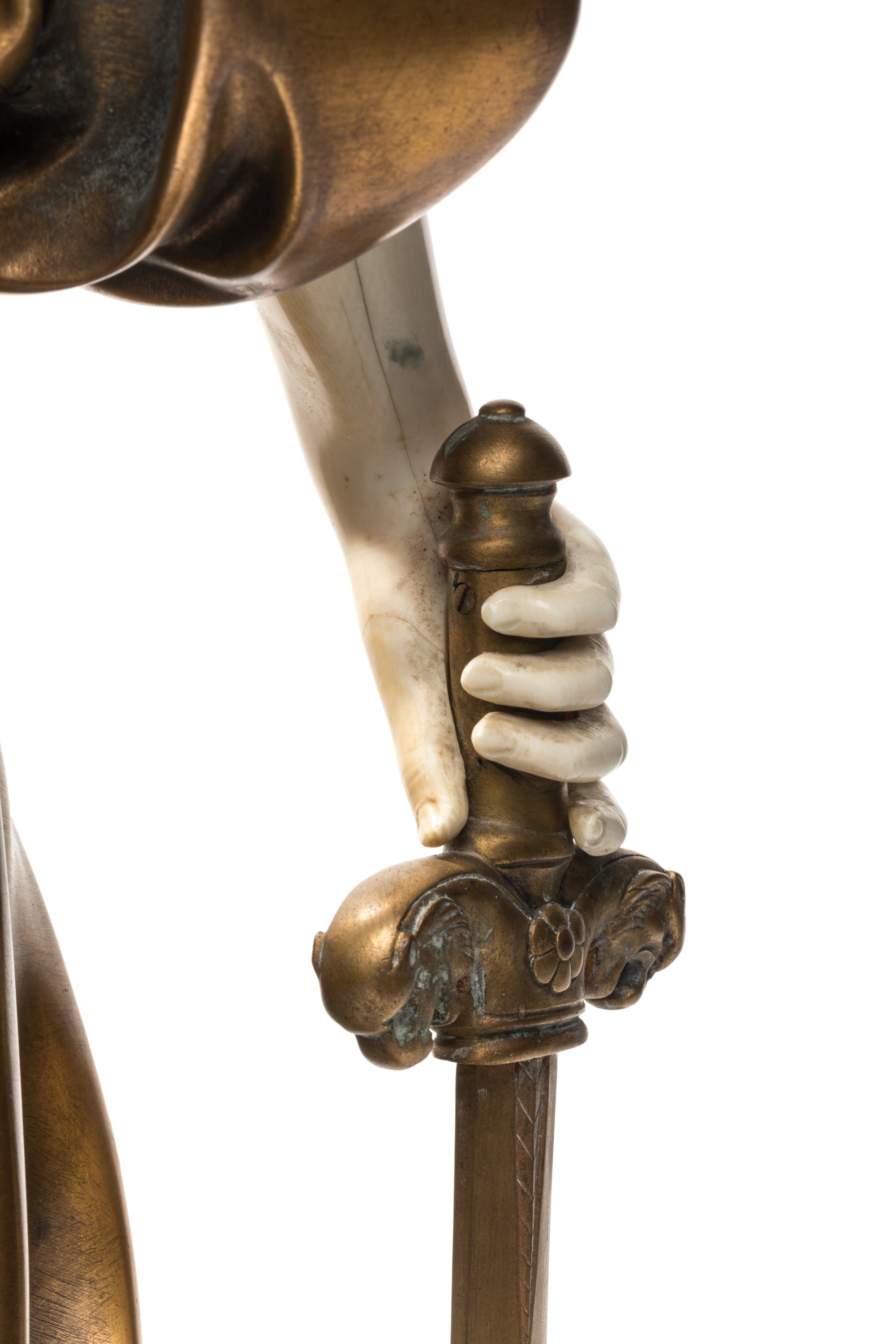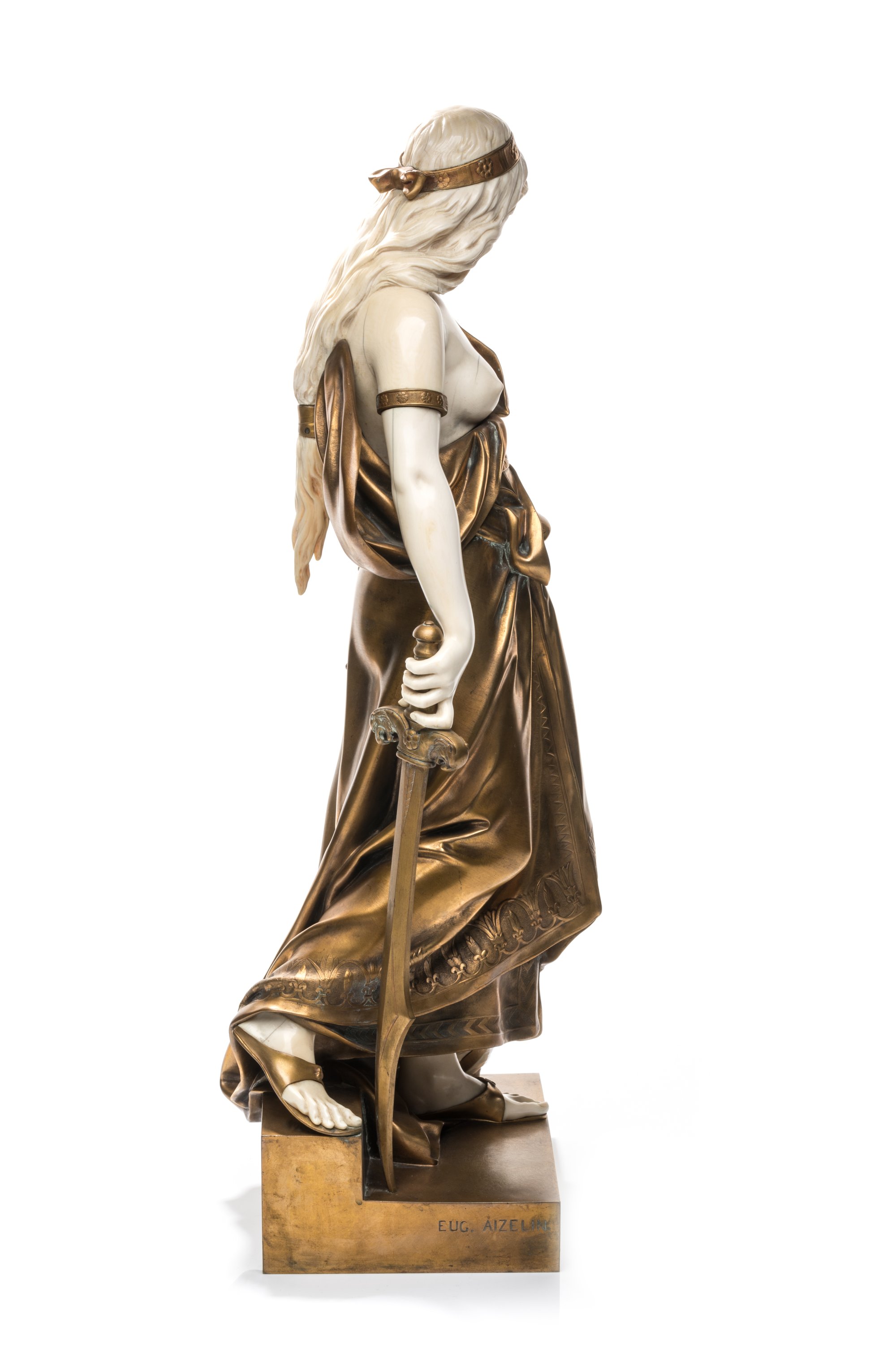 A ca. 1900 ivory and gilded bronze sculpture of Judith by Eugène Antoine Aizelin. Signed.