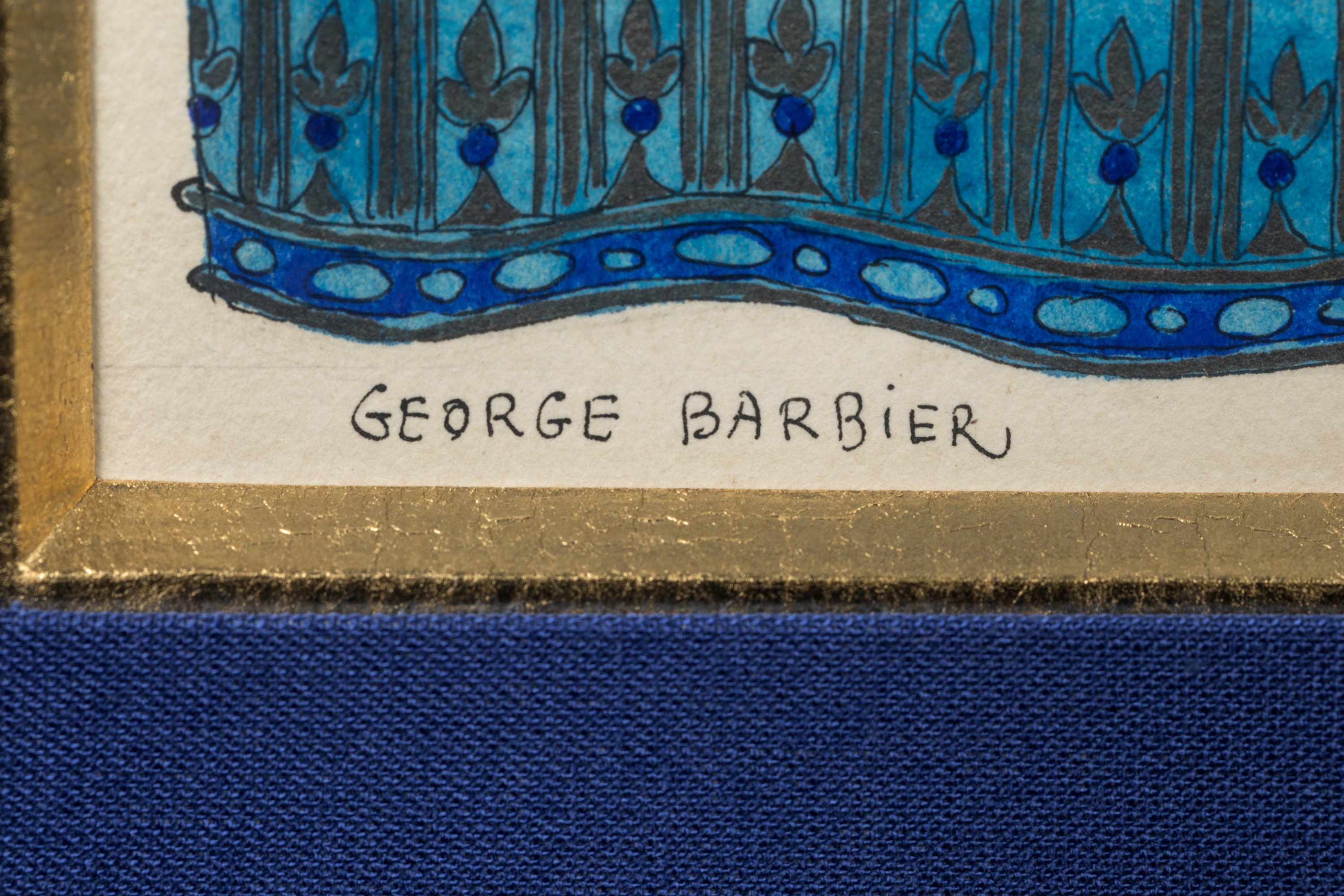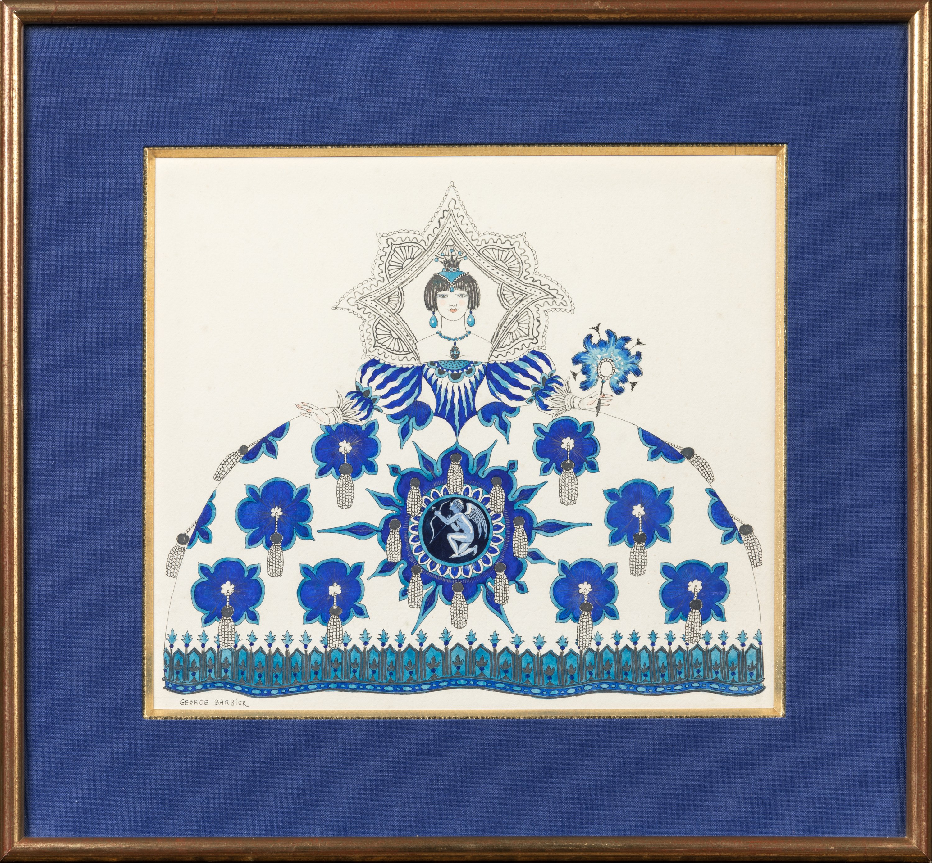 A watercolor and black ink painting by George Barbier entitled "The Princess and the Cornflower". Signed.