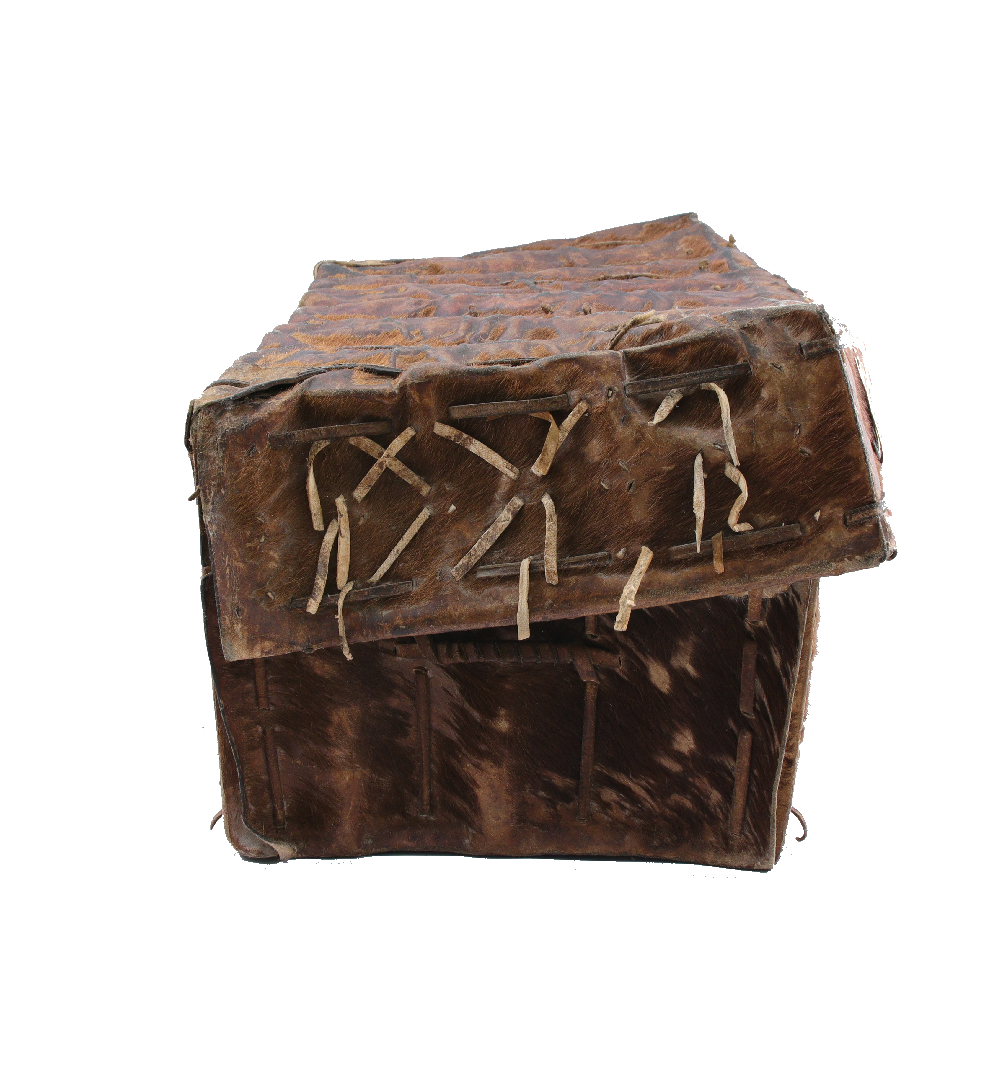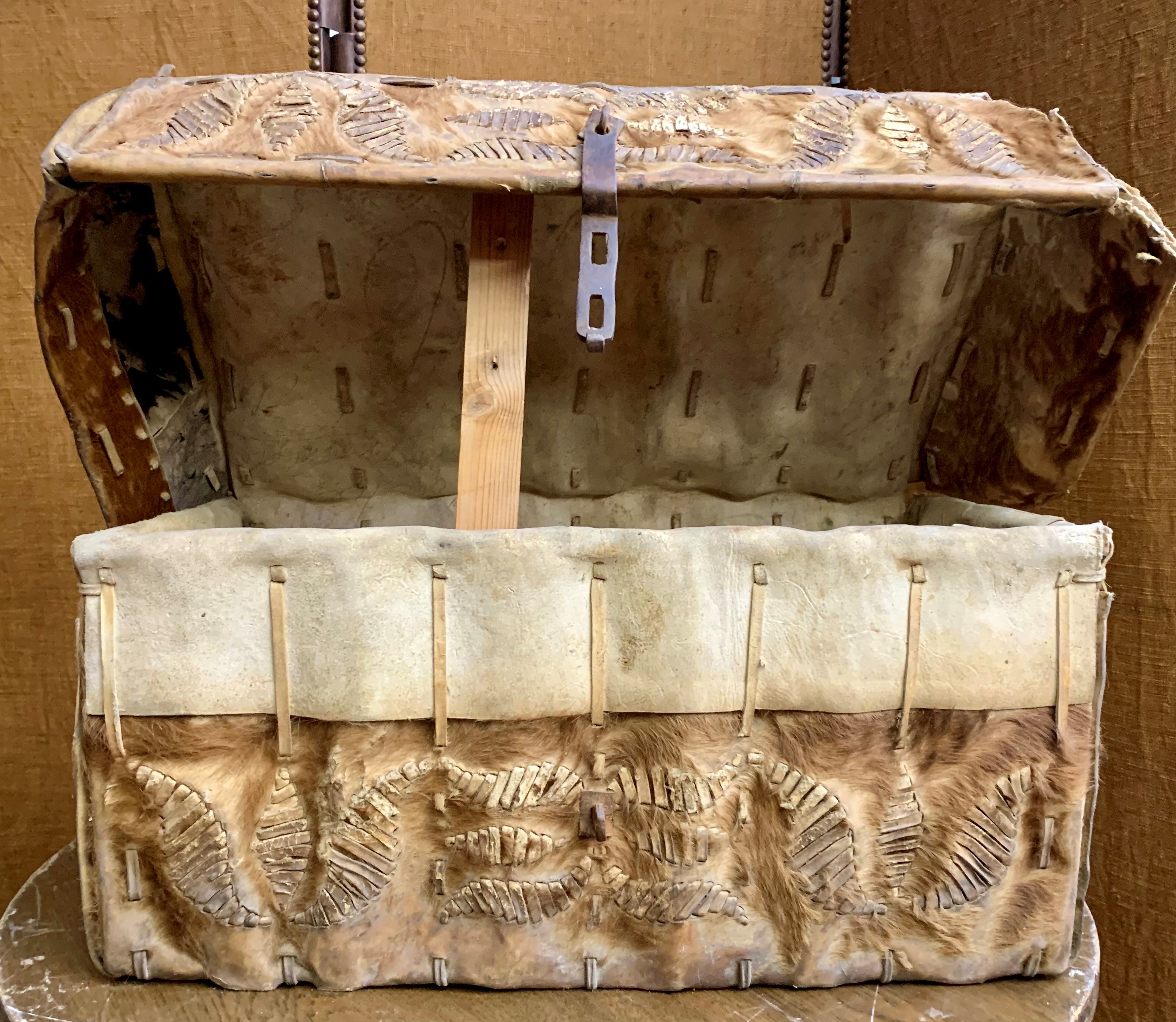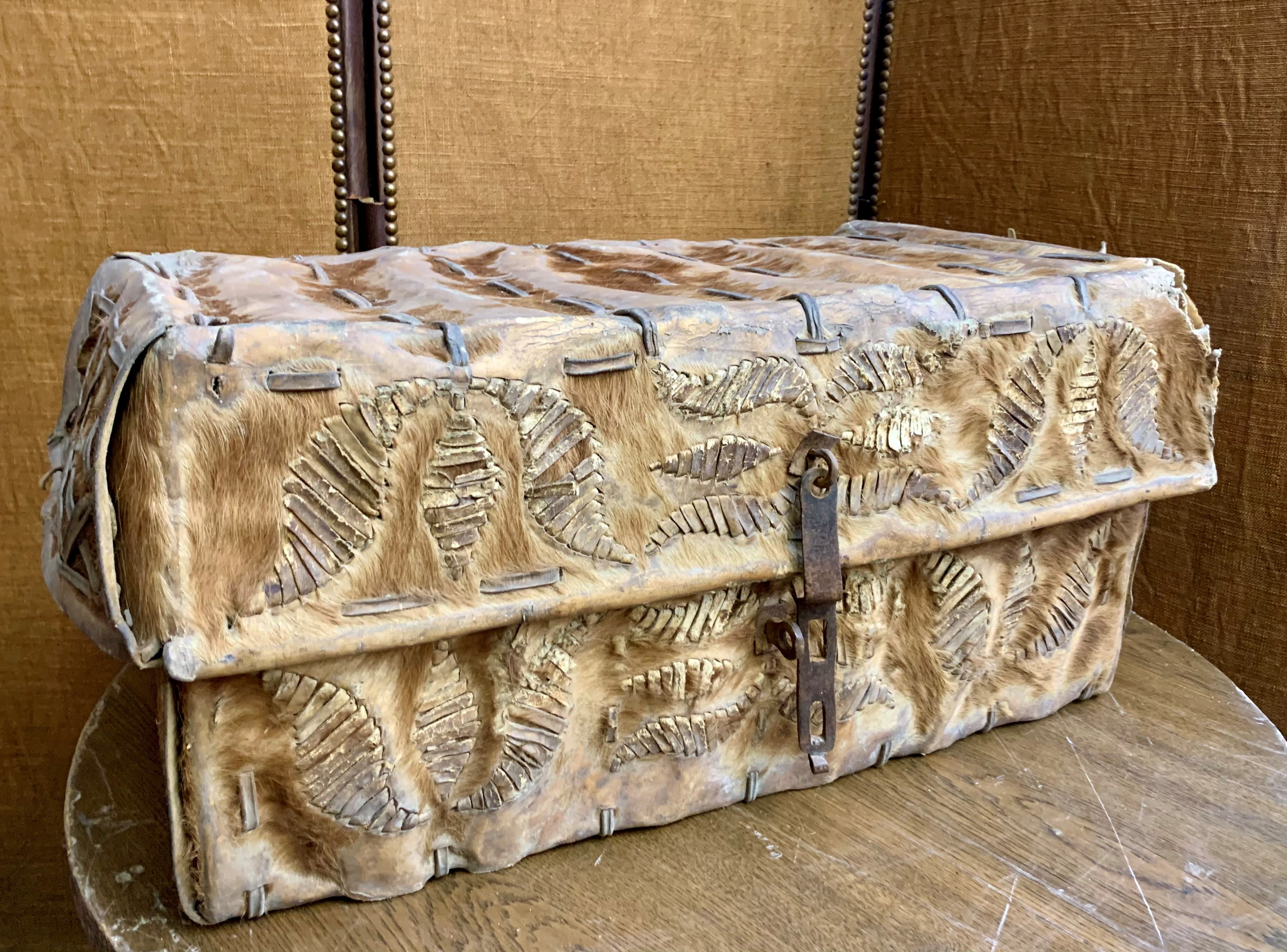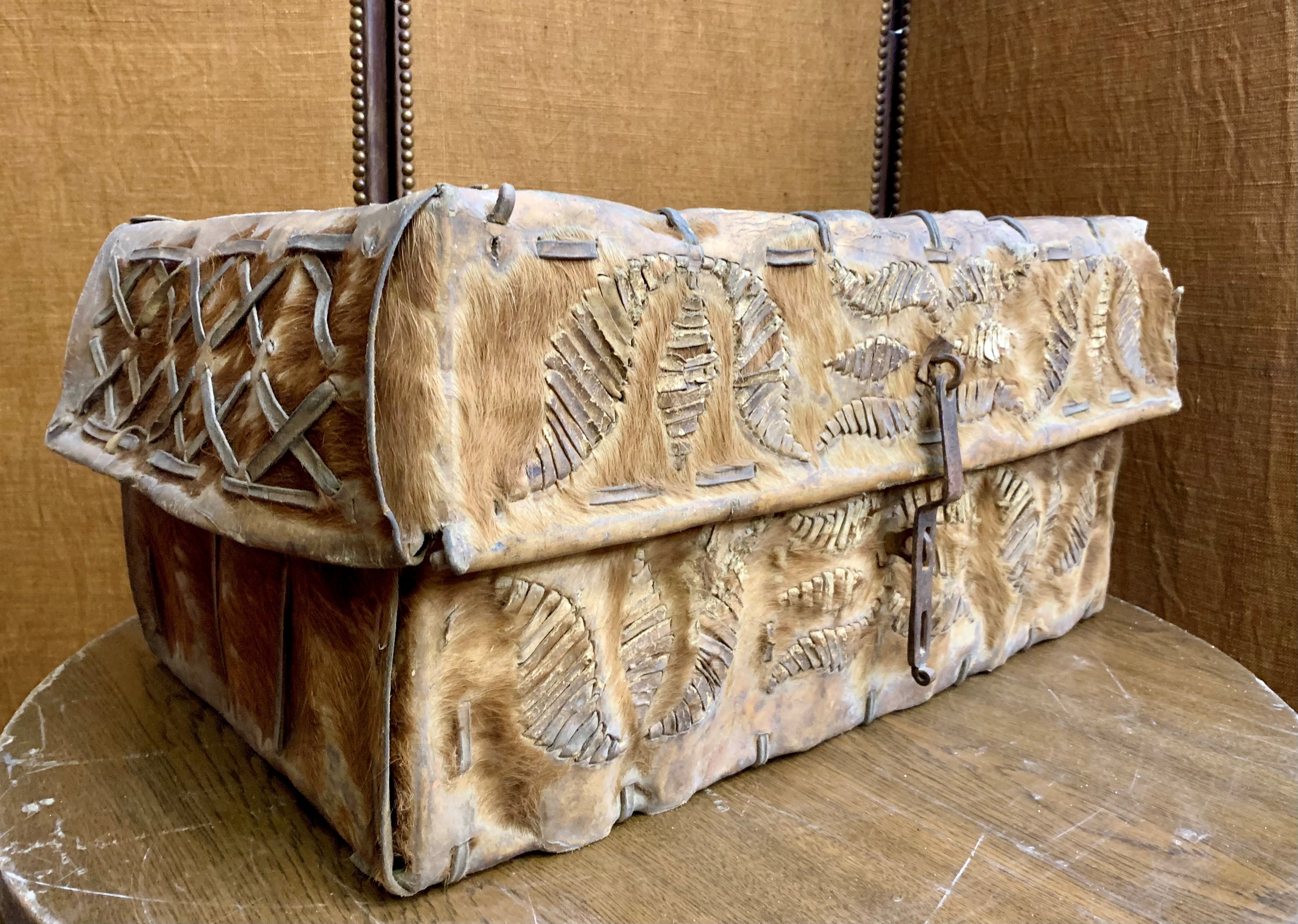Malheureusement, peu d’exemplaires ont survécu. Néanmoins, tout laisse à croire que l’équipement traditionnel des premiers conquistadors envoyé par Charles Quint ait été adapté au cours du XVIIIe siècle aux contraintes locales. Ces malles de cuirs sont ainsi le fruit d’un artisanat espagnol et de techniques vernaculaires.