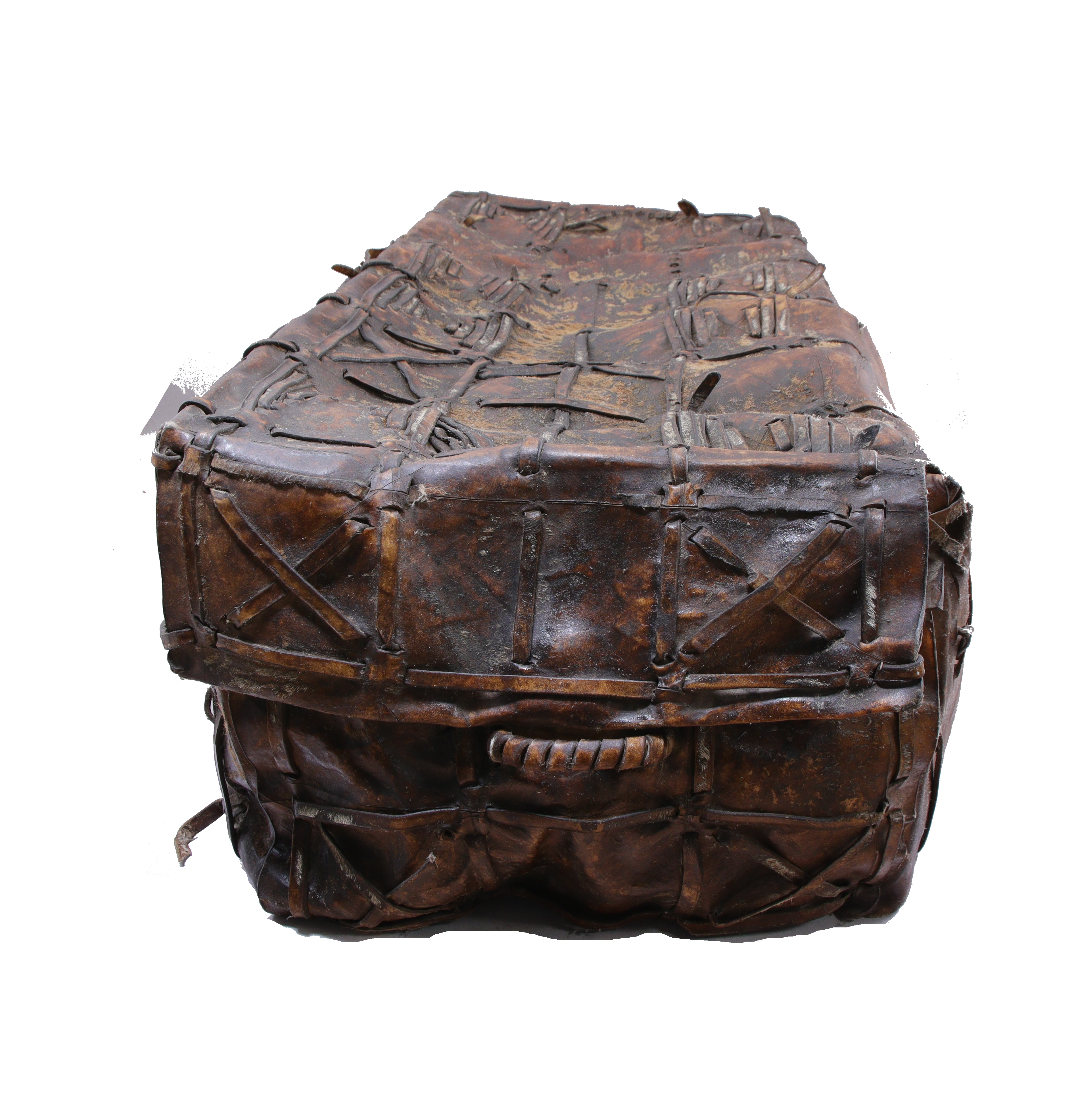 Ce type de malle extrêmement rare était certainement fabriqué par un atelier espagnol de la Vice-Royauté du Pérou. D'une très grande solidité, leurs garnitures en cuir sadaptent aux voyages les plus périlleux. Aujourd'hui, les rares exemplaires connus ressuscitent le souvenir de voyages épiques.