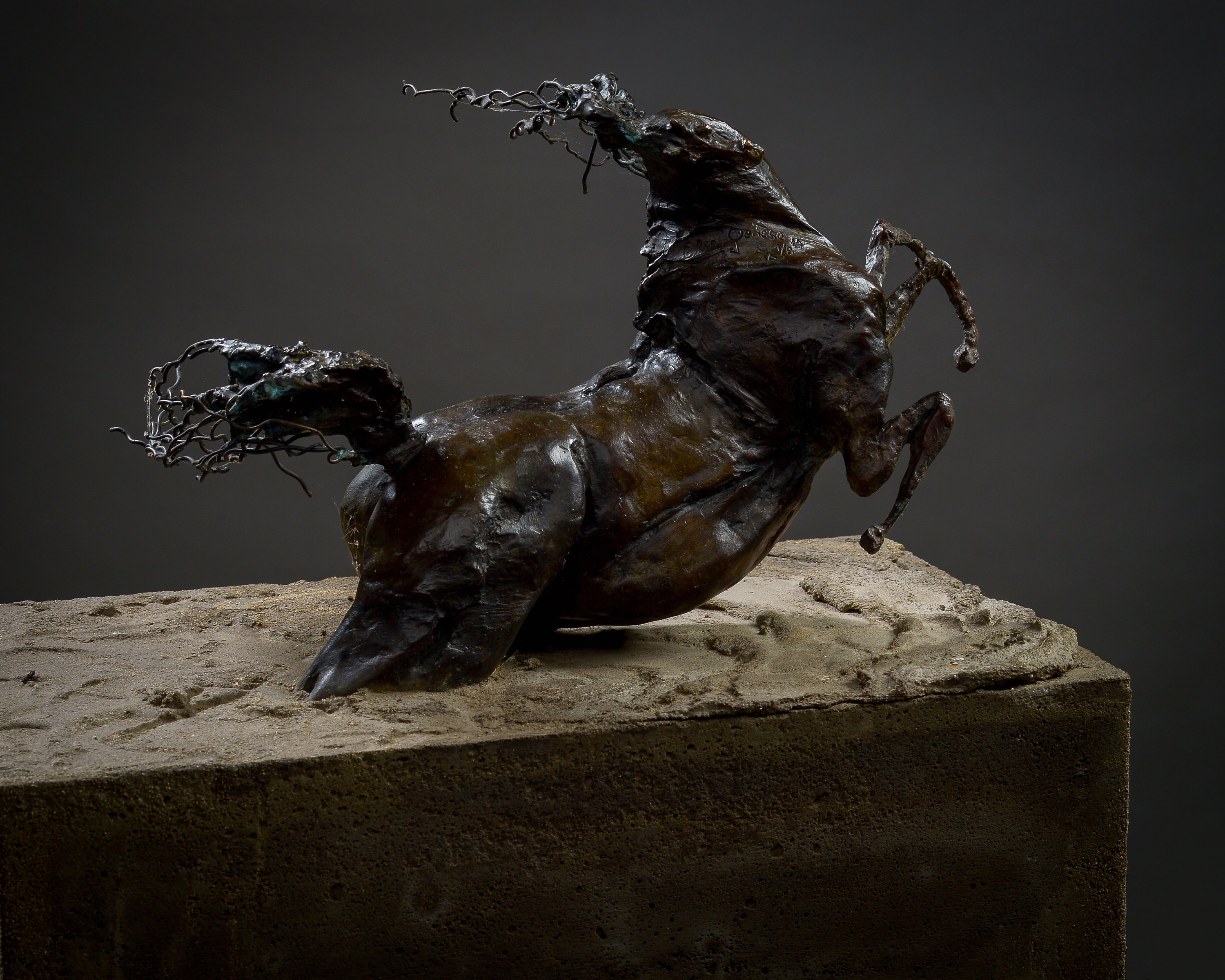 Ciment et bronze à patine brune, signée sur l'épaule.