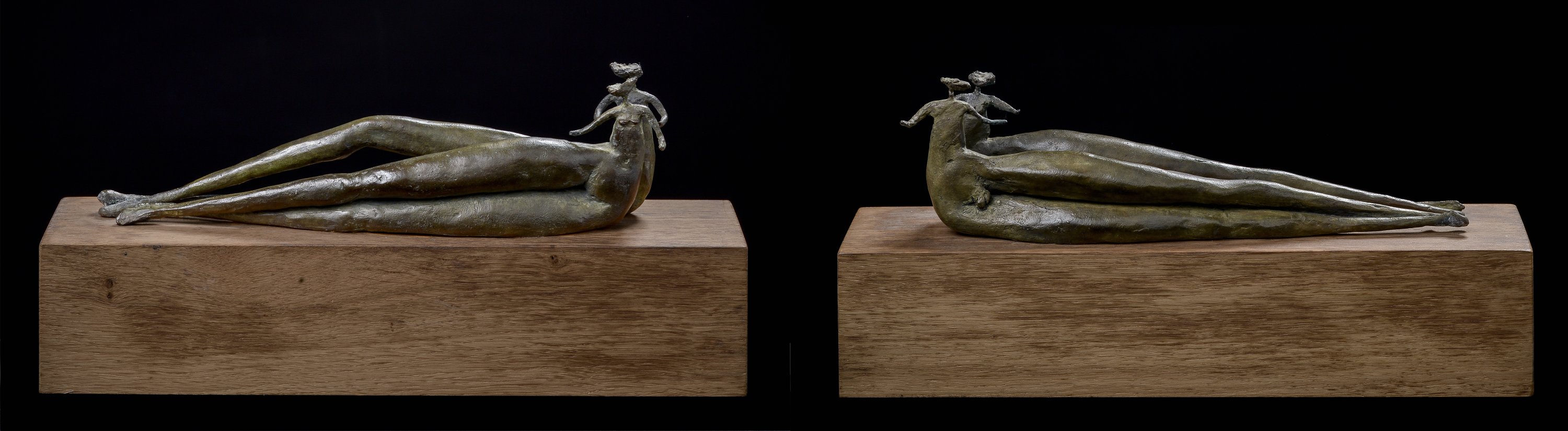 Paire comprenant 4 sculptures en bronze sur deux bases en chêne.