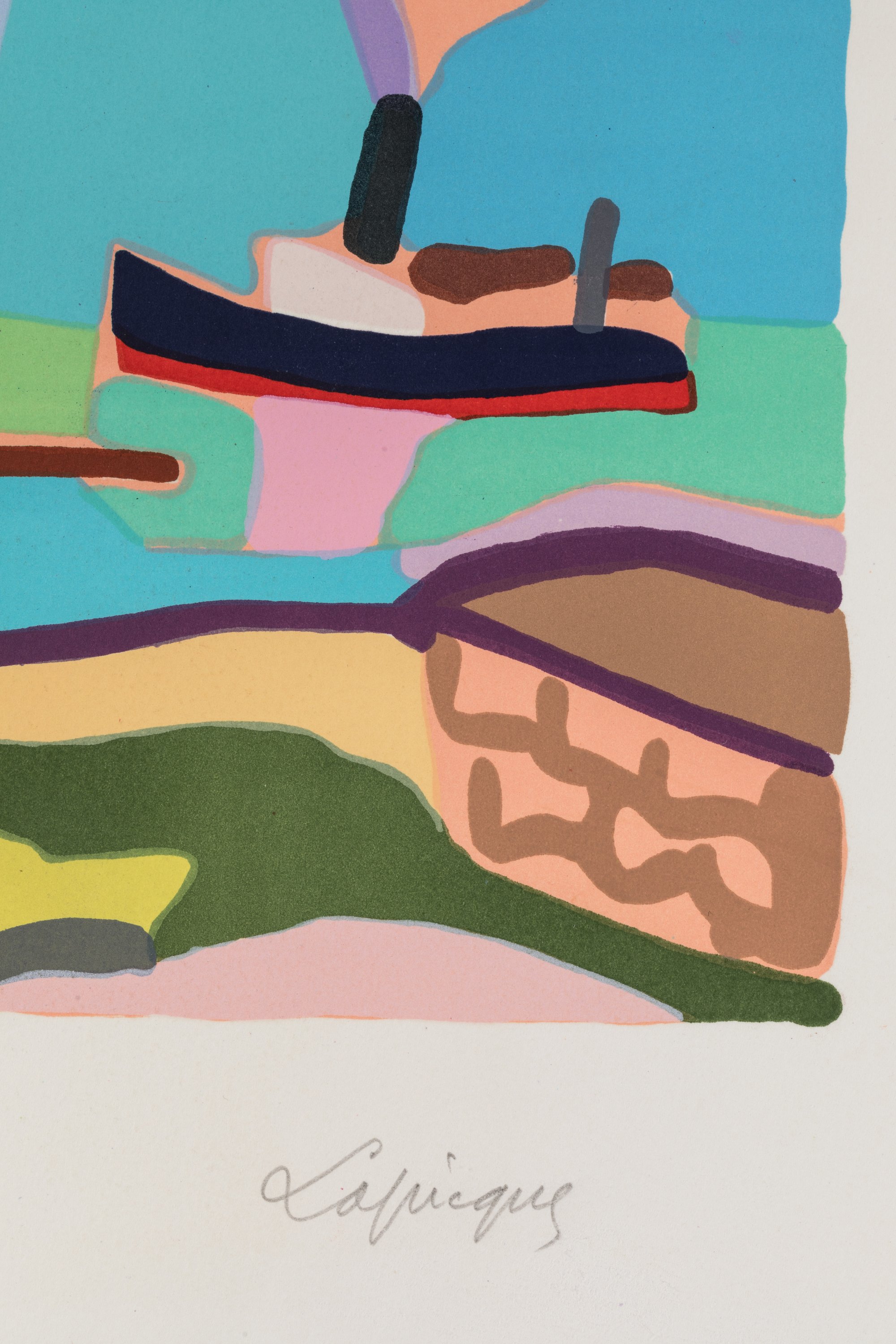 JOINT: Charles Lapicque (Français, 1898-1988), Hommage à Boudin, lithographie en couleurs, signée au crayon en bas à droite et justifiée "64/120" en bas à gauche. Haut. 47 Larg. 65 cm. Bibliographie: Bernard Balanci et George Blache, "Charles Lapicque: catalogue raisonné de l'oeuvre complet des lithographies - eaux-fortes et gravures", Béziers, 1981, n°424, p. 112.