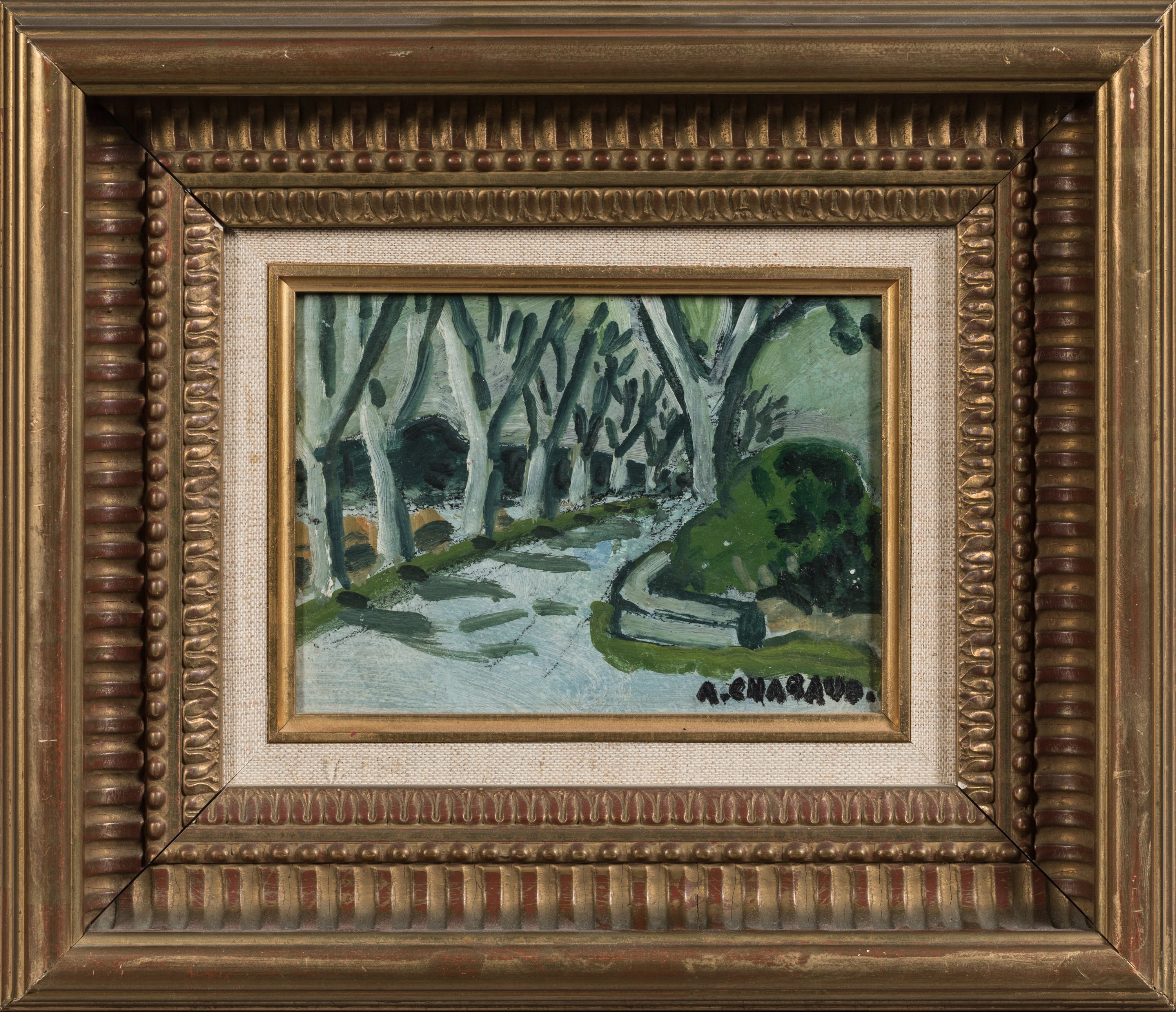 Huile sur carton signée en bas à droite, titrée sur l'étiquette de l'atelier au dos avec le numéro 2184 au tampon en rouge et contresignature de l'artiste.