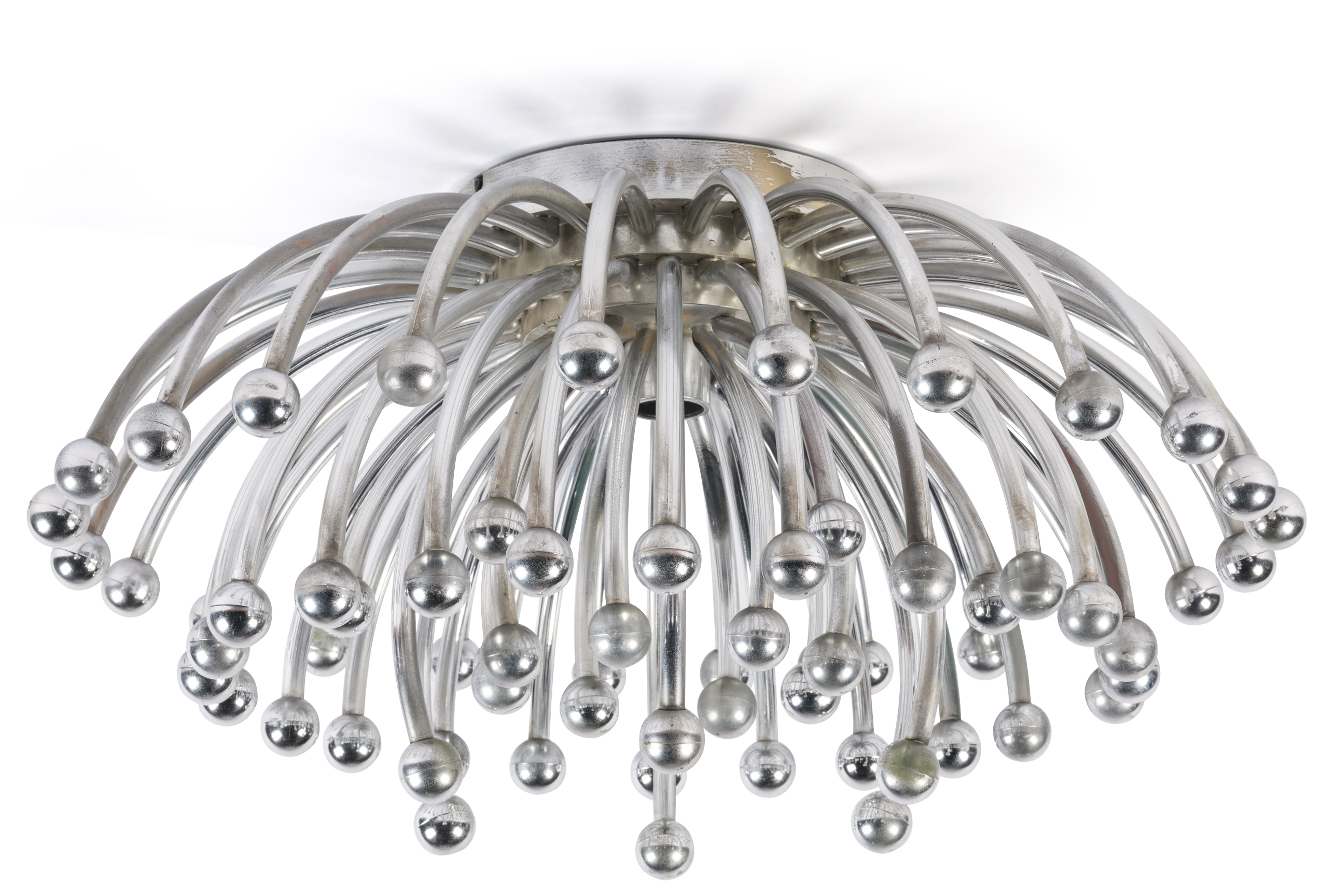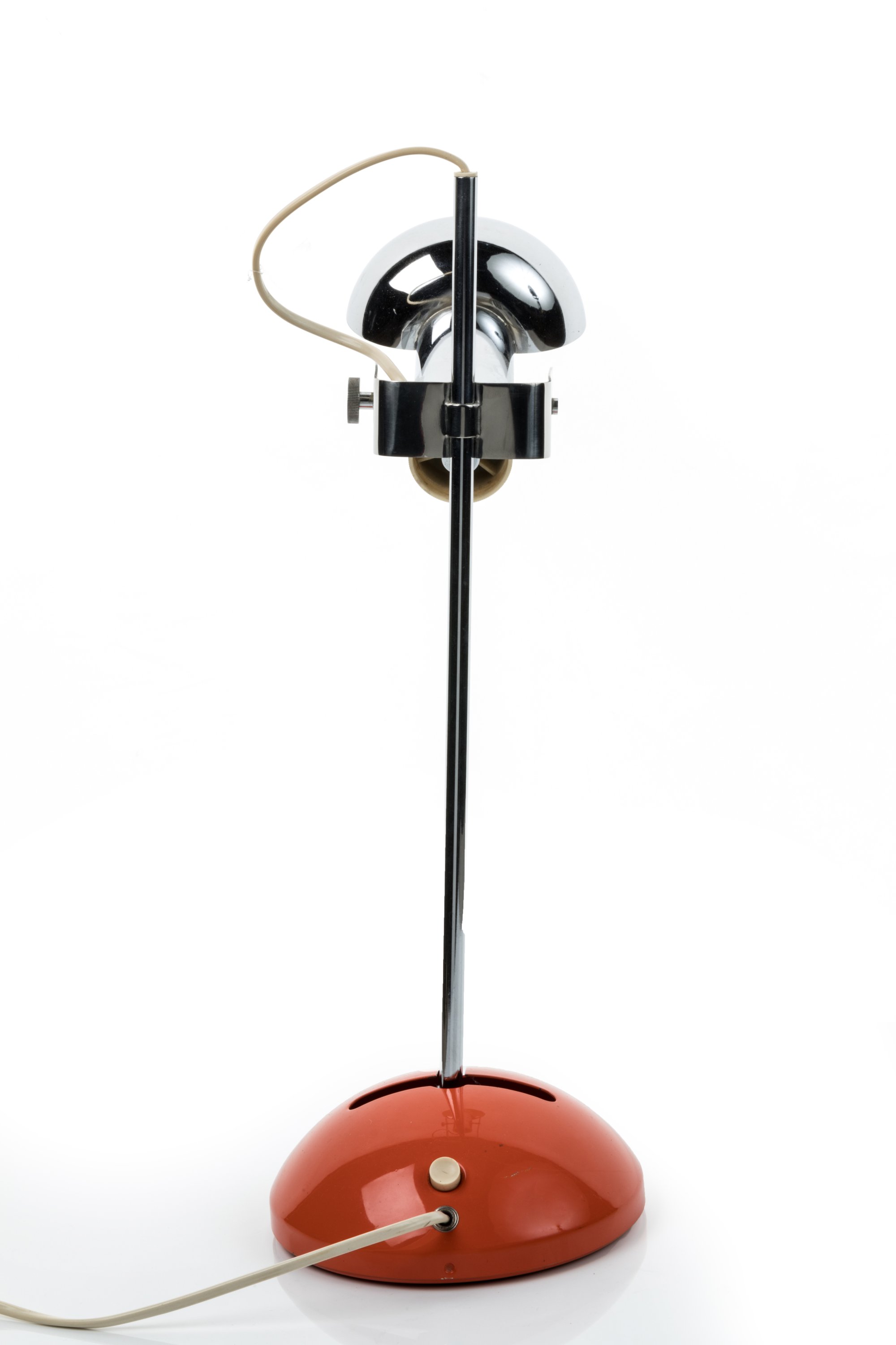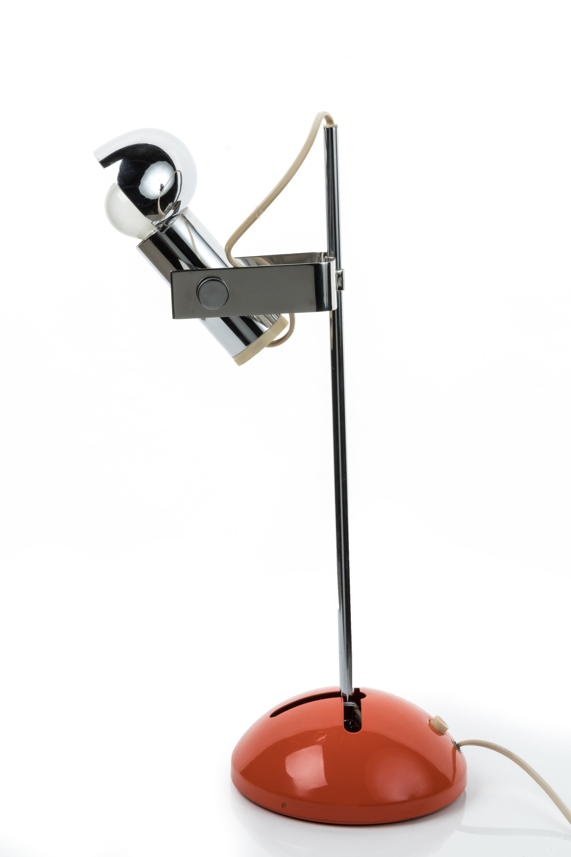 JOINT: Lampe de bureau T395, créée en 1972 par Robert Sonneman (né en 1943) pour Lucci Cinisello, à Milan, en métal chromé, la base orange. Haut. 49 cm.