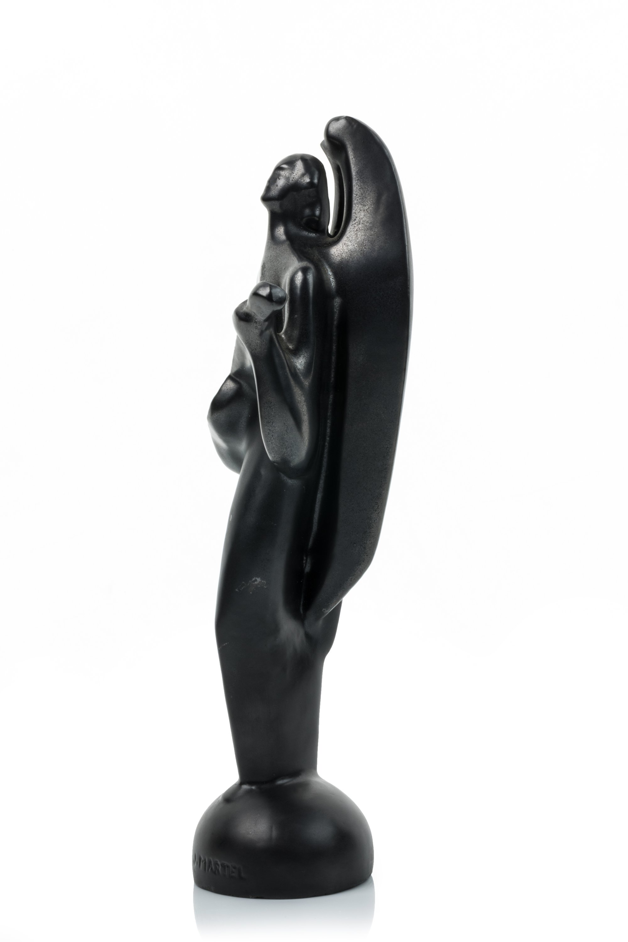 Pouvant être patiné dans différentes teintes, le lakarmé est "une laque armée peu pondéreuse qui mêle du plastique, un jus de plâtre et un conglomérat de sable, permettant des réaliser des moulages à l'apparence surprenante" . Jusqu'à la découverte de cet exemplaire, à notre connaissance unique, seul un ange à la lyre était réputé avoir été édité en 1955.