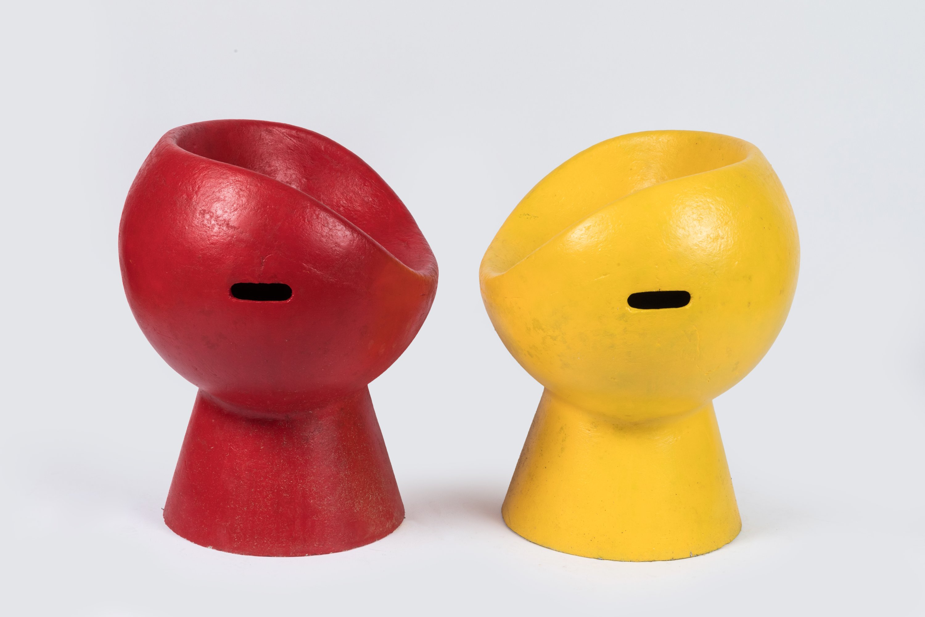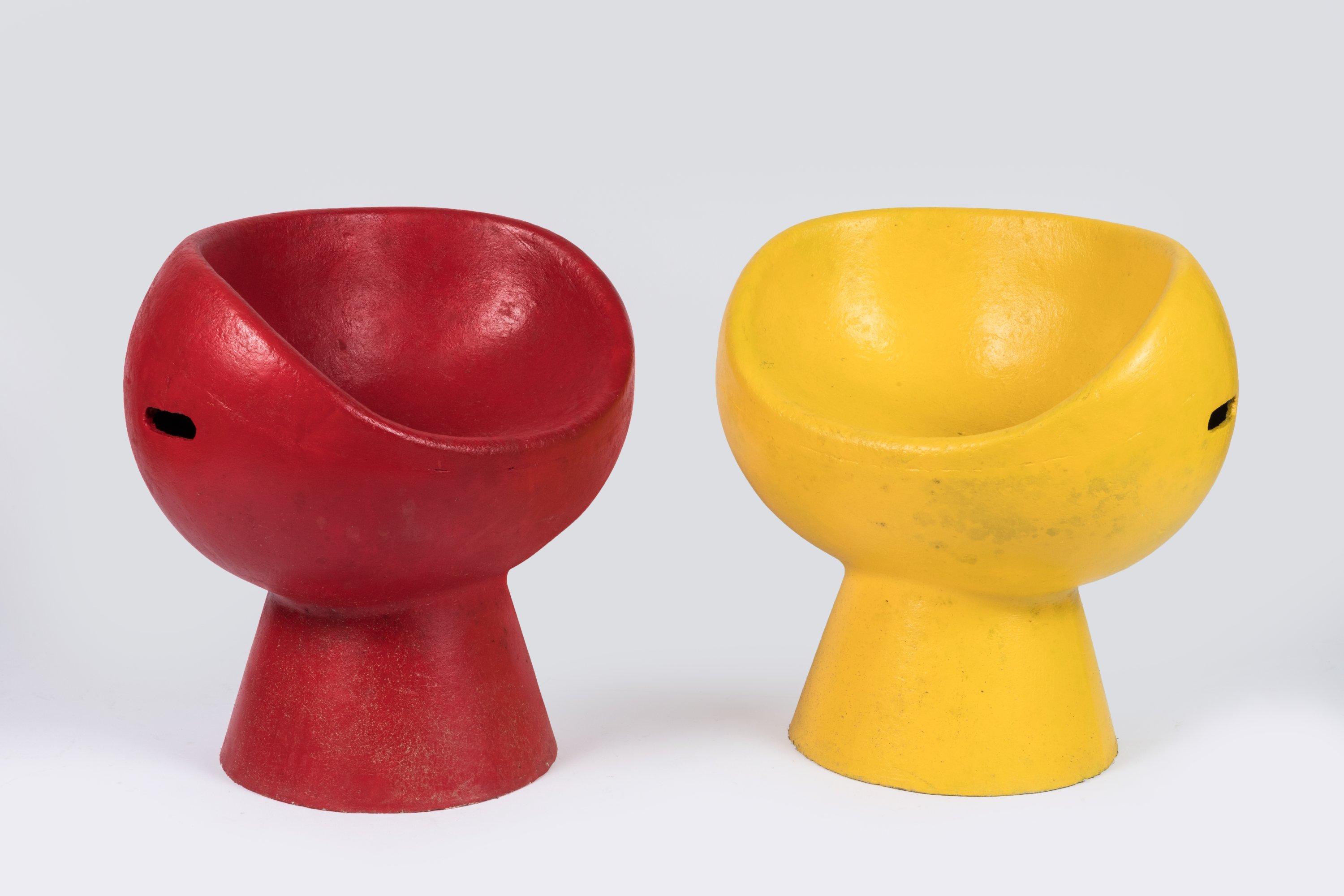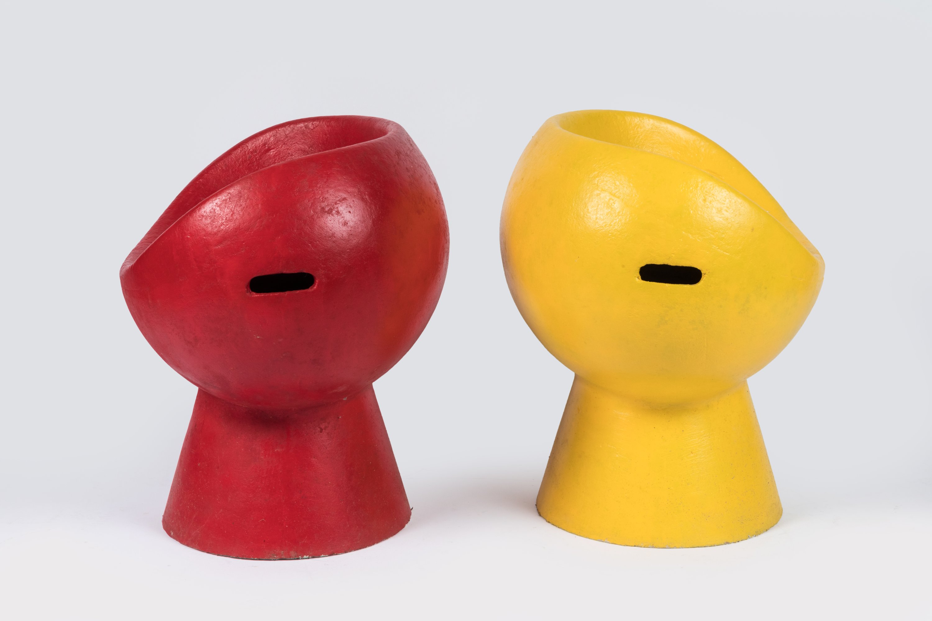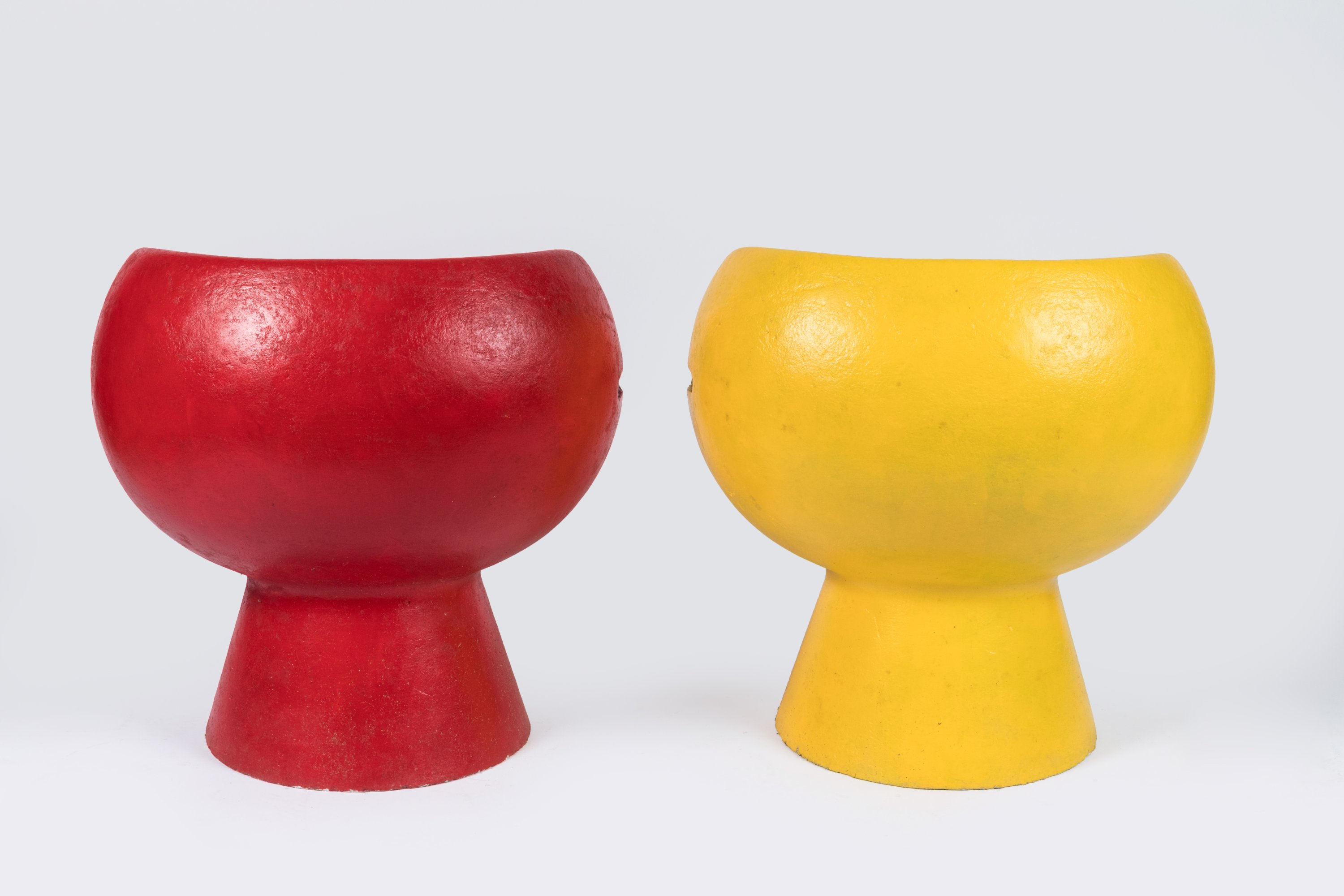 en ciment Eternit, peintes postérieurement, l'une en jaune, l'autre en rouge.