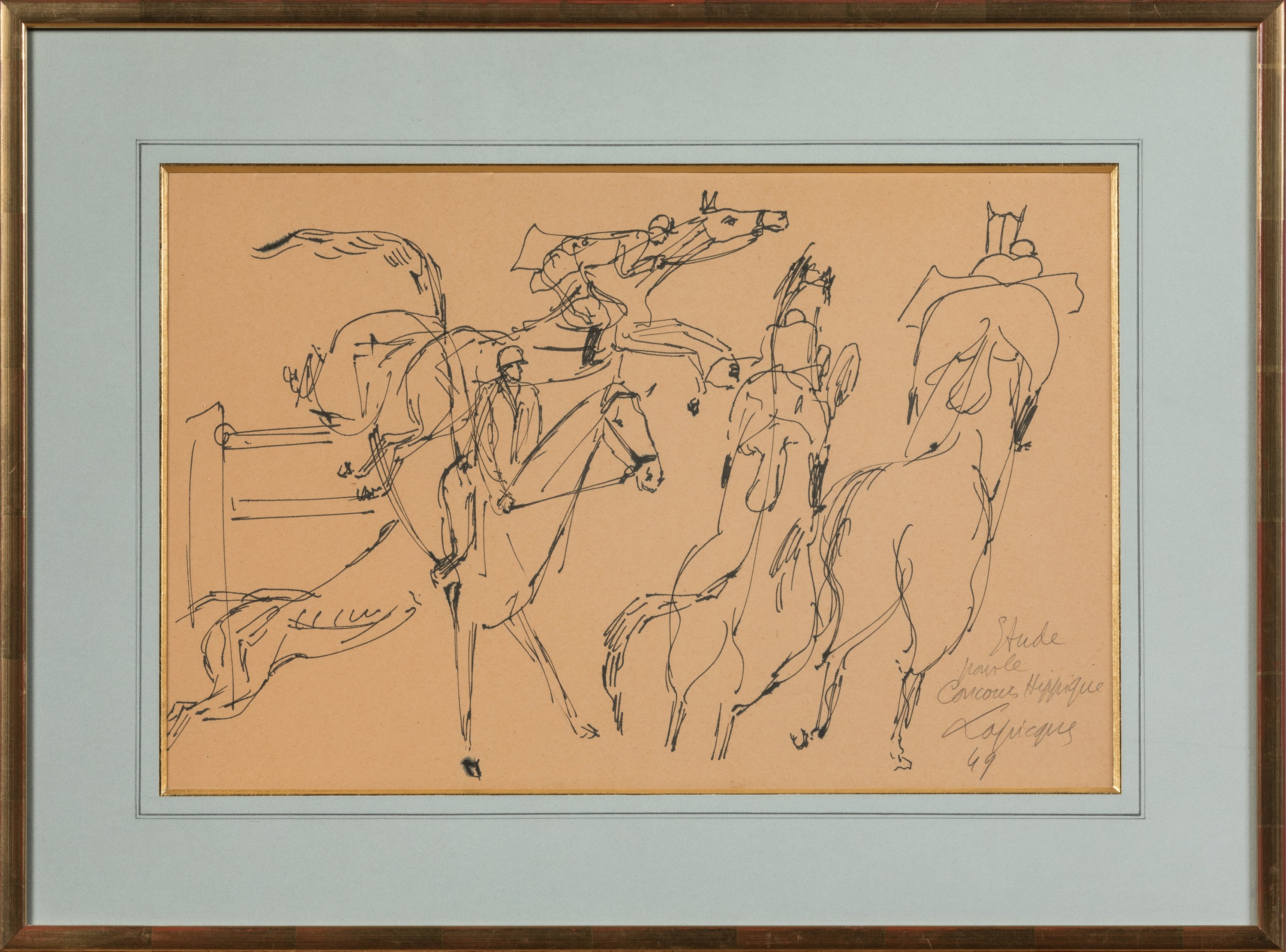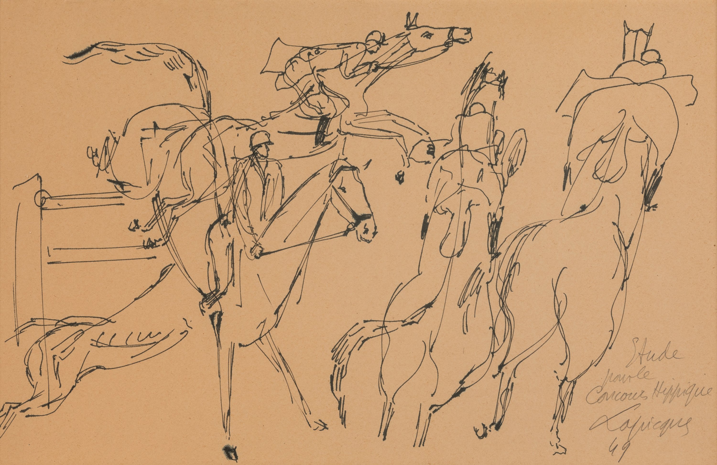 Charles Lapicque (Français, 1898-1988)"Étude pour le concours Hippique", 1949Encre signée,...