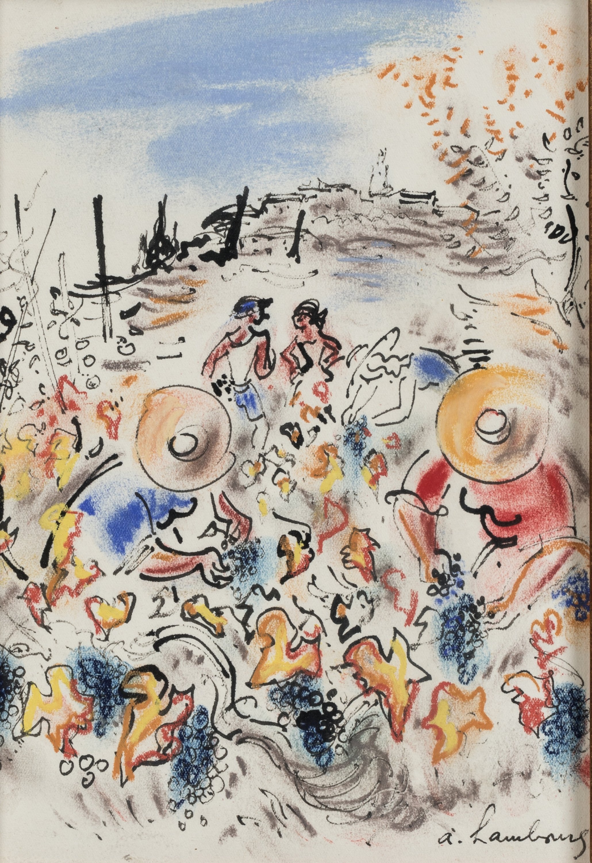 André Hambourg (Français, 1909-1999)Les vendangesPastel et encre sur Canson contrecollé...