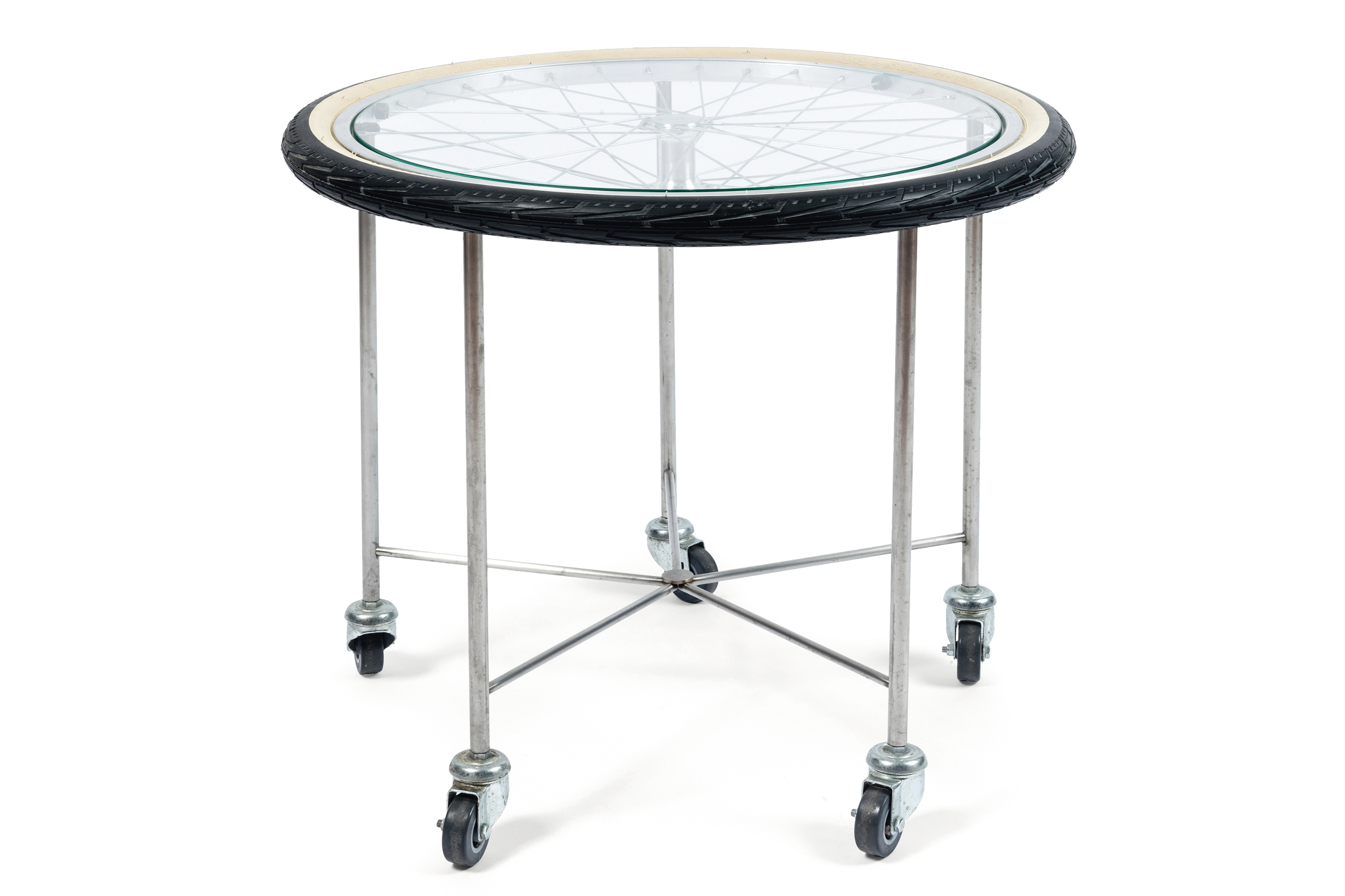 Francois Arnal (Français, 1924-2012)Table véli-vélo, 2009Roue de bicyclette reposant sur...
