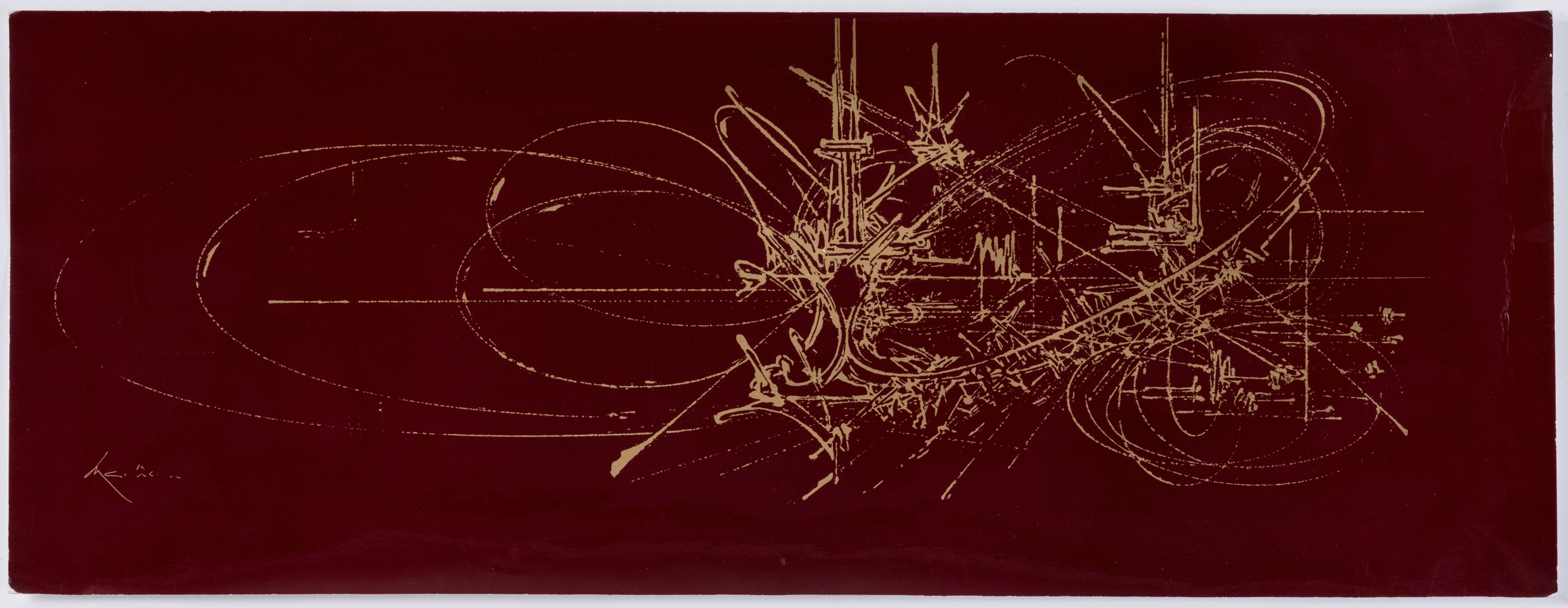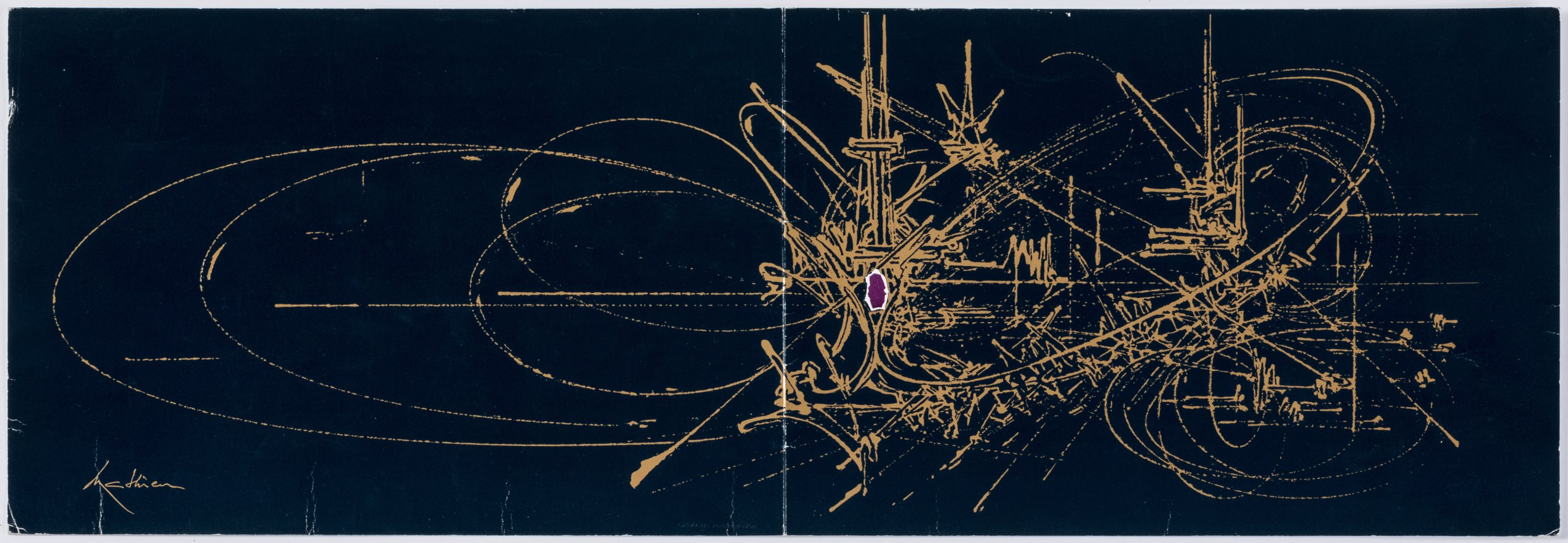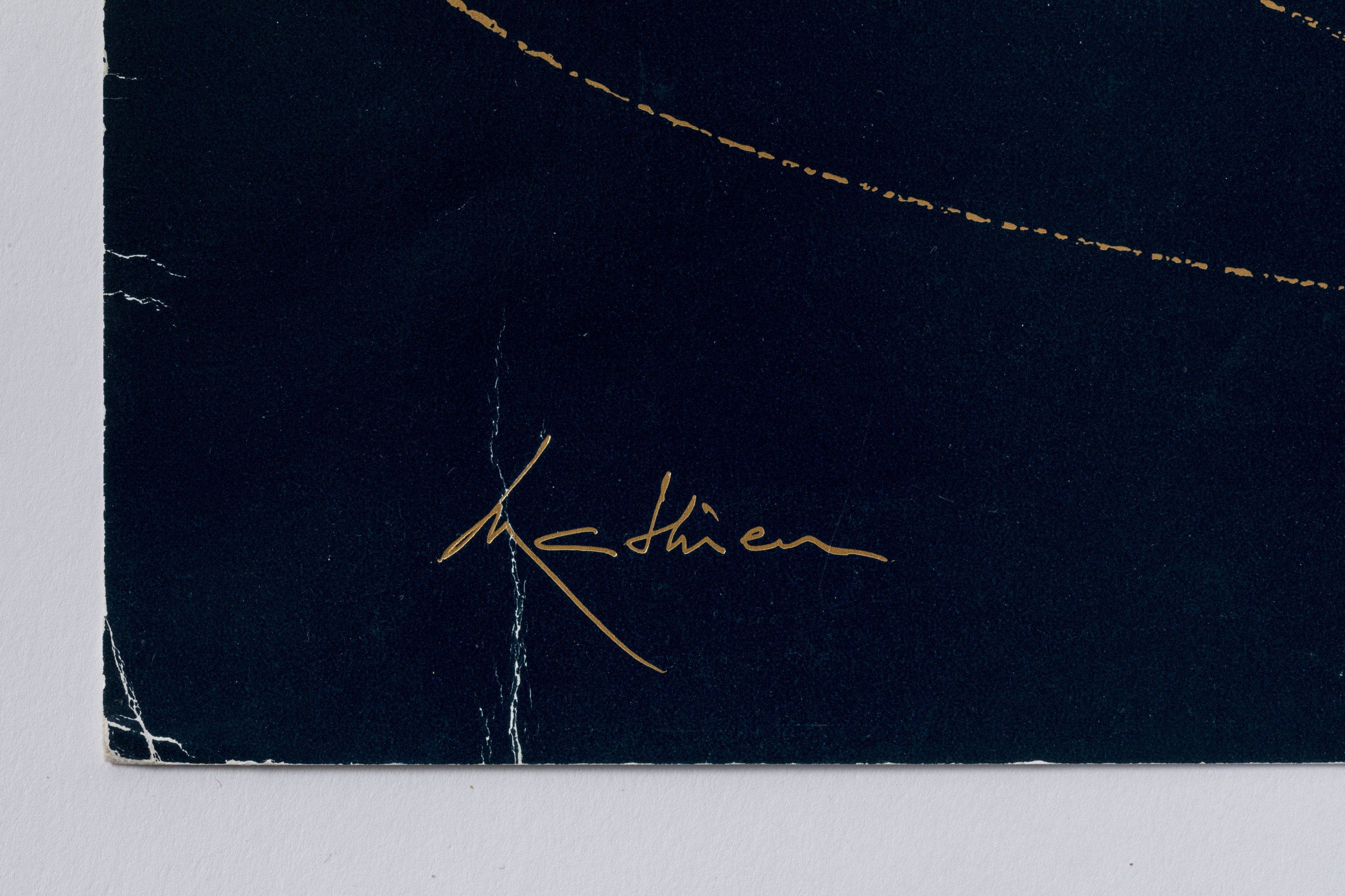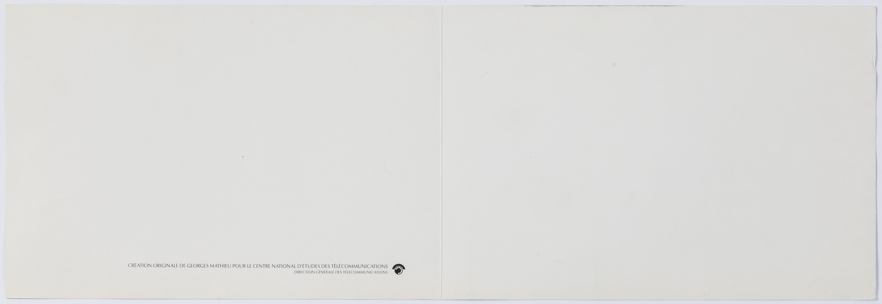 Provenance: offert par l'artiste à un salarié d'une entreprise publicitaire avec laquelle il travaillait dans les années 1970, ce tiré à part de carte a été réalisé par Georges Mathieu pour le Centre national des études des télécommunications, ainsi que nous l'avait aimablement précisé Monsieur Jean-Marie Cusinberche en 2019.