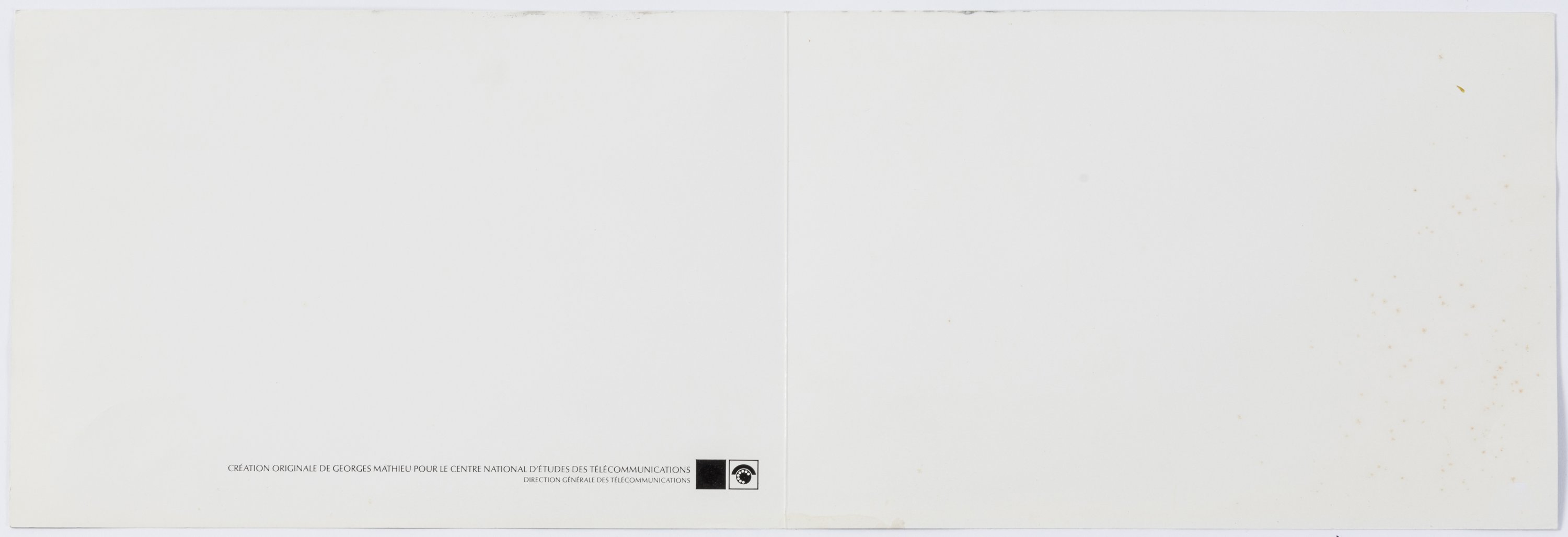 Provenant de la collection d'un salarié d'une entreprise publicitaire avec laquelle travaillait Georges Mathieu dans les années 1970, cette oeuvre reprend la carte réalisée par Georges Mathieu pour le Centre national des études des télécommunications, ainsi que nous l'avait aimablement précisé Monsieur Jean-Marie Cusinberche en 2019.