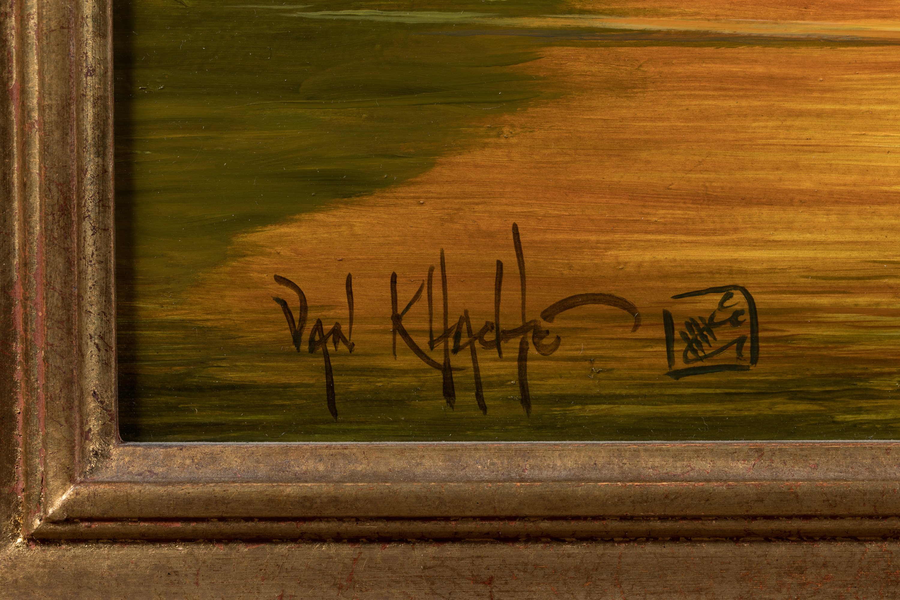 Toile signée en bas à gauche, titrée et signée au dos, avec des idéogrammes pour le marché asiatique.