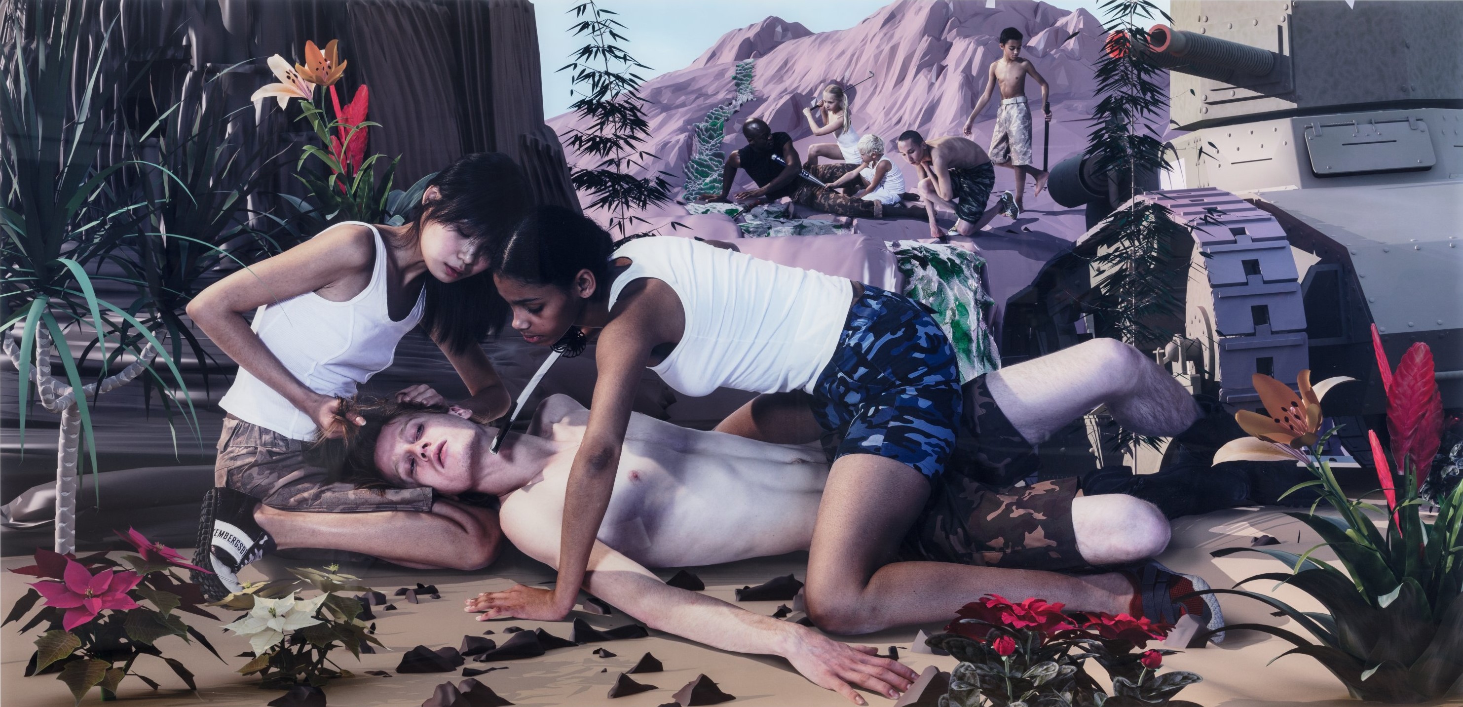 AES+F est un groupe d'artistes contemporains russes composé depuis 1987 de Tatiana Arzamasova (née en 1955), Lev Evzovich (né en 1958), Evgeny Svyatsky (né en 1957), rejoints en 1997 par Vladimir Fridkes (né en 1956). Le quatuor travaille à partir de la photographie, l'art graphique et vidéo, tout en conservant les disciplines traditionnelles comme la peinture et la sculpture. Ils vivaient et travaillaient à Moscou jusqu'au début du conflit en Ukraine. Exposés dans toutes les manifestations internationales et représentant leur pays au pavillon russe lors de la Biennale de Venise 2007, ils sont entrés en dissidence et ont pris le chemin de l'exil, s'installant à Berlin en mars 2022. Leur série "Last Riot", précisément créée pour la Biennale de Venise, résonne de façon prémonitoire à l'heure du conflit en Ukraine.