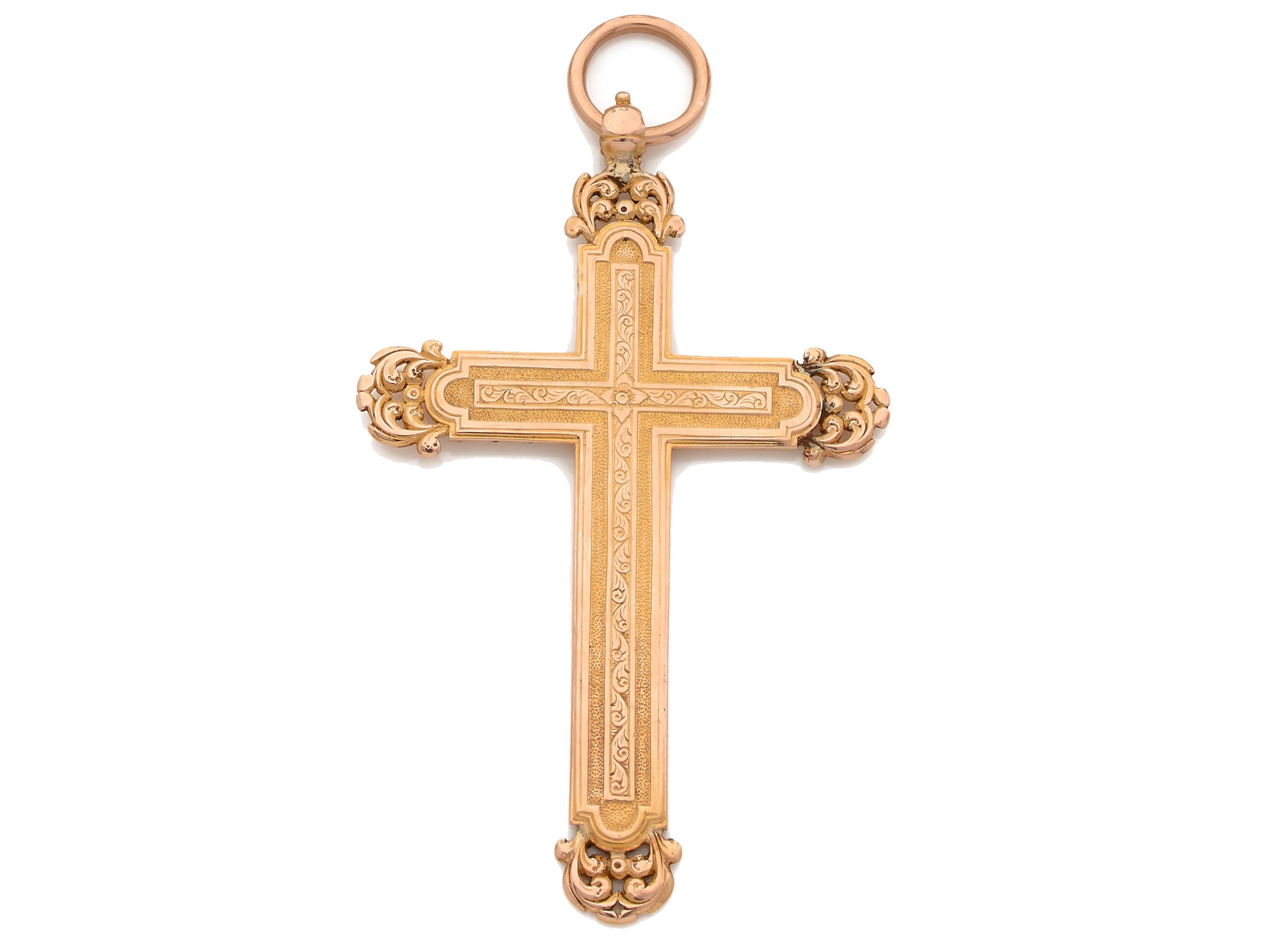 A cross pendant in 18k yellow gold by Auguste Houllier, master goldsmith.