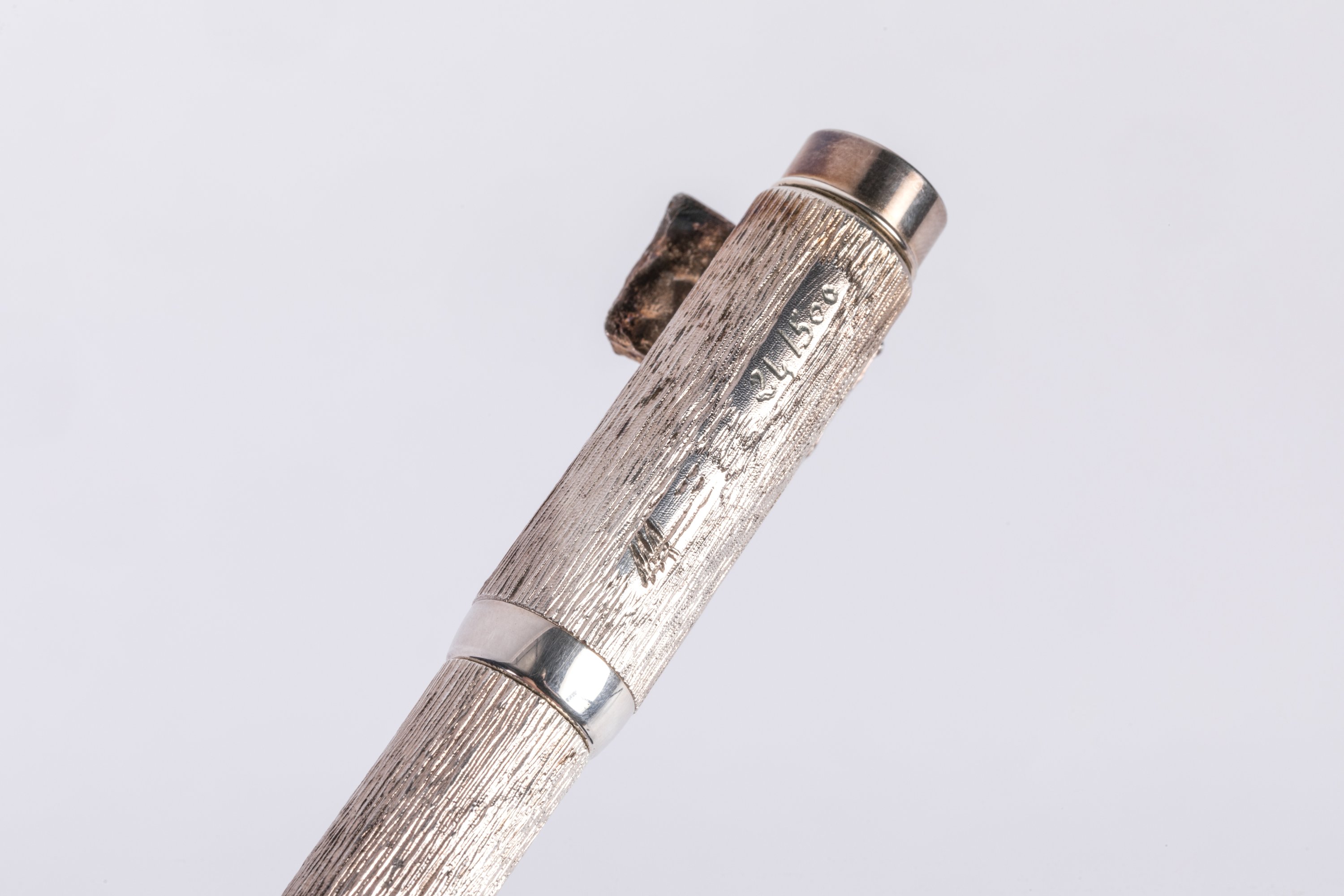 en bronze argenté orné d'un clip sculpté sur le bouchon avec des feuilles de vignes et un livre ouvert. Signé et numéroté "24/500". Roller.