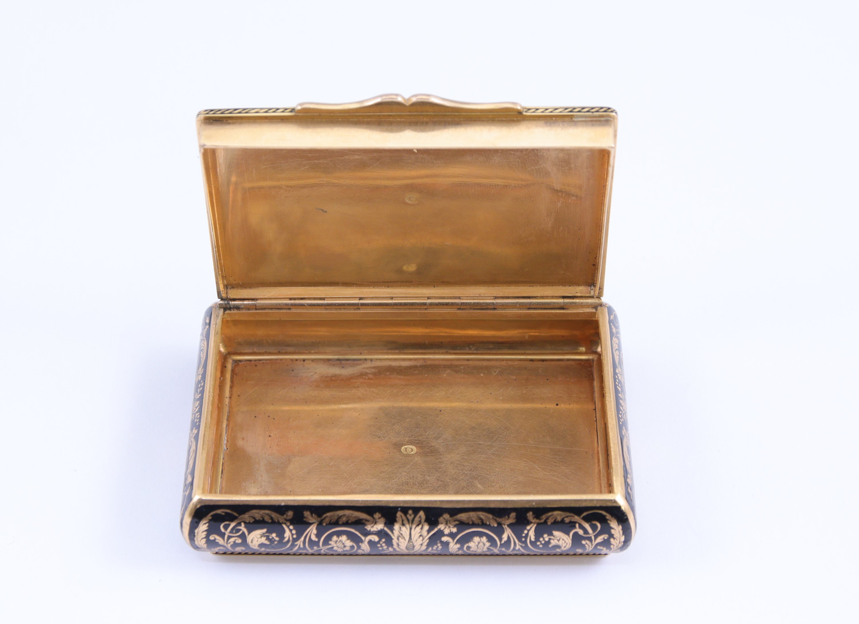 A small 19th century rectangular box in niello-filled 18k yellow gold.
