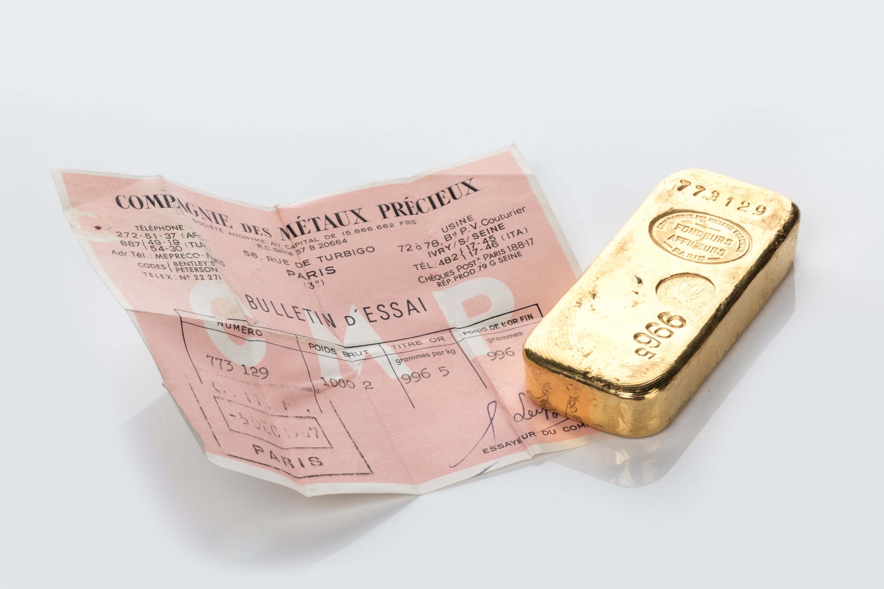 Lingot or, avec son bulletin d'essai du 5 décembre 1967, n°773129.