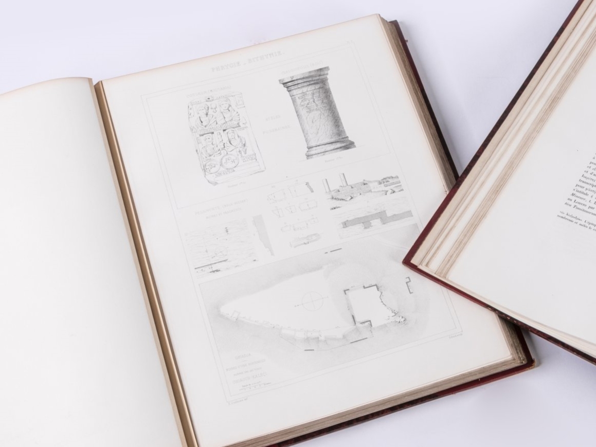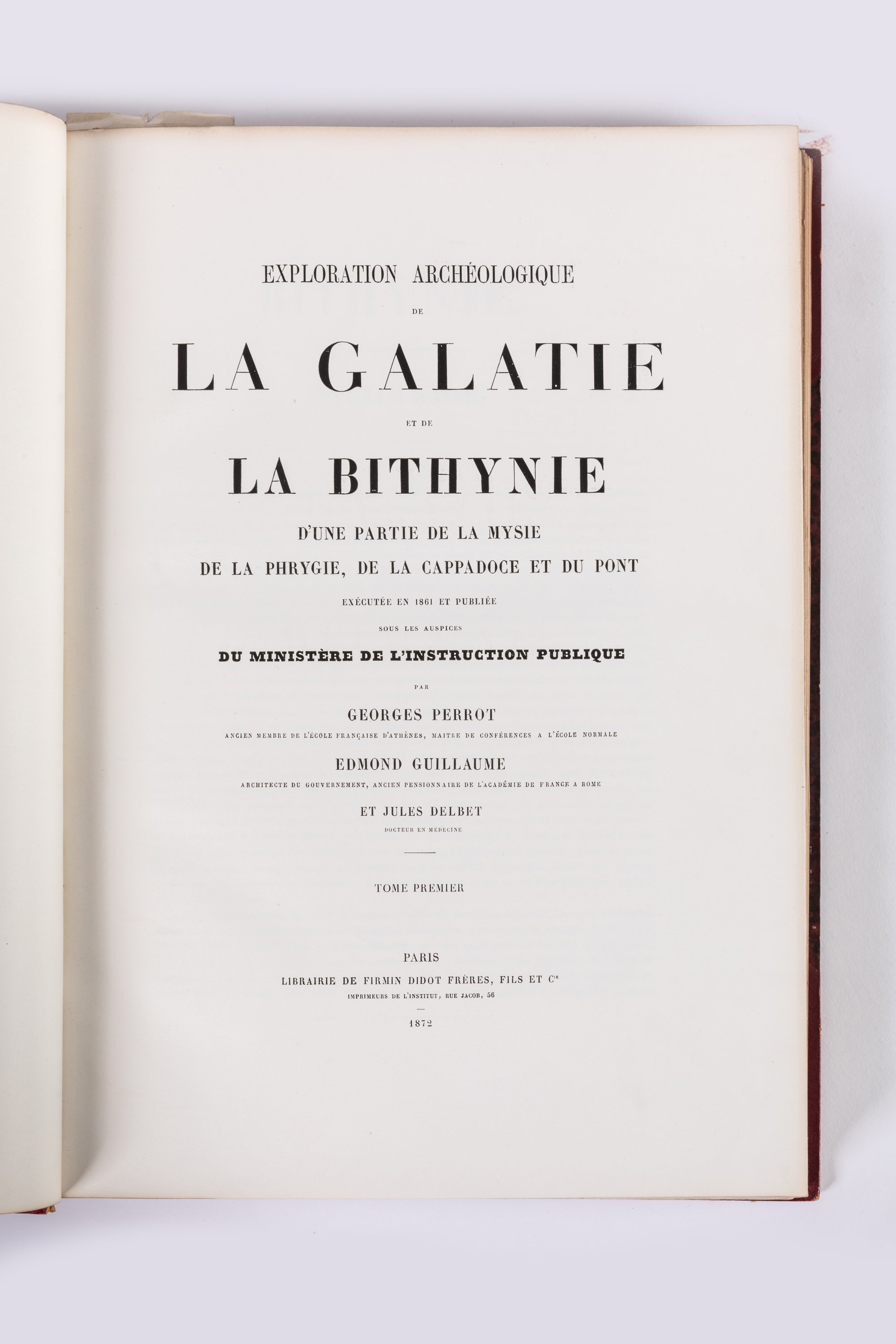 A rare 1862 book by Georges Perrot, Jean Baptiste Edmond Guillaume, and Jules Delbet on the archaelogical excavations of Galatia and Bithynia. First edition.