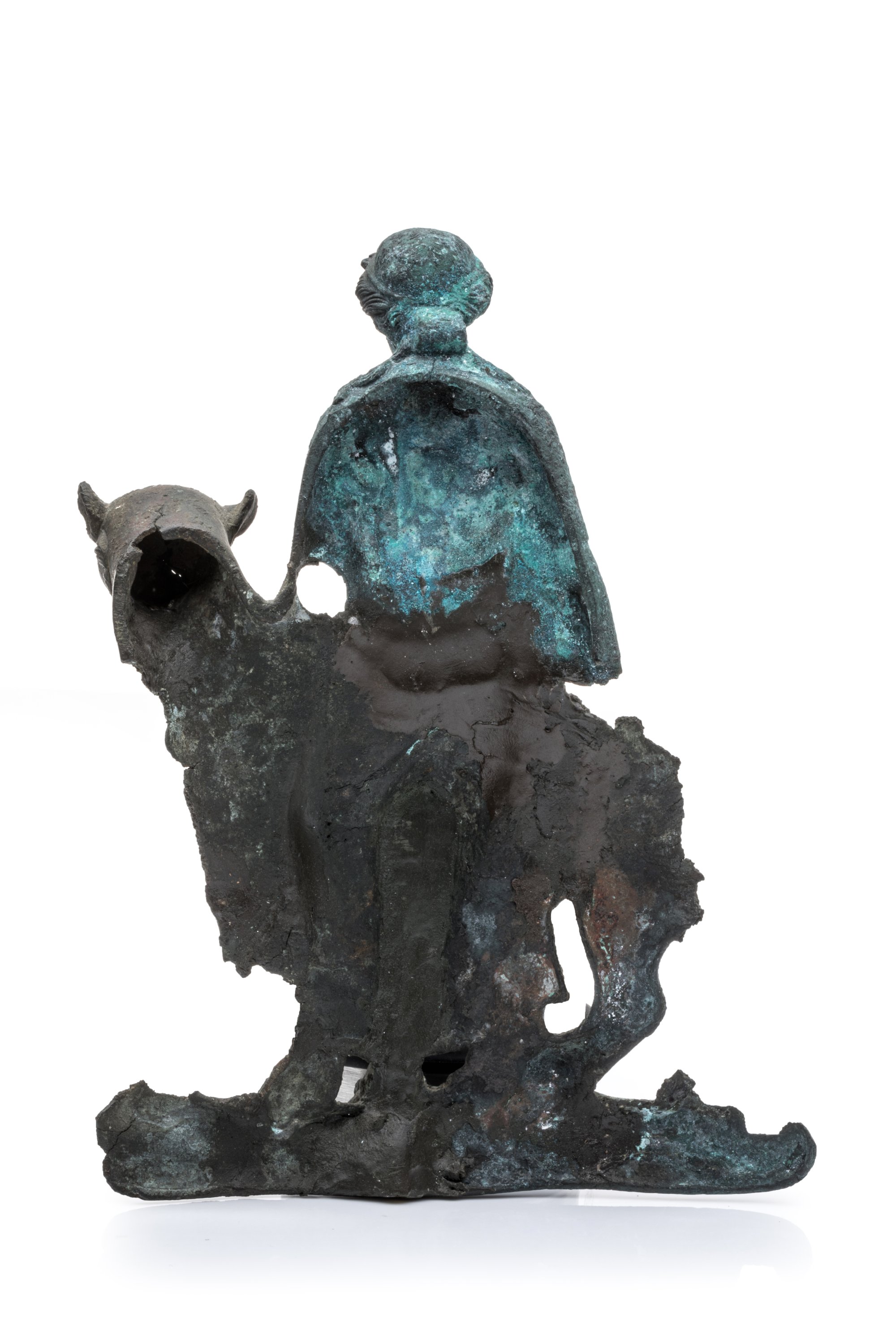 en bronze. Applique figurant en relief l'animal du dieu Dionysos.